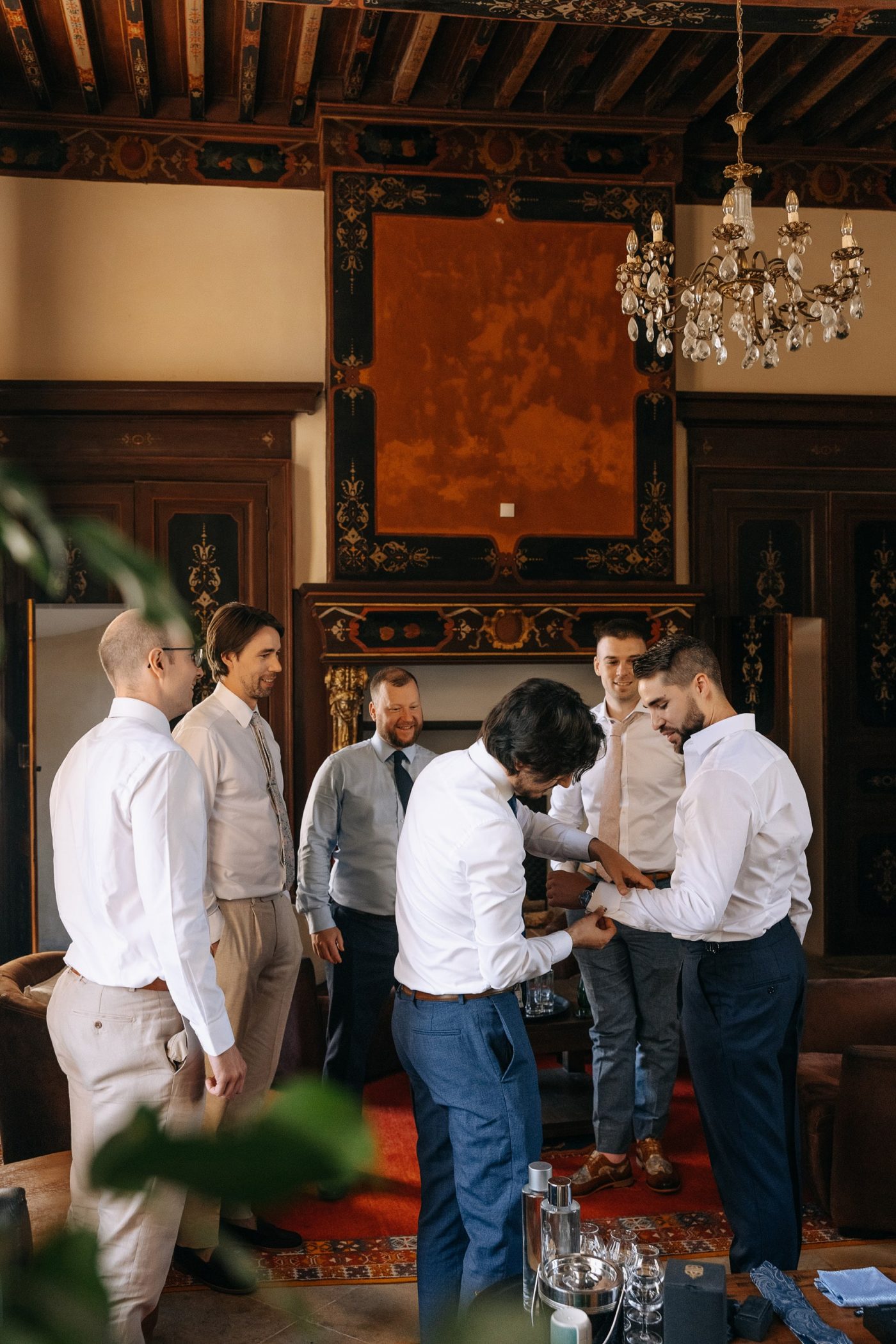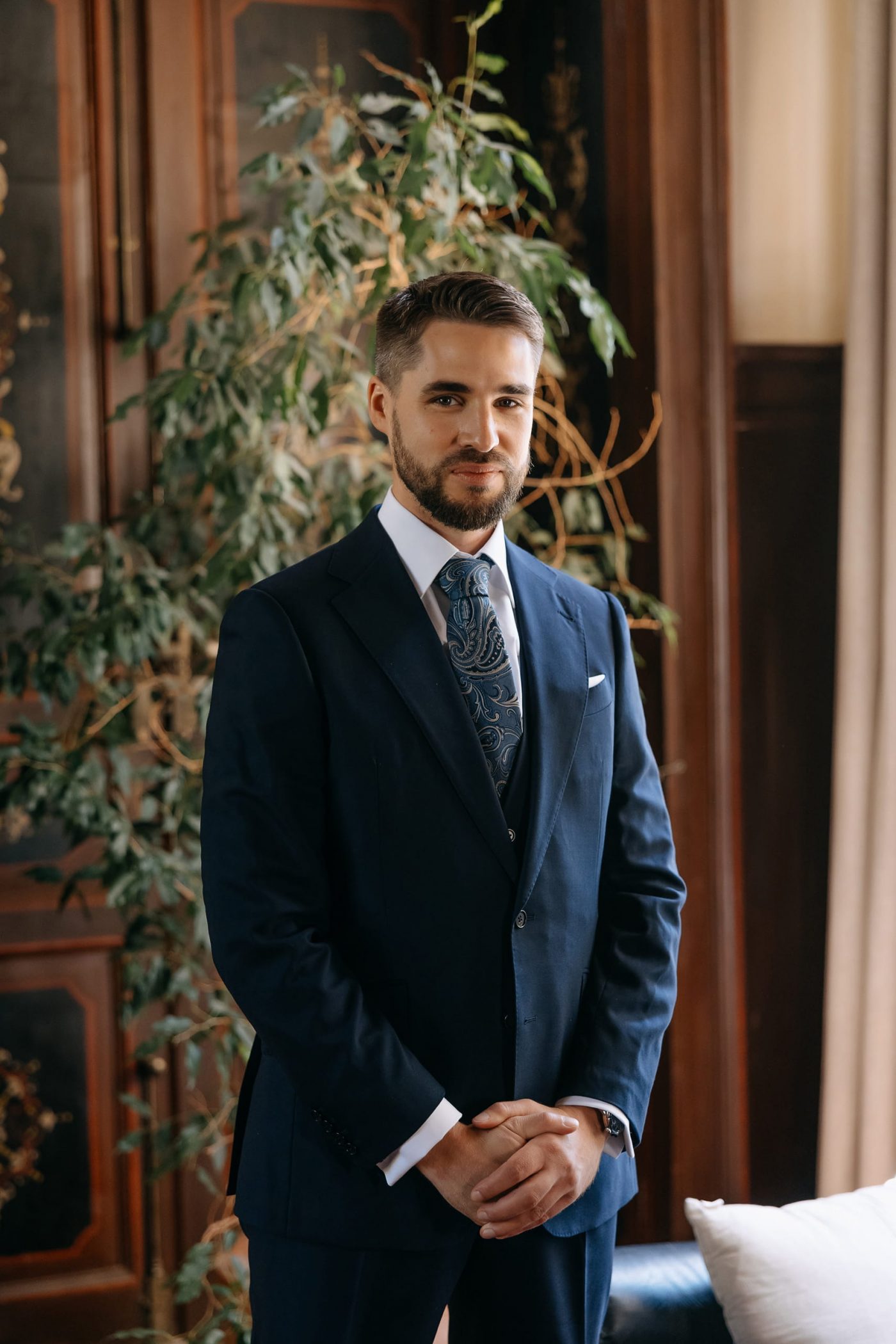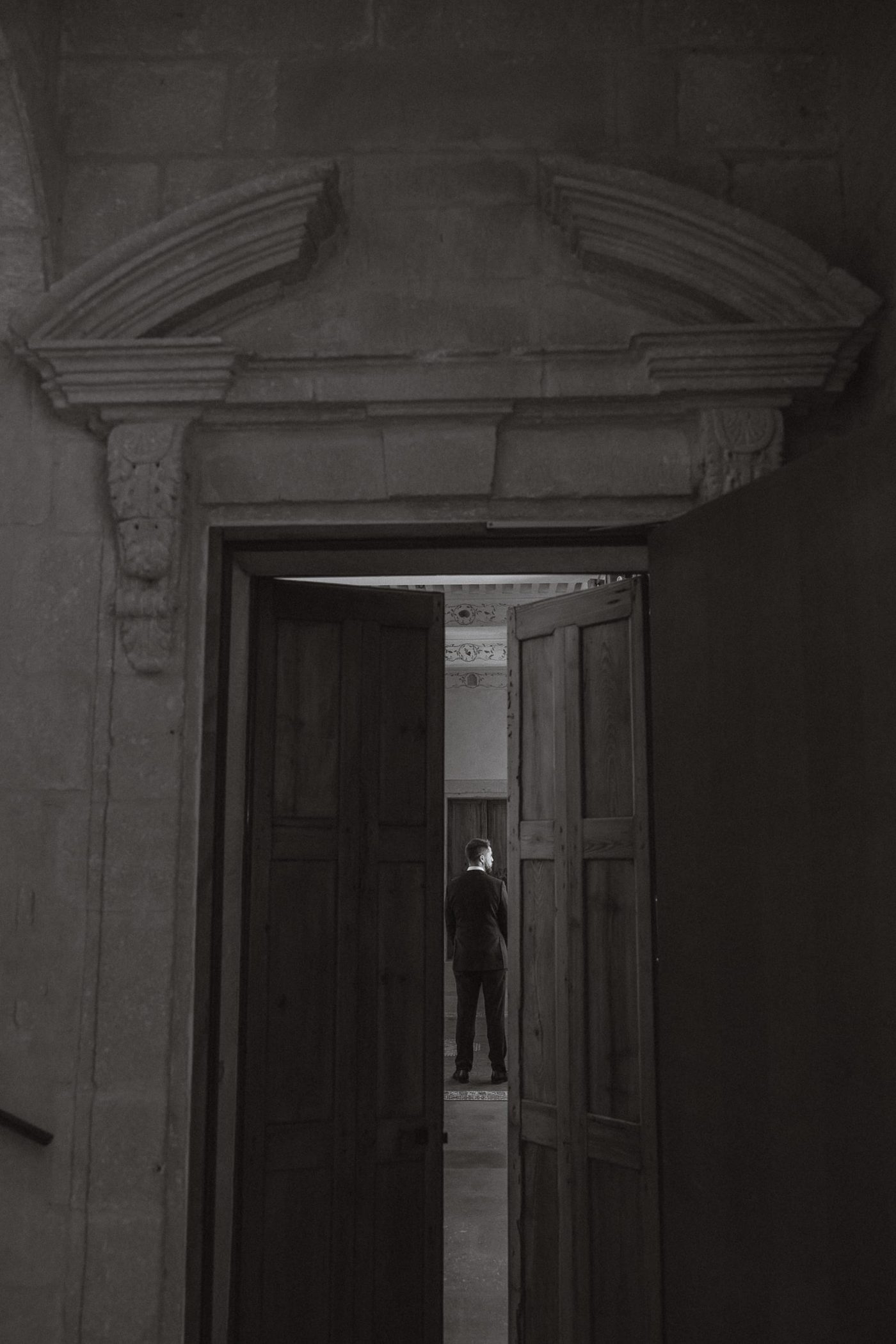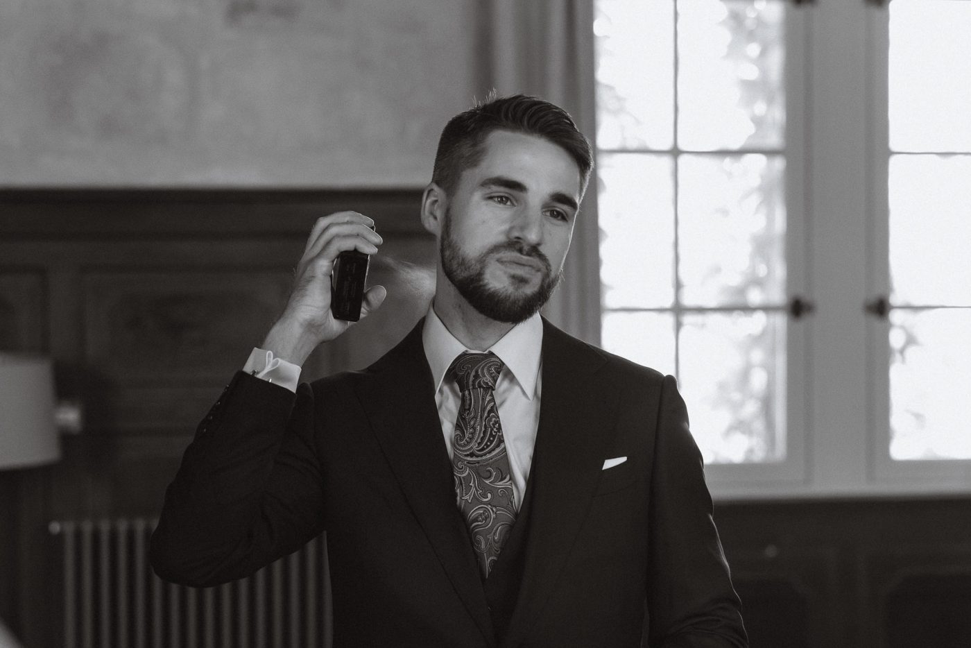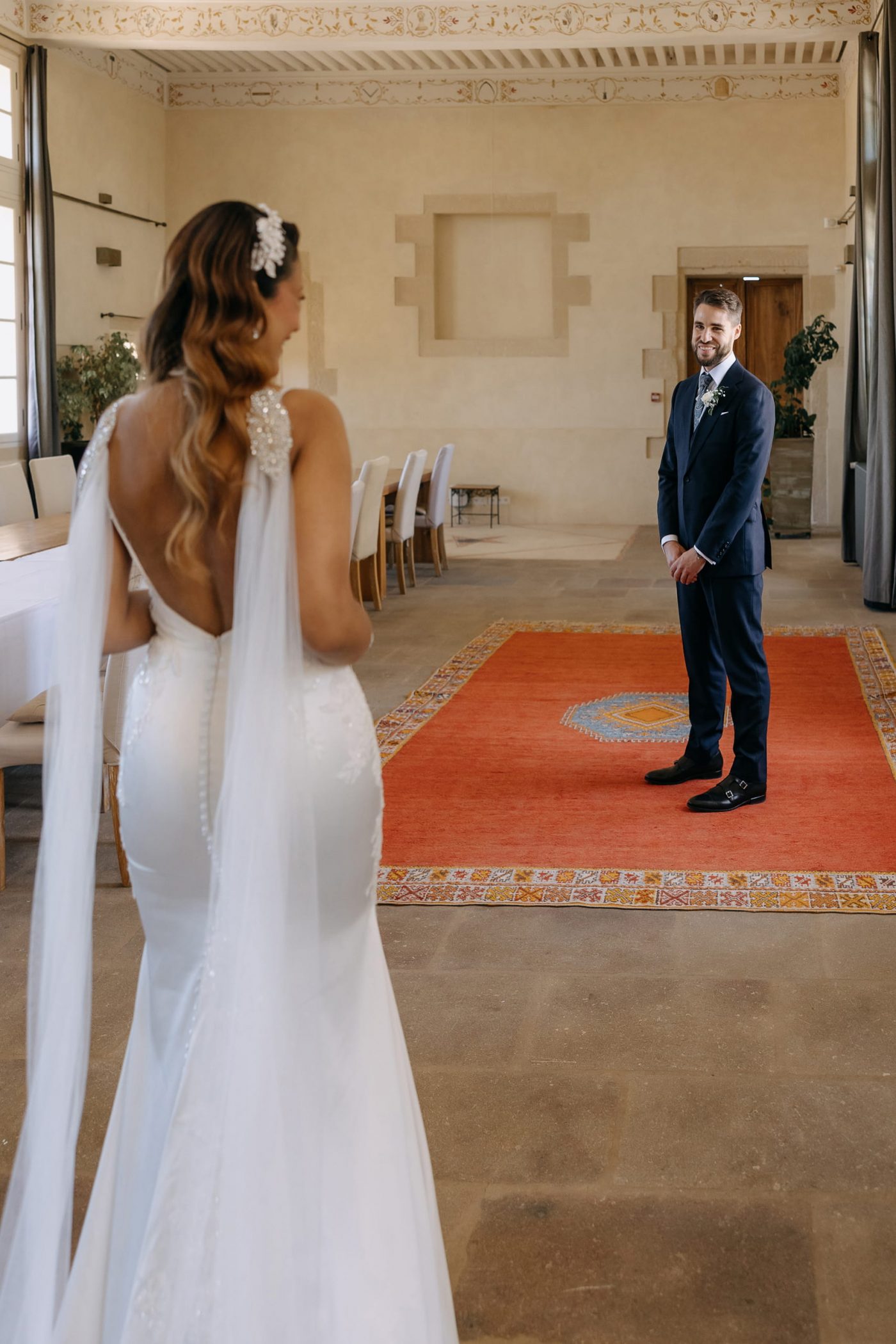 The morning at the château moved gently. Small gestures, brief glances, moments of stillness before the pace changed. Their first look was simple and sincere — the kind of moment that doesn’t need direction. Just before the ceremony, everything slowed down. That pause, filled with anticipation, said more than words ever could.