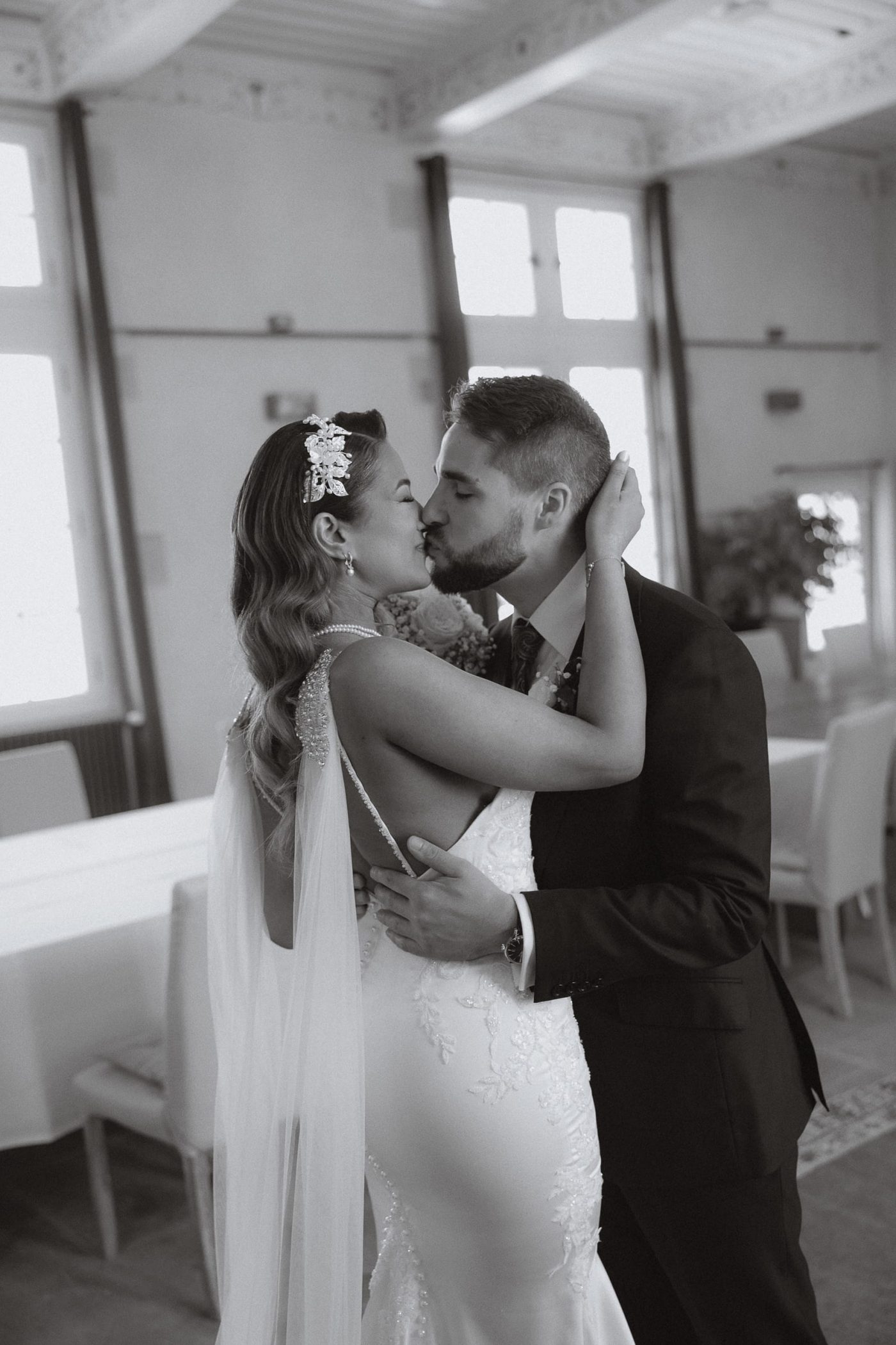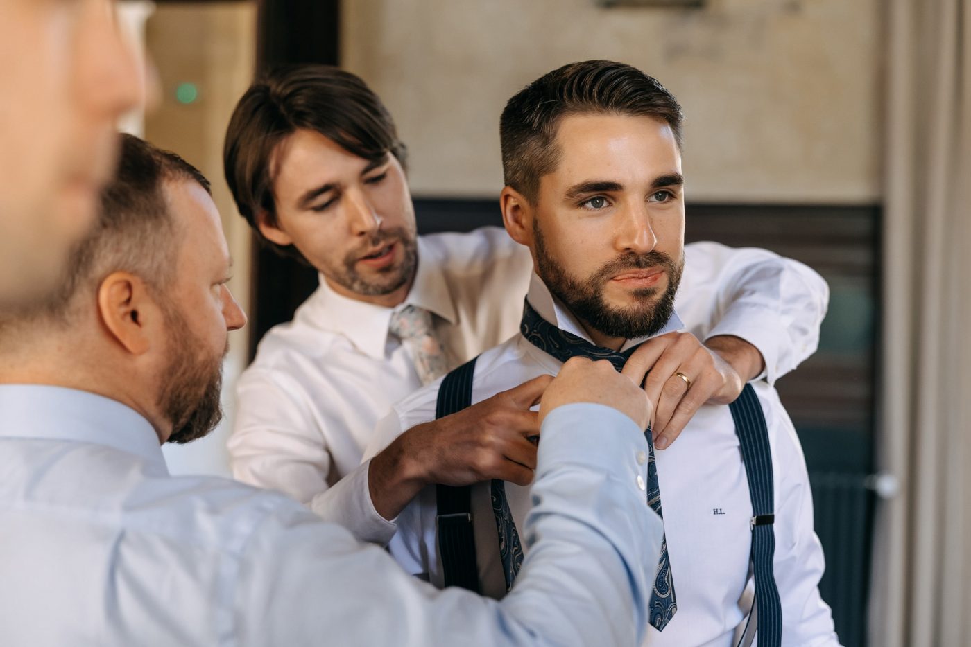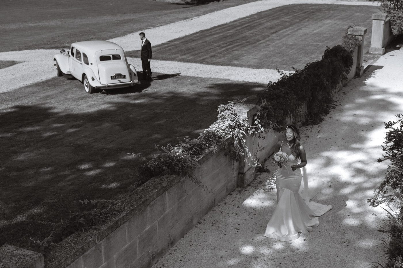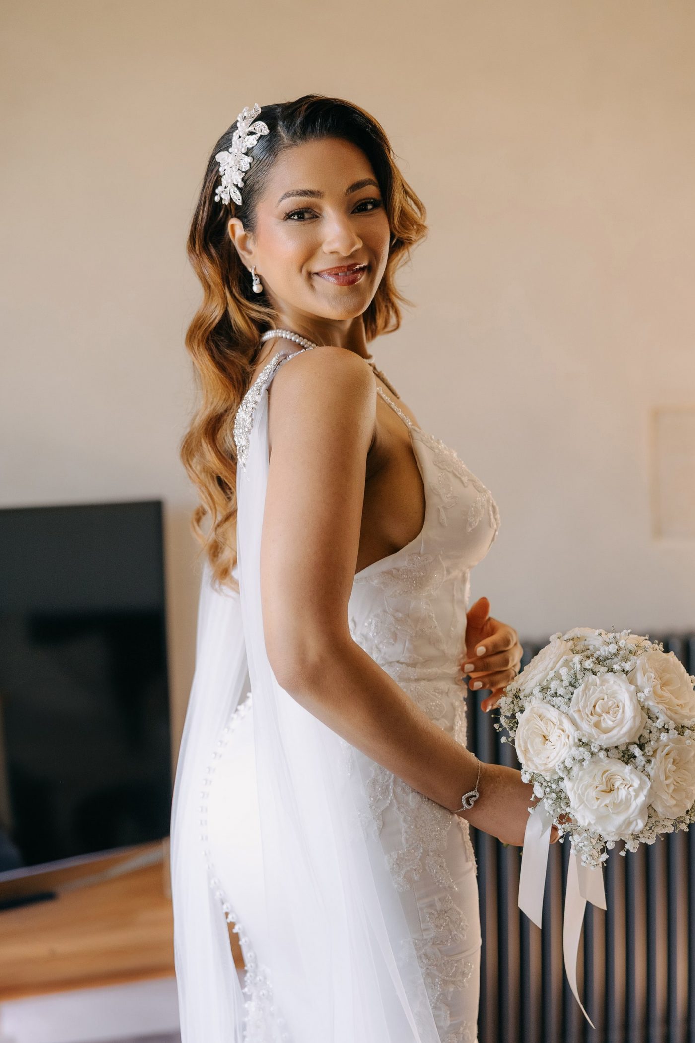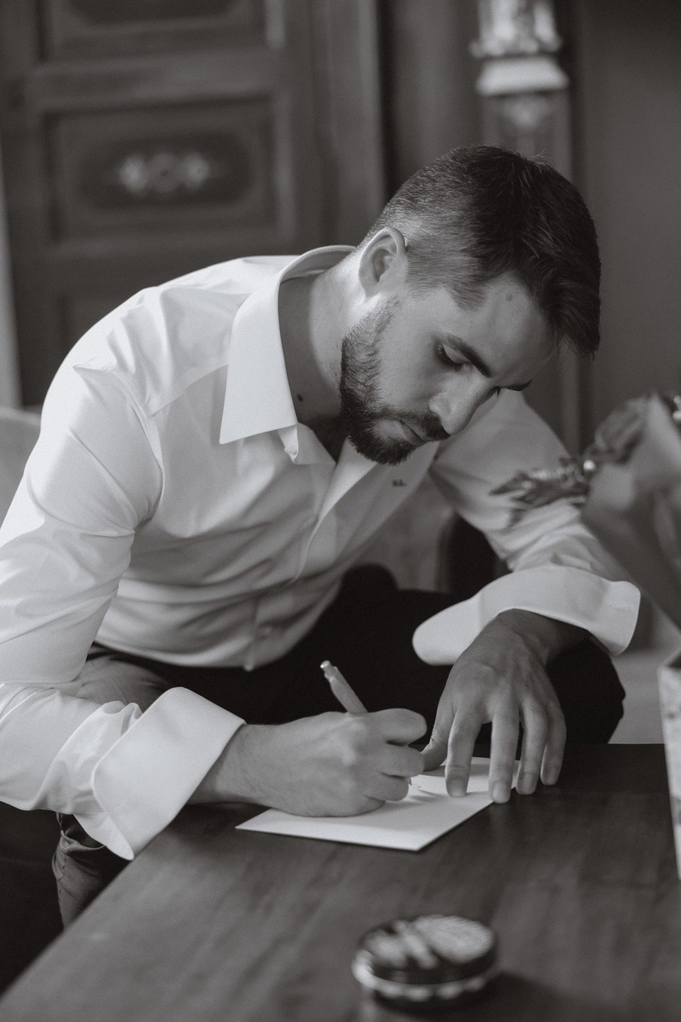 The morning at the château moved gently. Small gestures, brief glances, moments of stillness before the pace changed. Their first look was simple and sincere — the kind of moment that doesn’t need direction. Just before the ceremony, everything slowed down. That pause, filled with anticipation, said more than words ever could.
