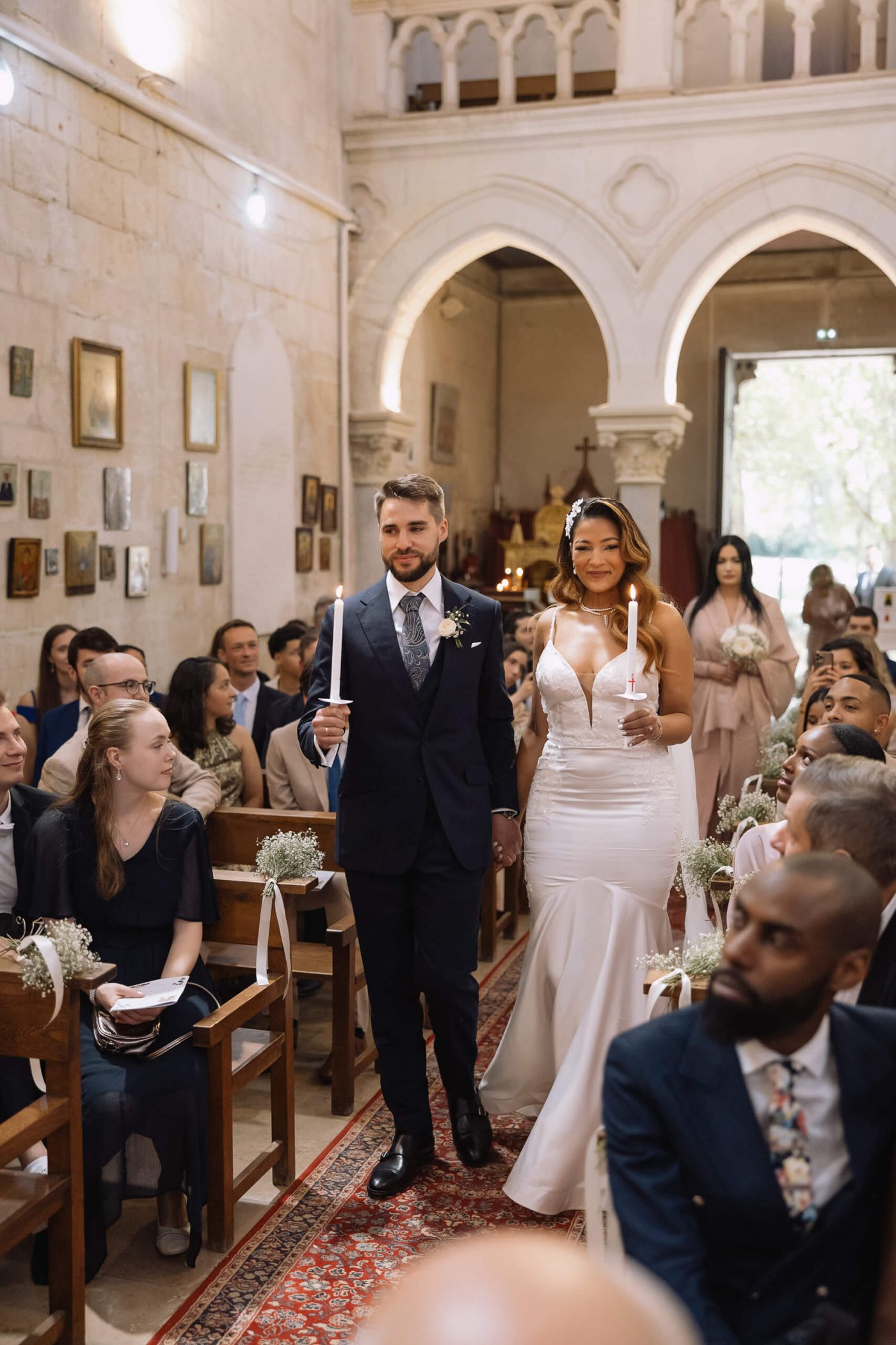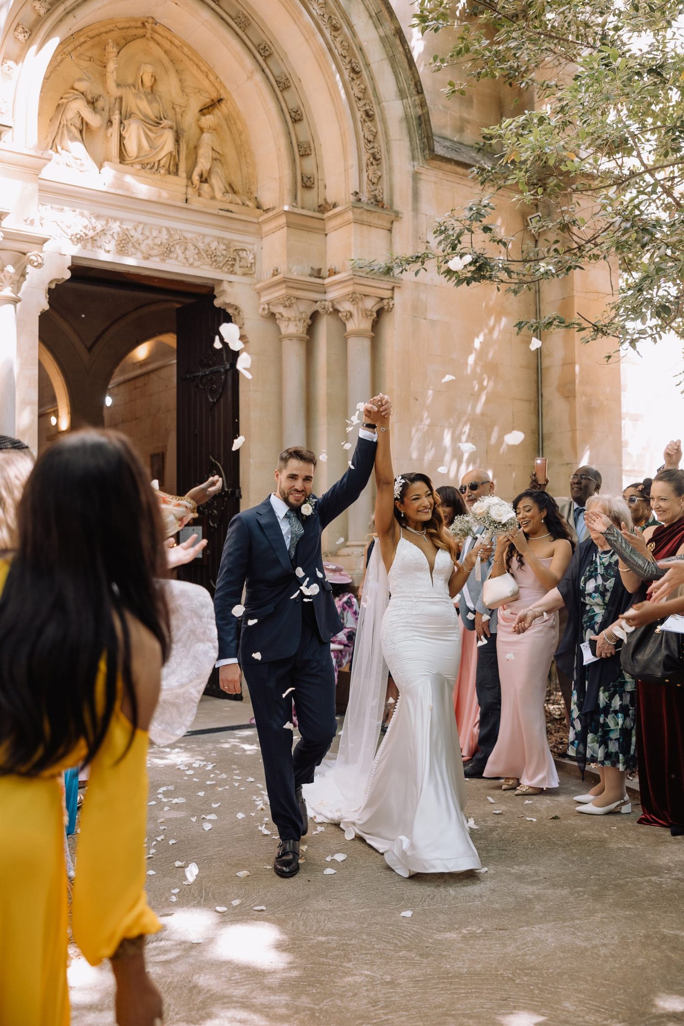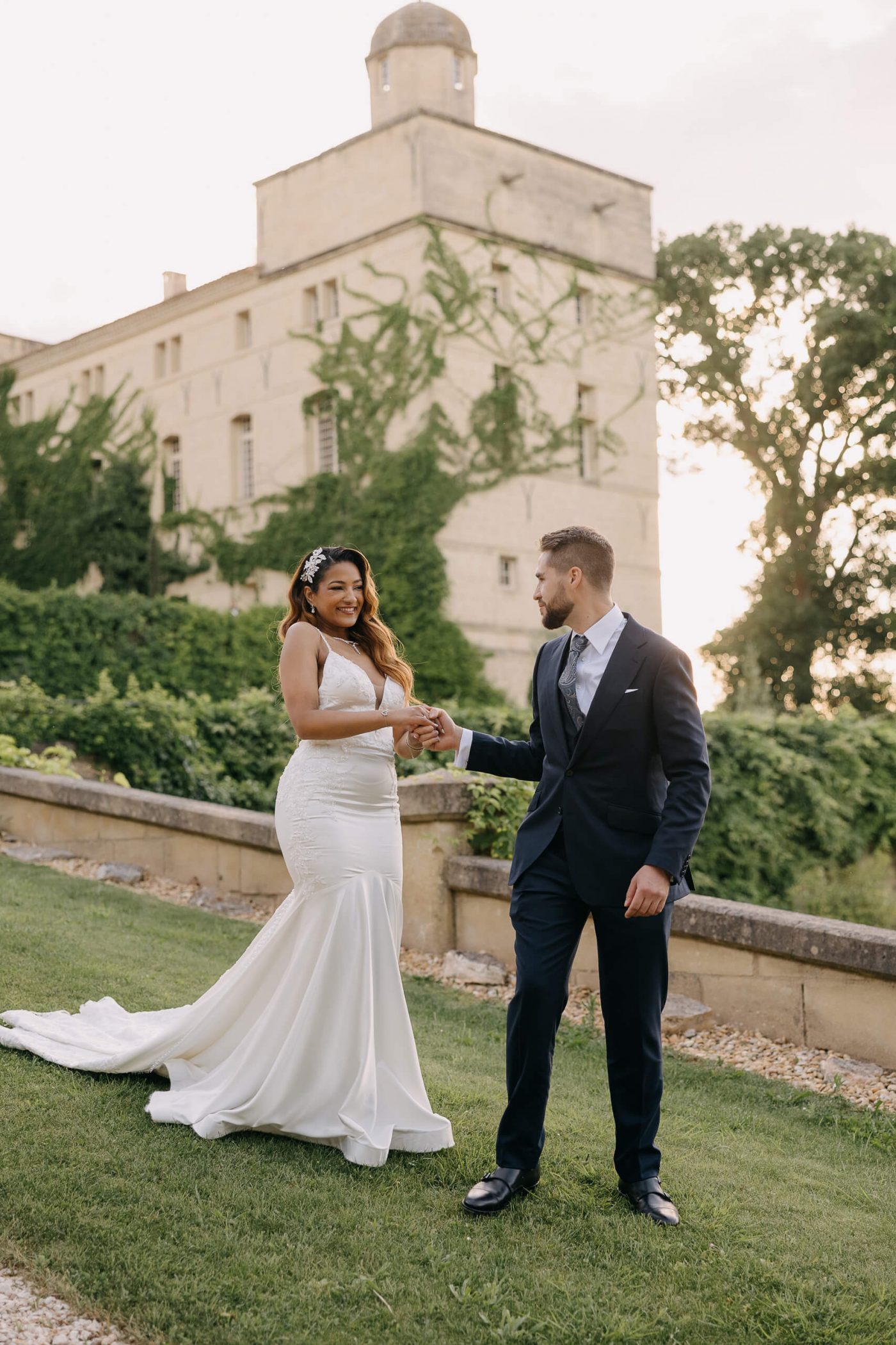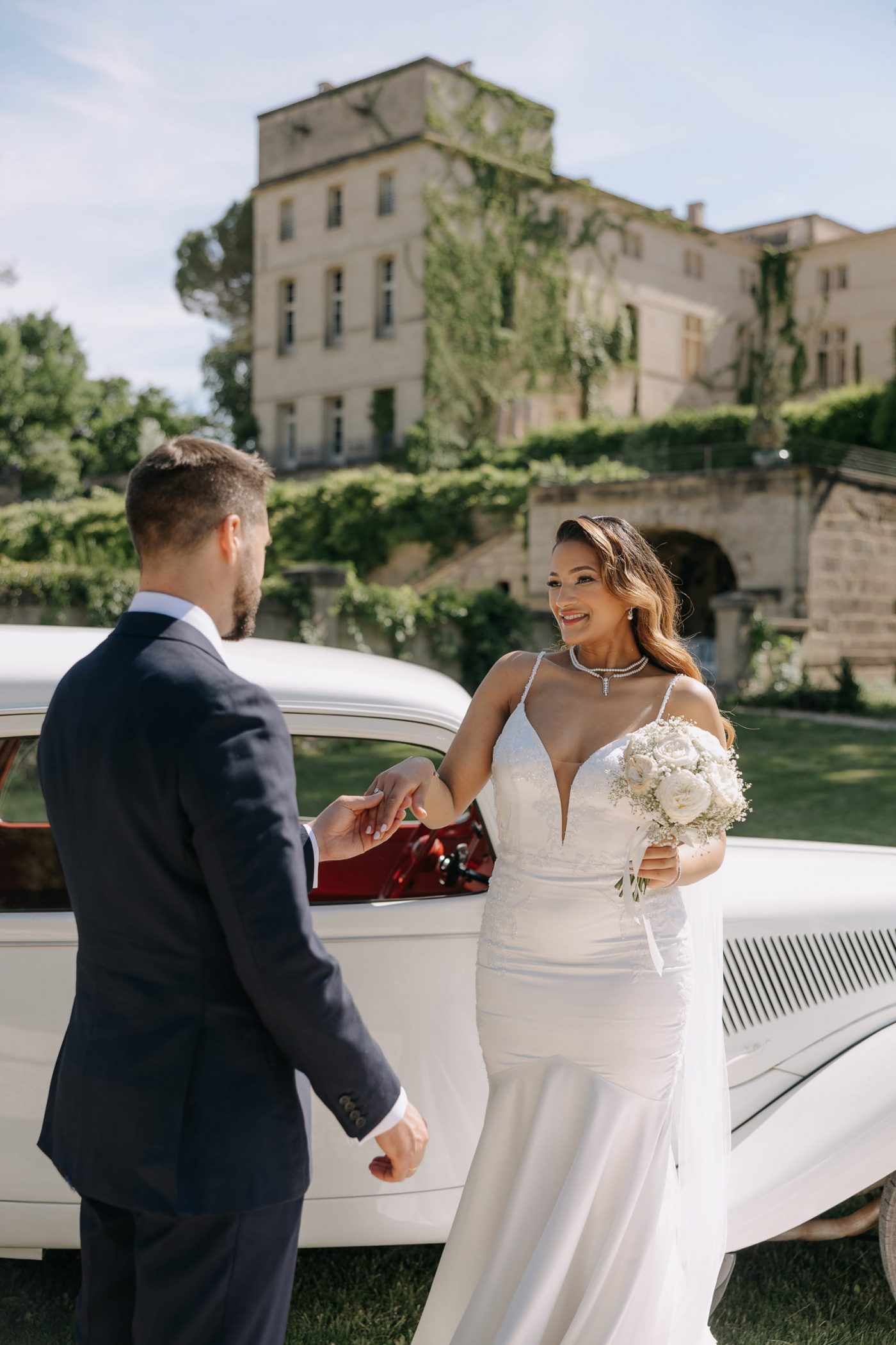 Henri and Mila’s wedding took place in the south of France, near Montpellier, with a church ceremony in the city followed by a full celebration at Château de Pondres. Guests arrived from different countries, and from the very beginning the day felt open, elegant, and quietly emotional.