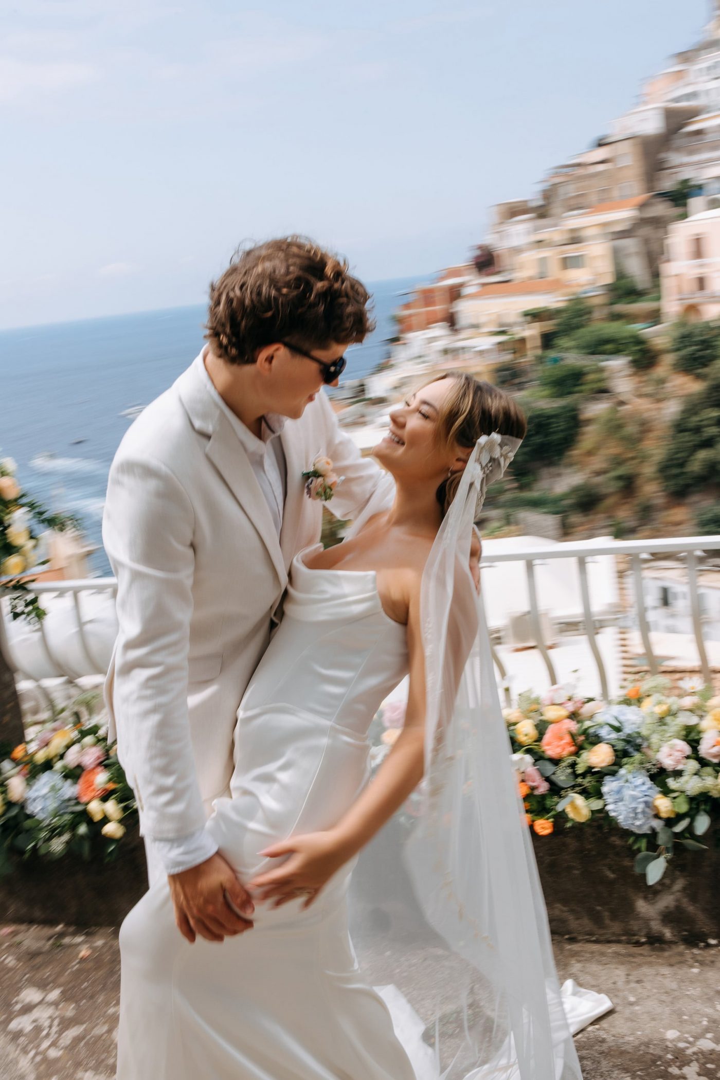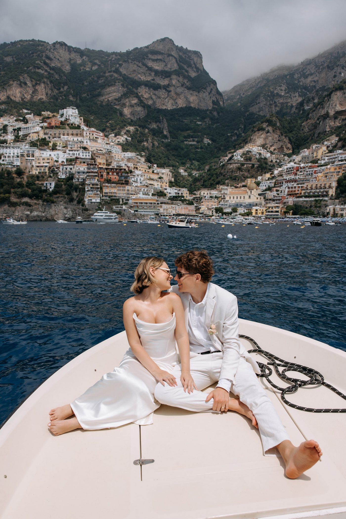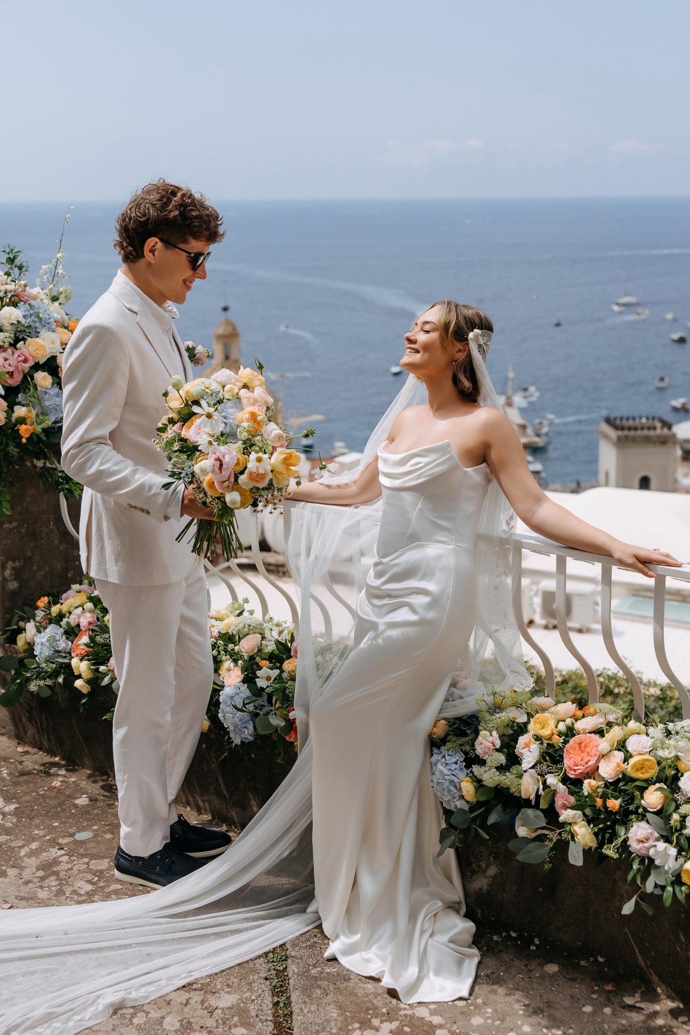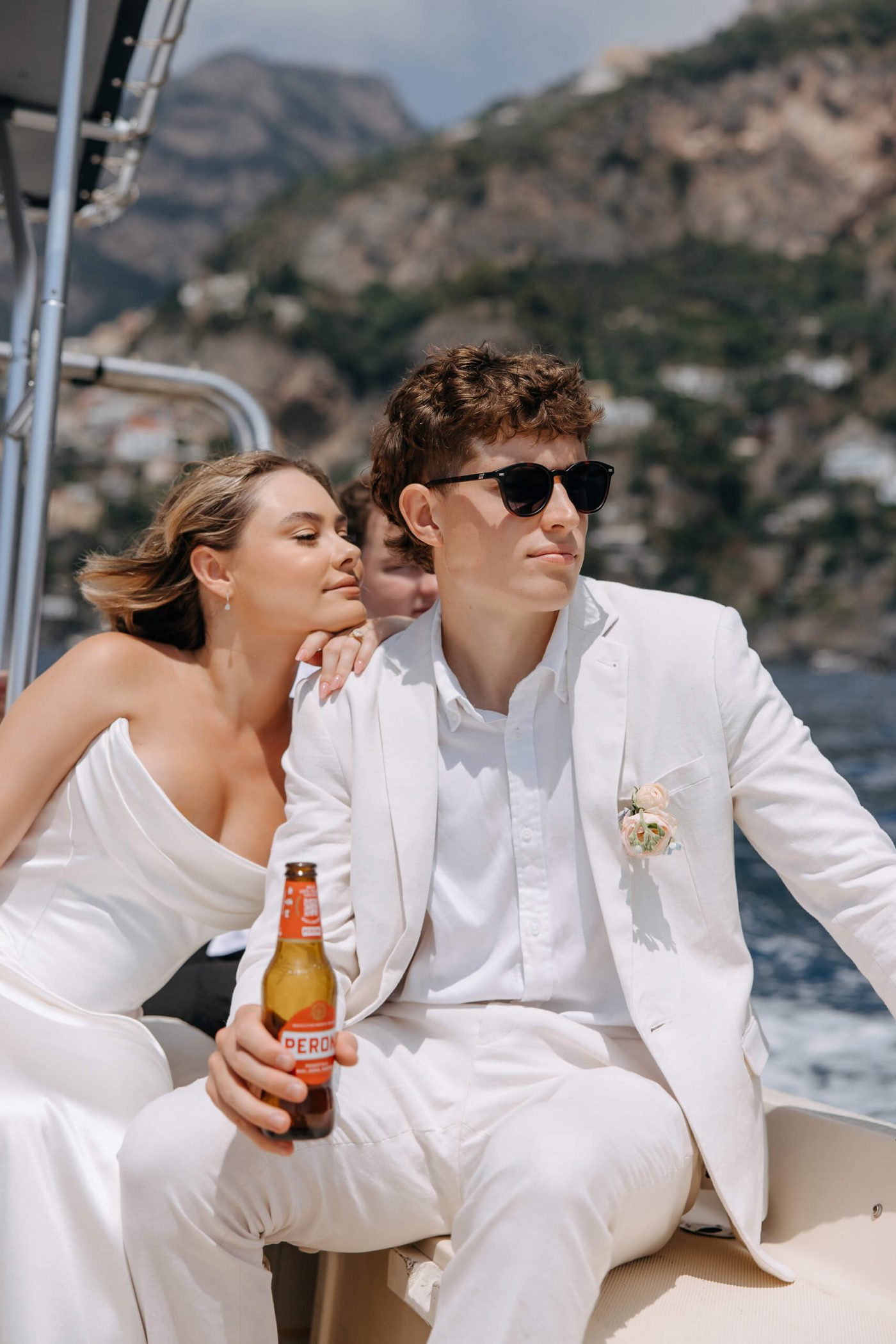 After the emotional ceremony, the couple set sail on a scenic boat trip along the Amalfi Coast, enjoying the fresh sea breeze and capturing unforgettable moments on the Mediterranean. The combination of stunning landscapes, elegant floral decor, and a relaxed yet sophisticated atmosphere made their wedding a true Italian dream.