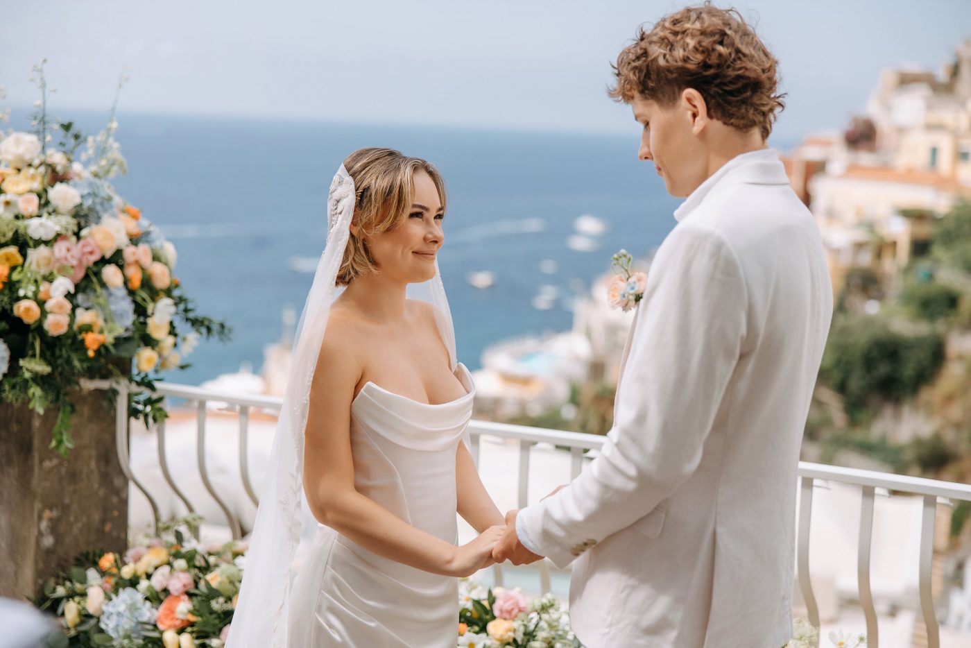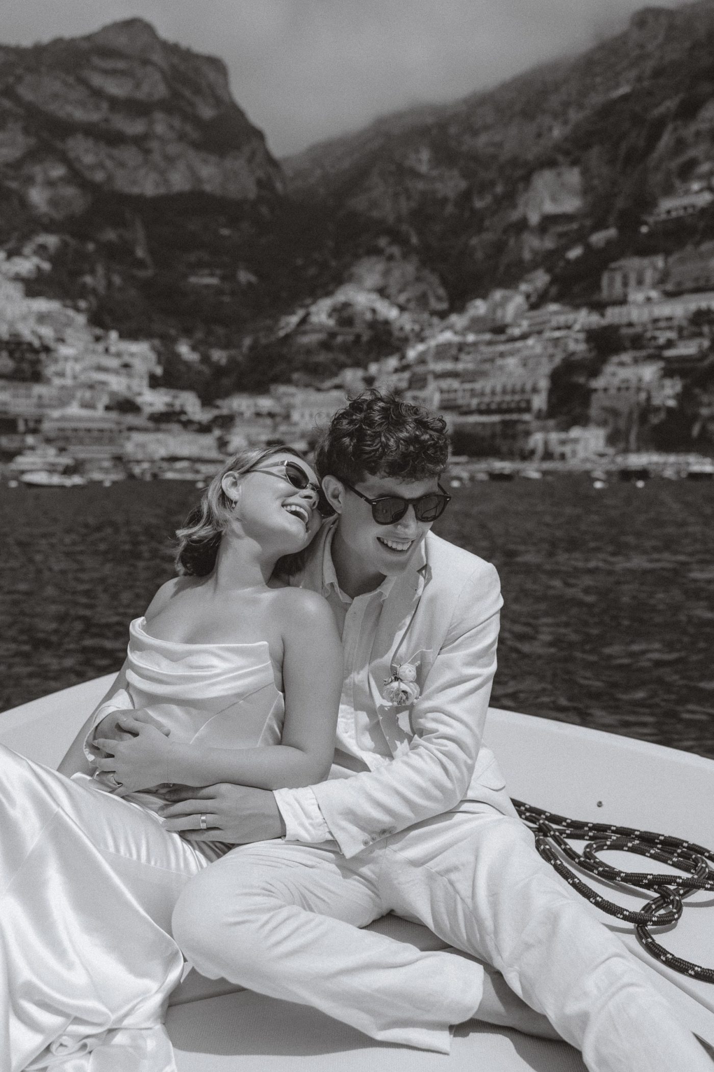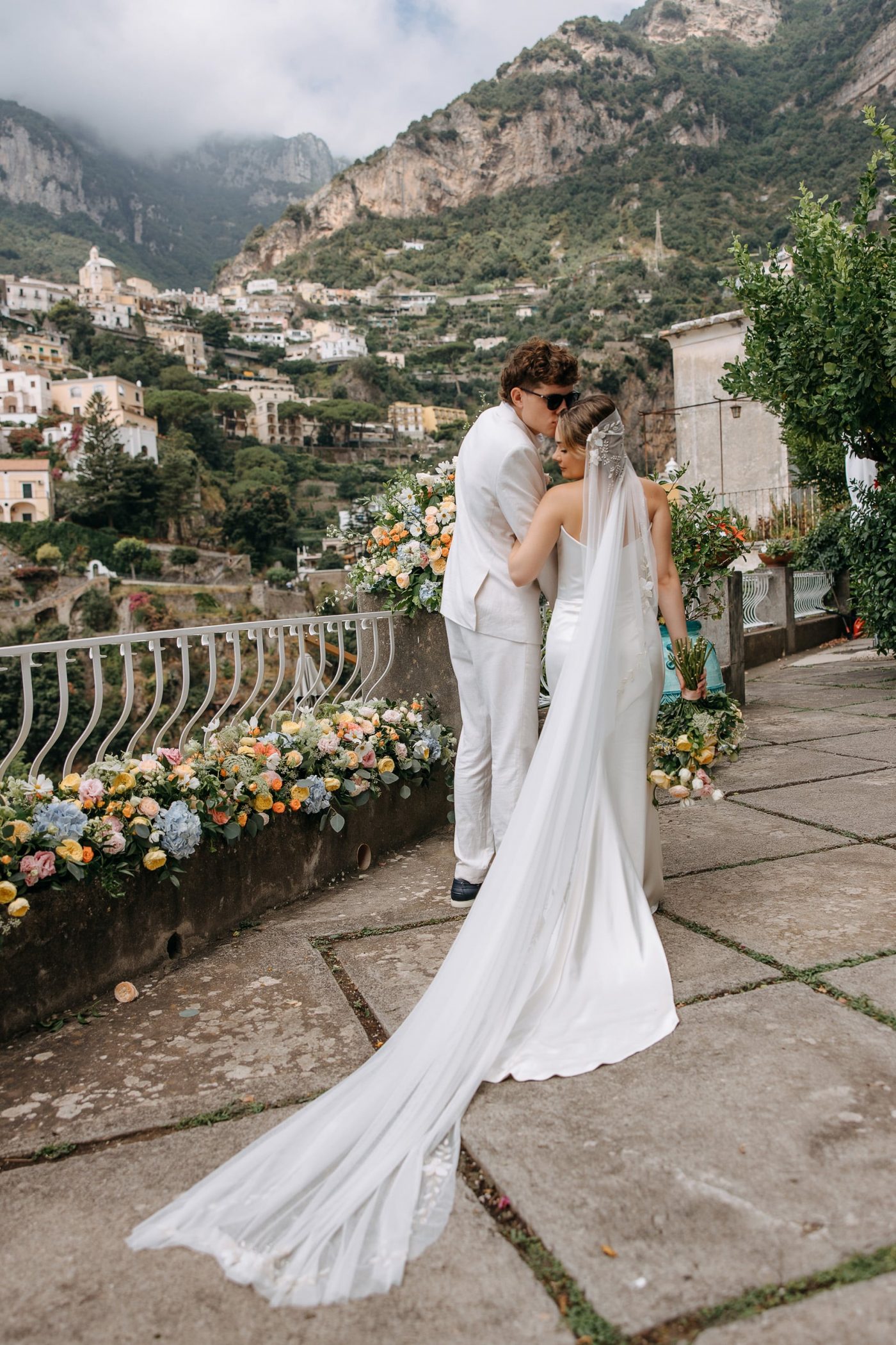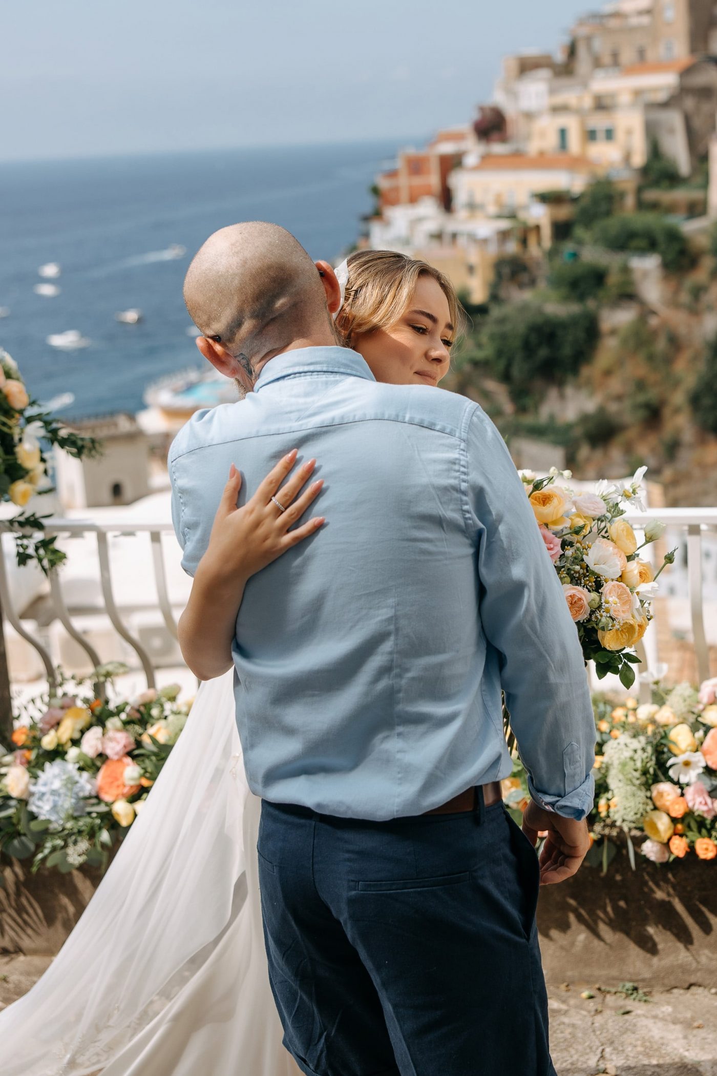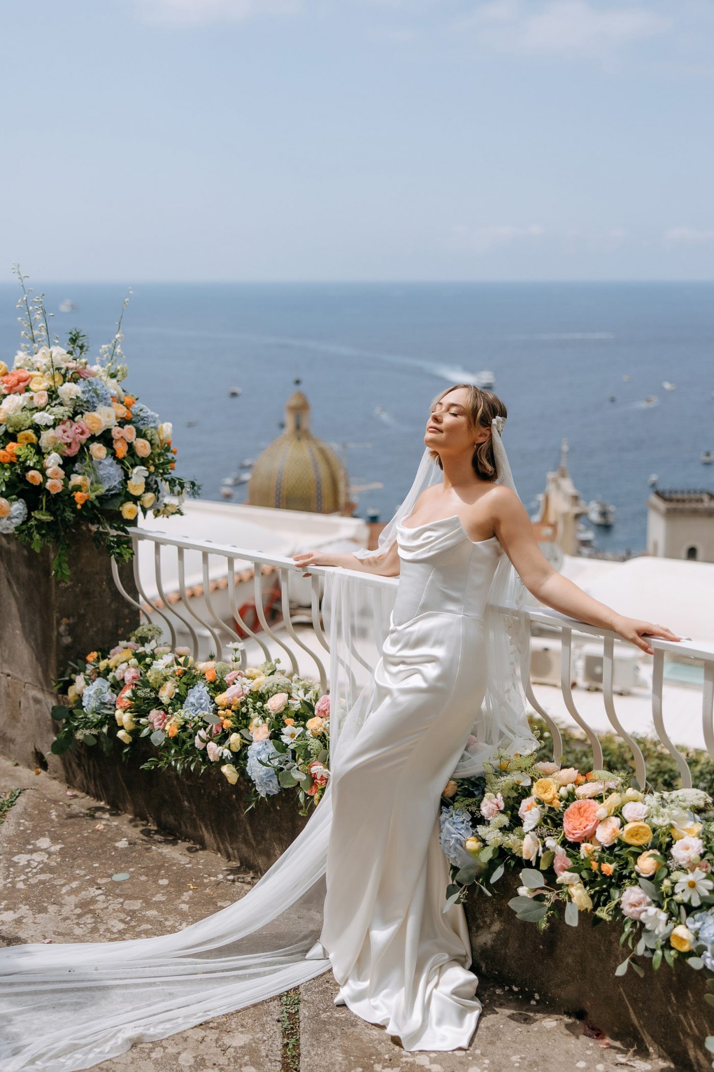 After the emotional ceremony, the couple set sail on a scenic boat trip along the Amalfi Coast, enjoying the fresh sea breeze and capturing unforgettable moments on the Mediterranean. The combination of stunning landscapes, elegant floral decor, and a relaxed yet sophisticated atmosphere made their wedding a true Italian dream.