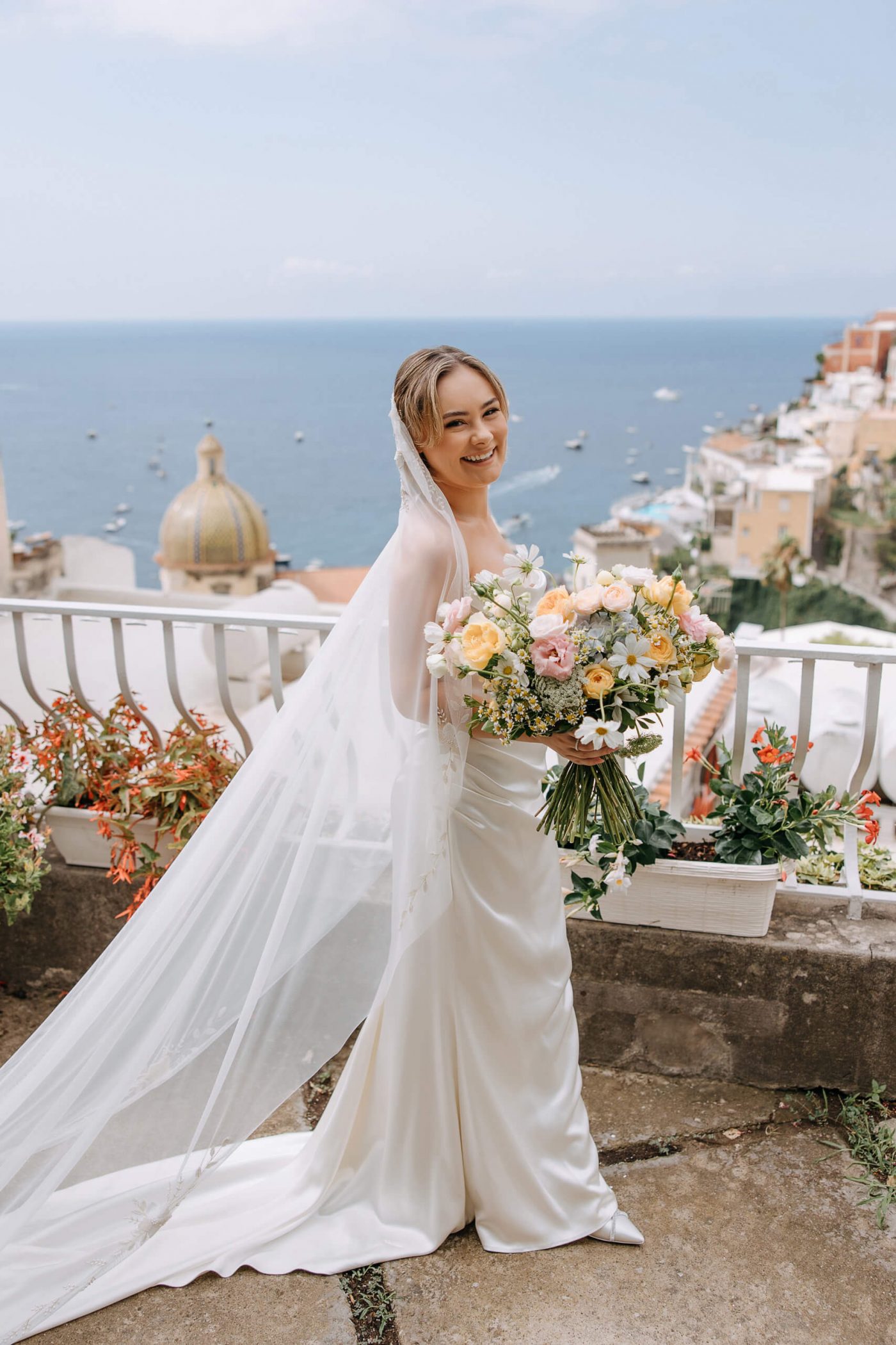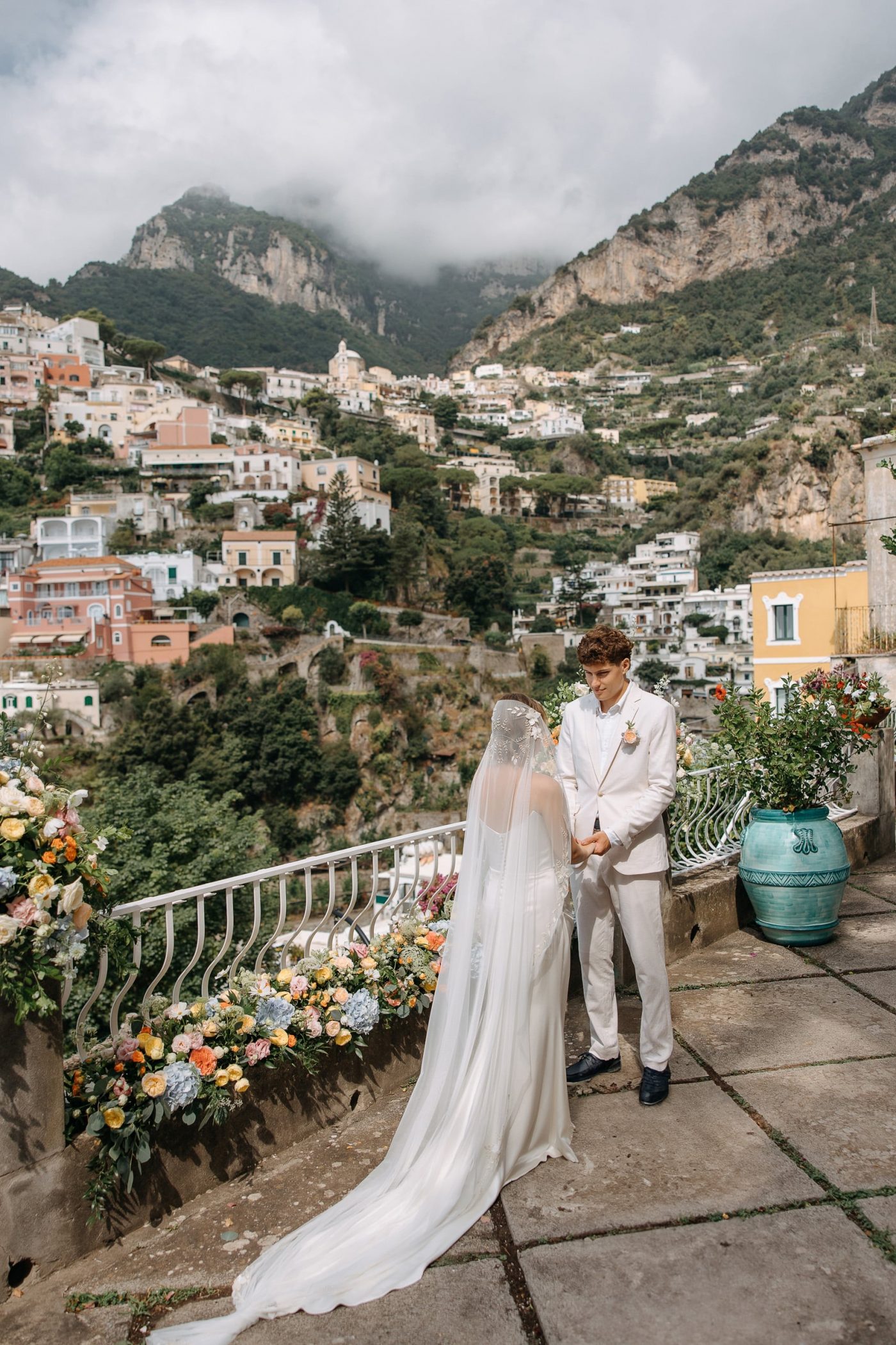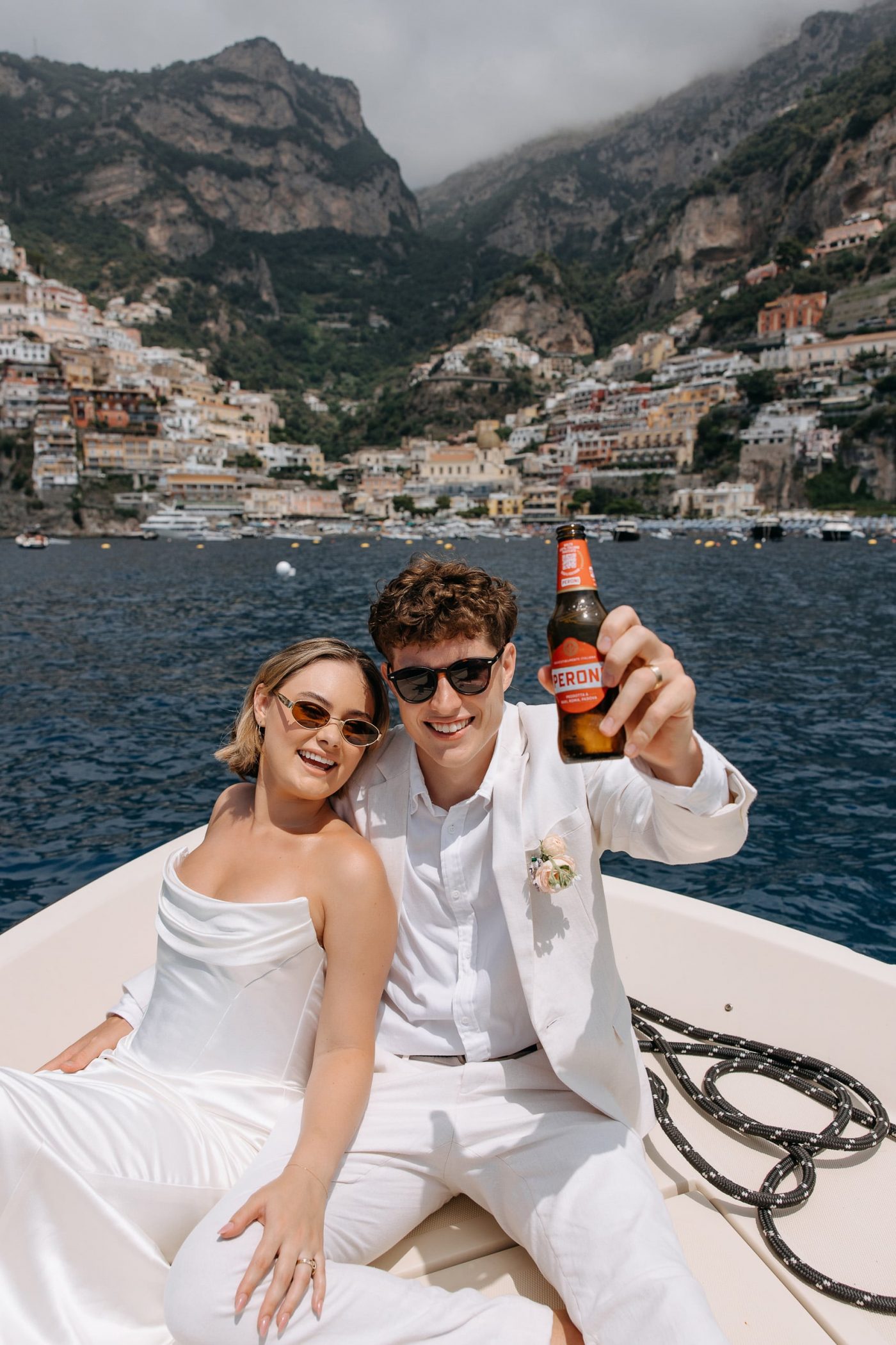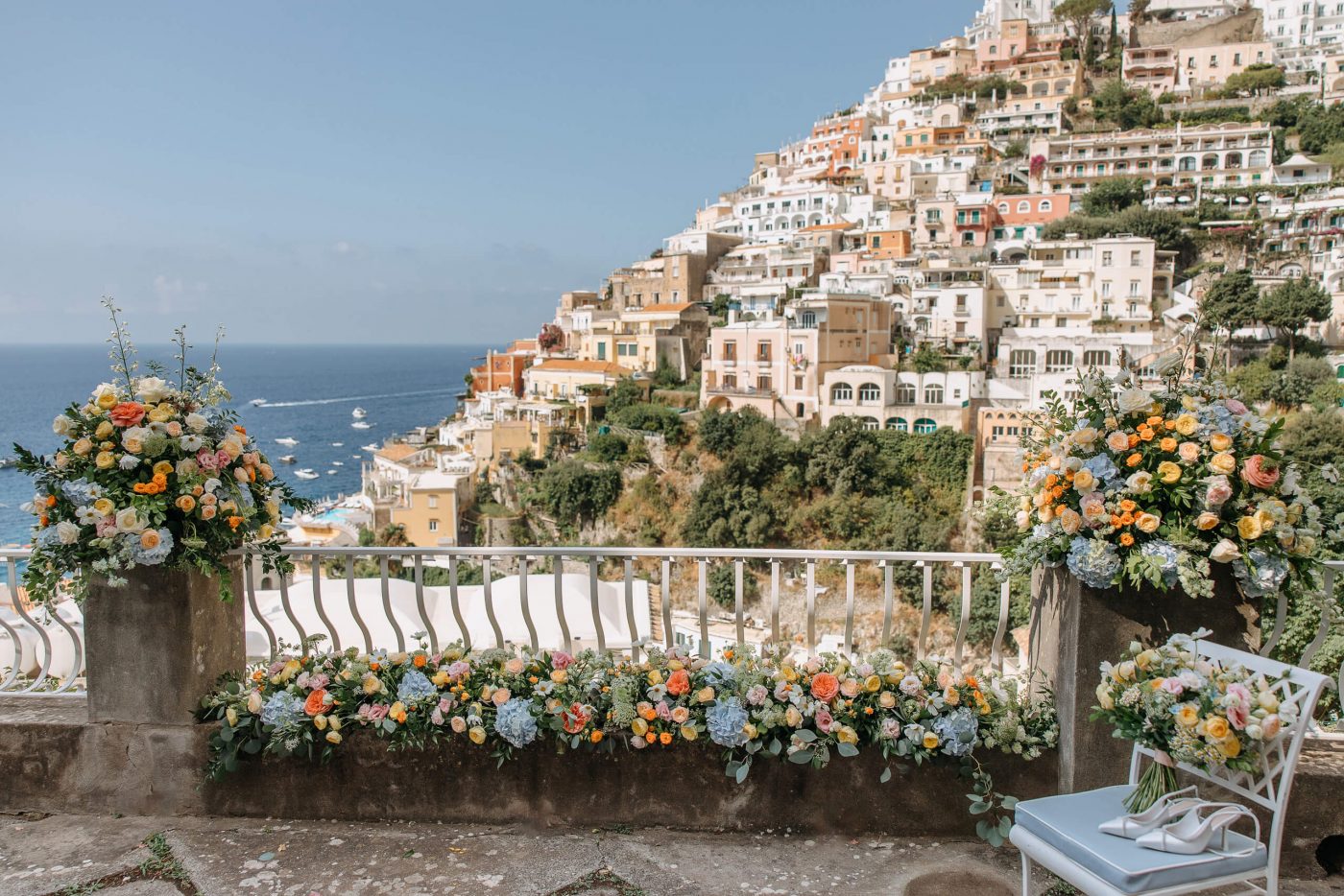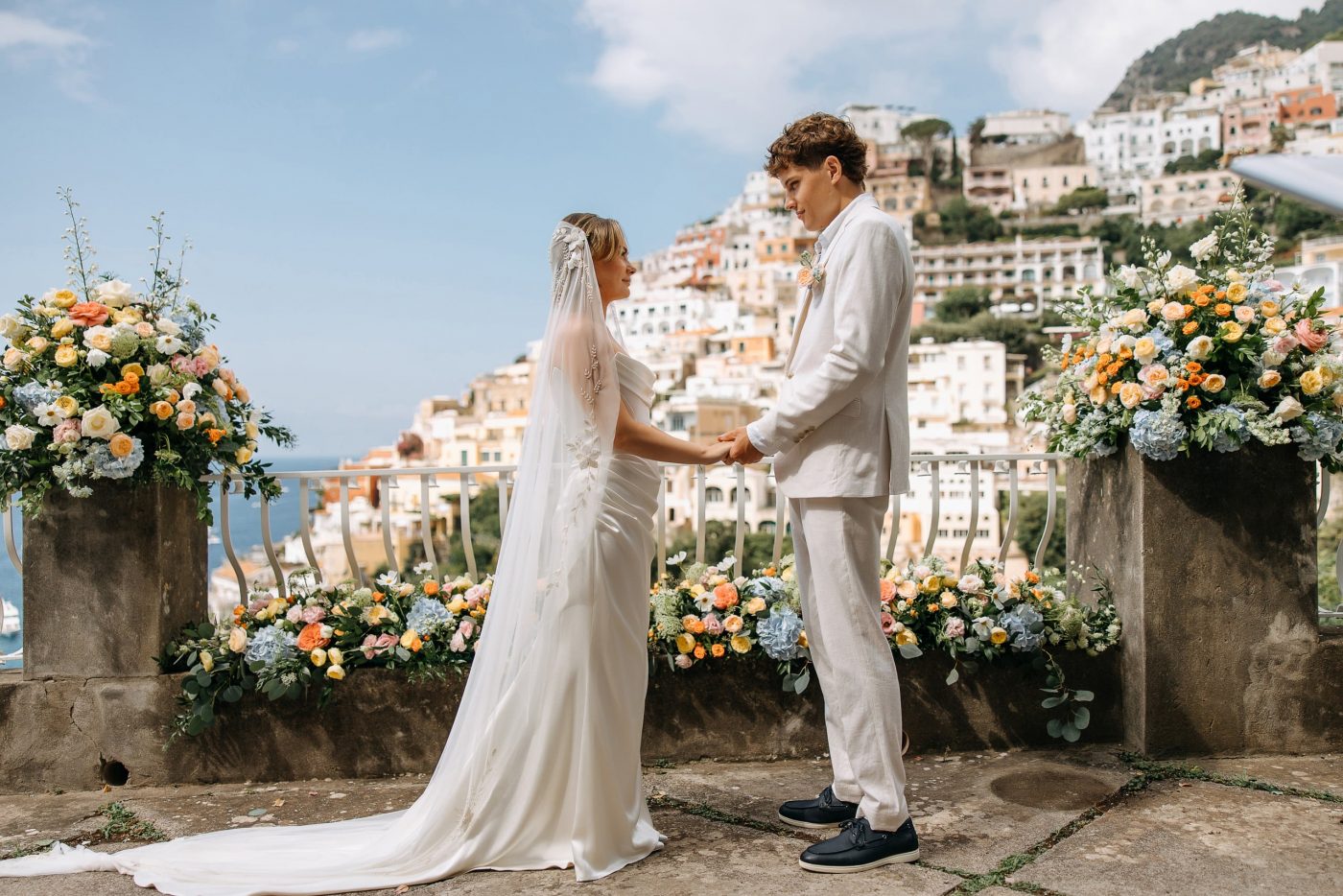 After the emotional ceremony, the couple set sail on a scenic boat trip along the Amalfi Coast, enjoying the fresh sea breeze and capturing unforgettable moments on the Mediterranean. The combination of stunning landscapes, elegant floral decor, and a relaxed yet sophisticated atmosphere made their wedding a true Italian dream.