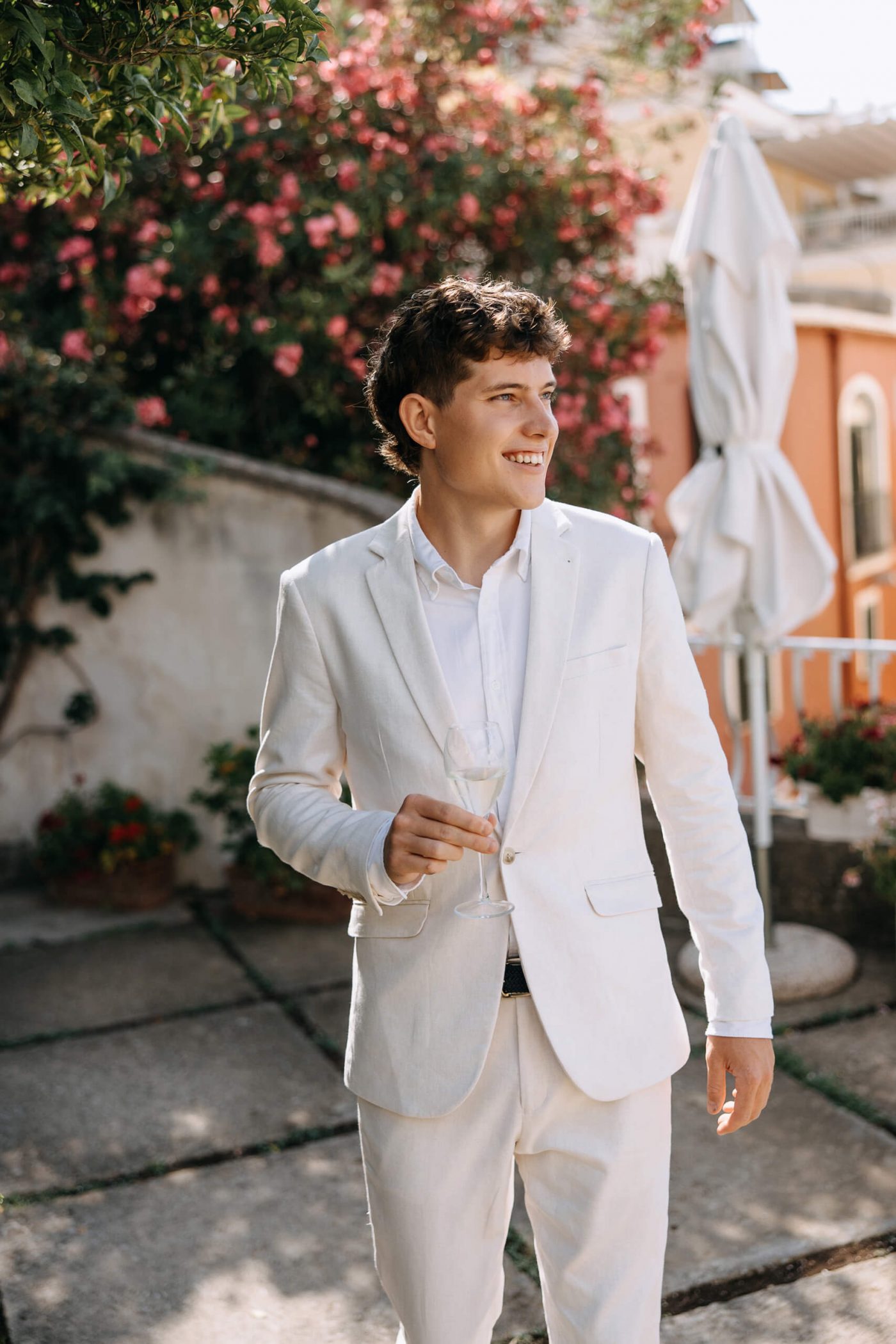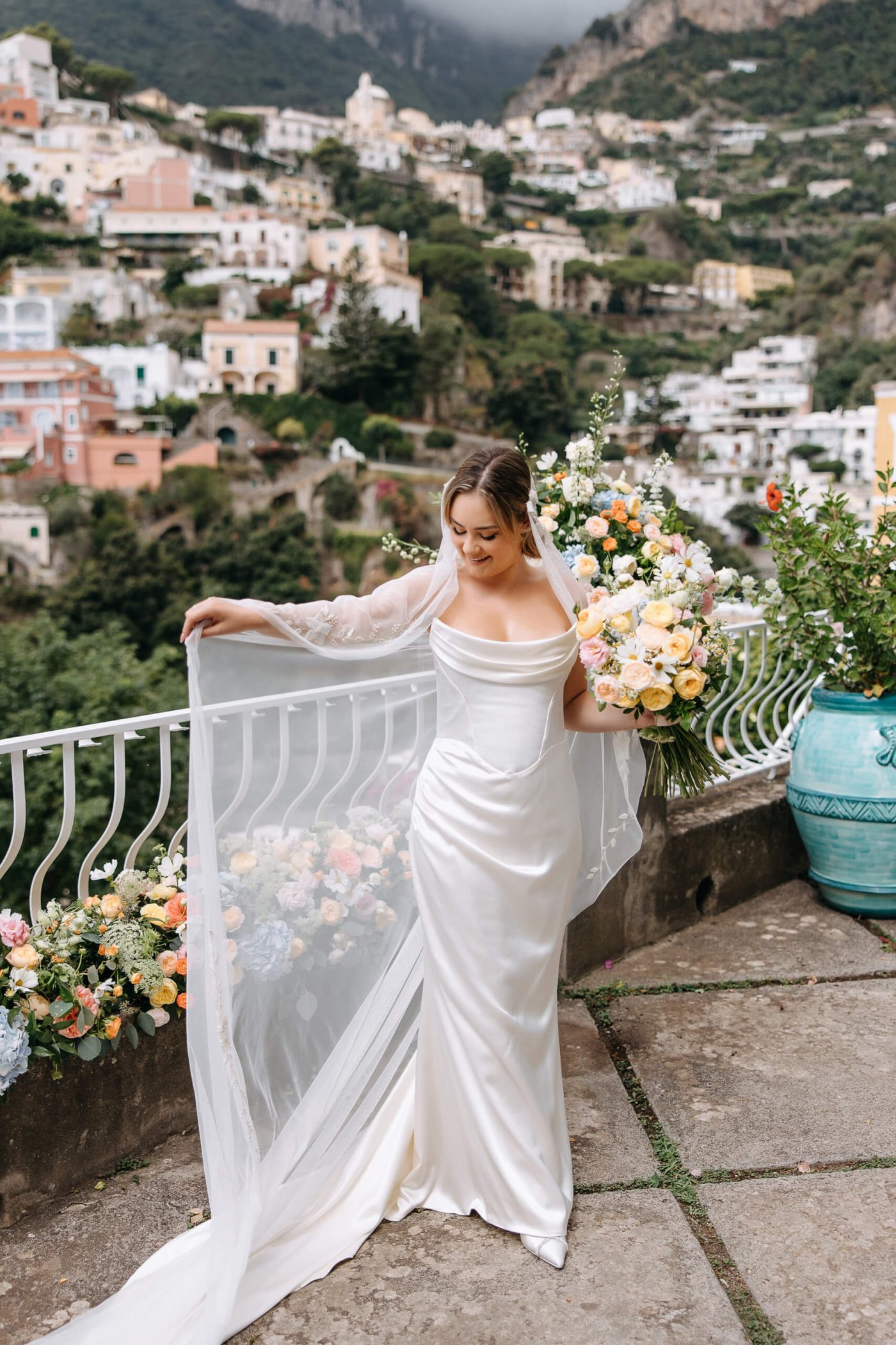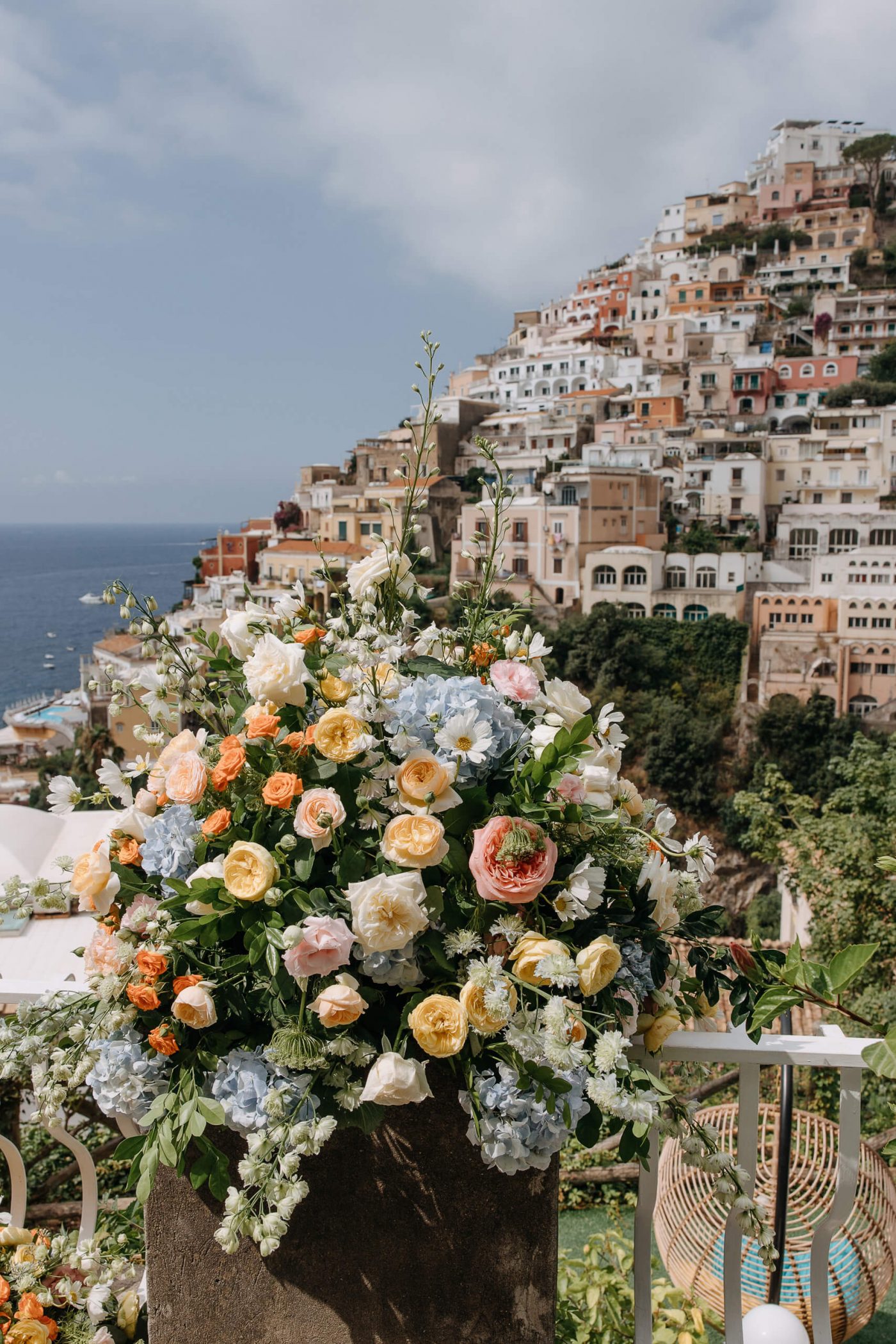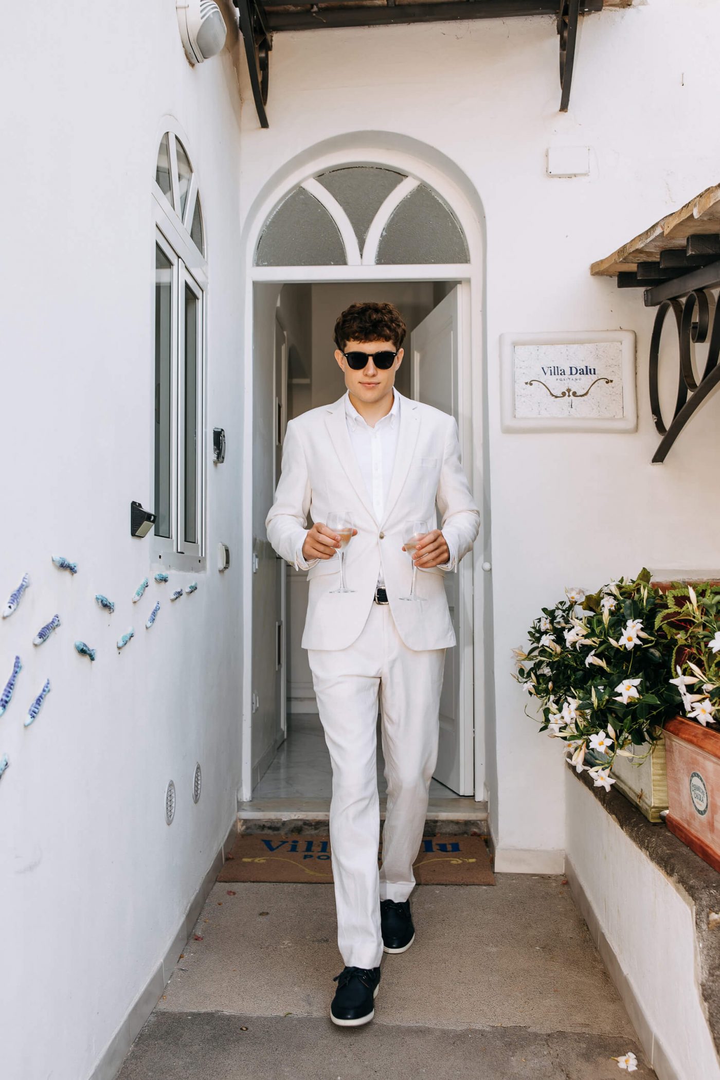 After the emotional ceremony, the couple set sail on a scenic boat trip along the Amalfi Coast, enjoying the fresh sea breeze and capturing unforgettable moments on the Mediterranean. The combination of stunning landscapes, elegant floral decor, and a relaxed yet sophisticated atmosphere made their wedding a true Italian dream.