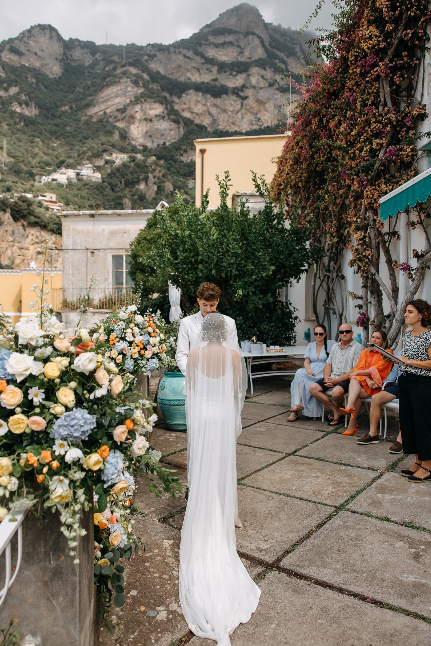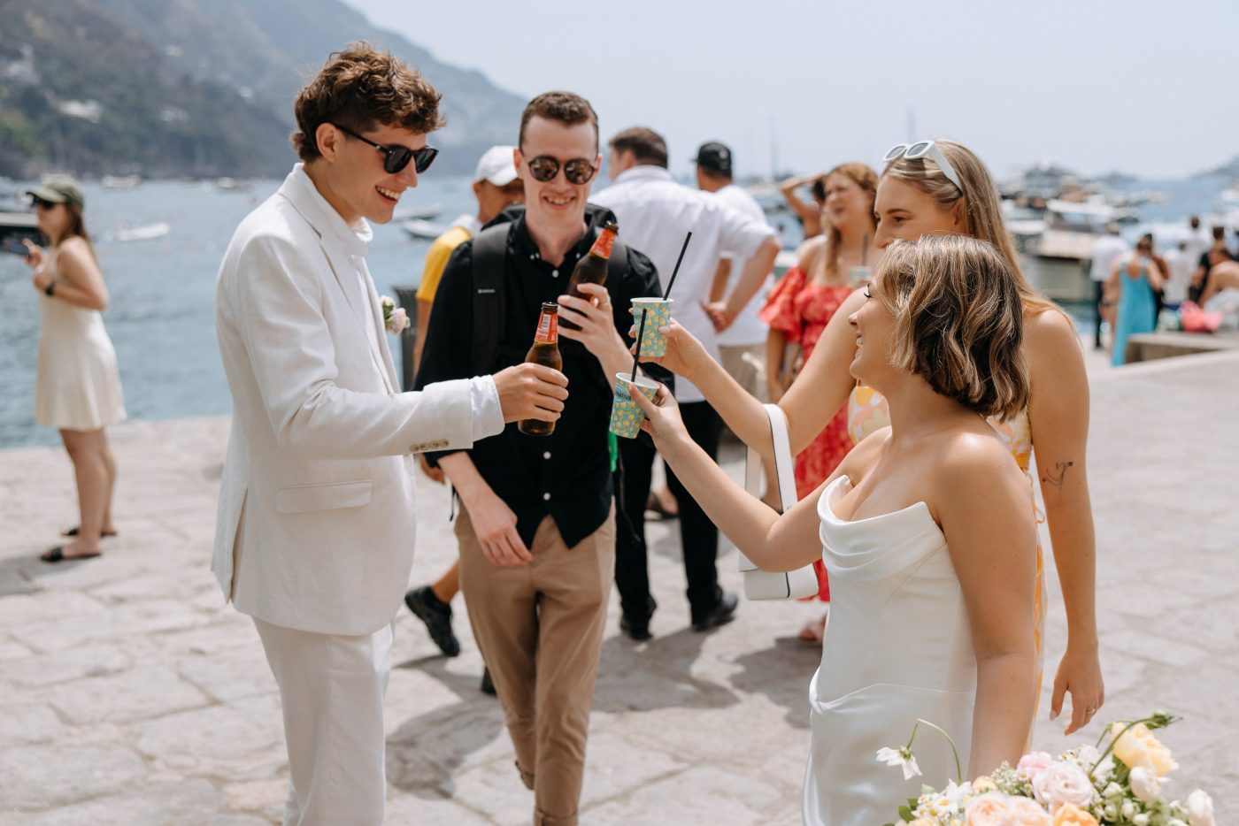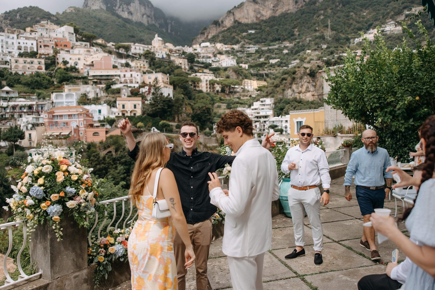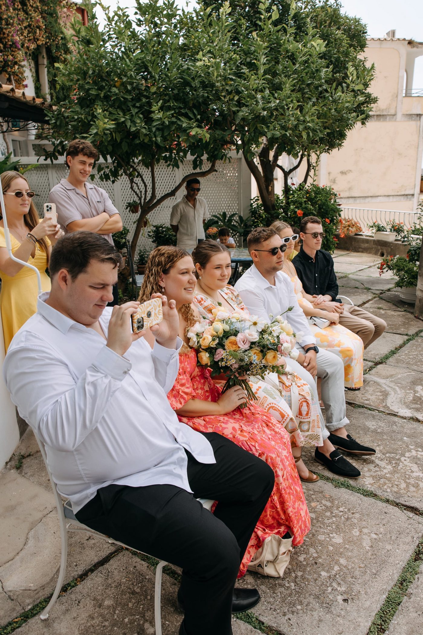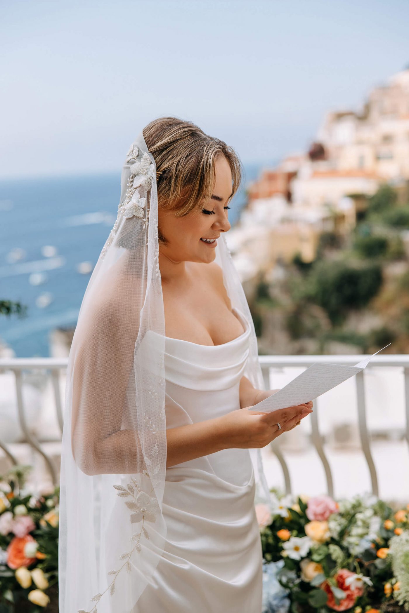 After the emotional ceremony, the couple set sail on a scenic boat trip along the Amalfi Coast, enjoying the fresh sea breeze and capturing unforgettable moments on the Mediterranean. The combination of stunning landscapes, elegant floral decor, and a relaxed yet sophisticated atmosphere made their wedding a true Italian dream.