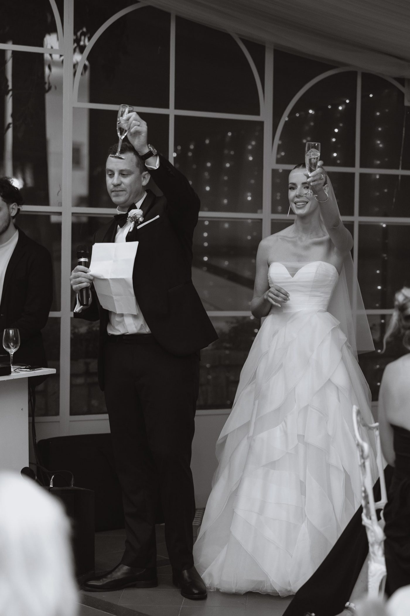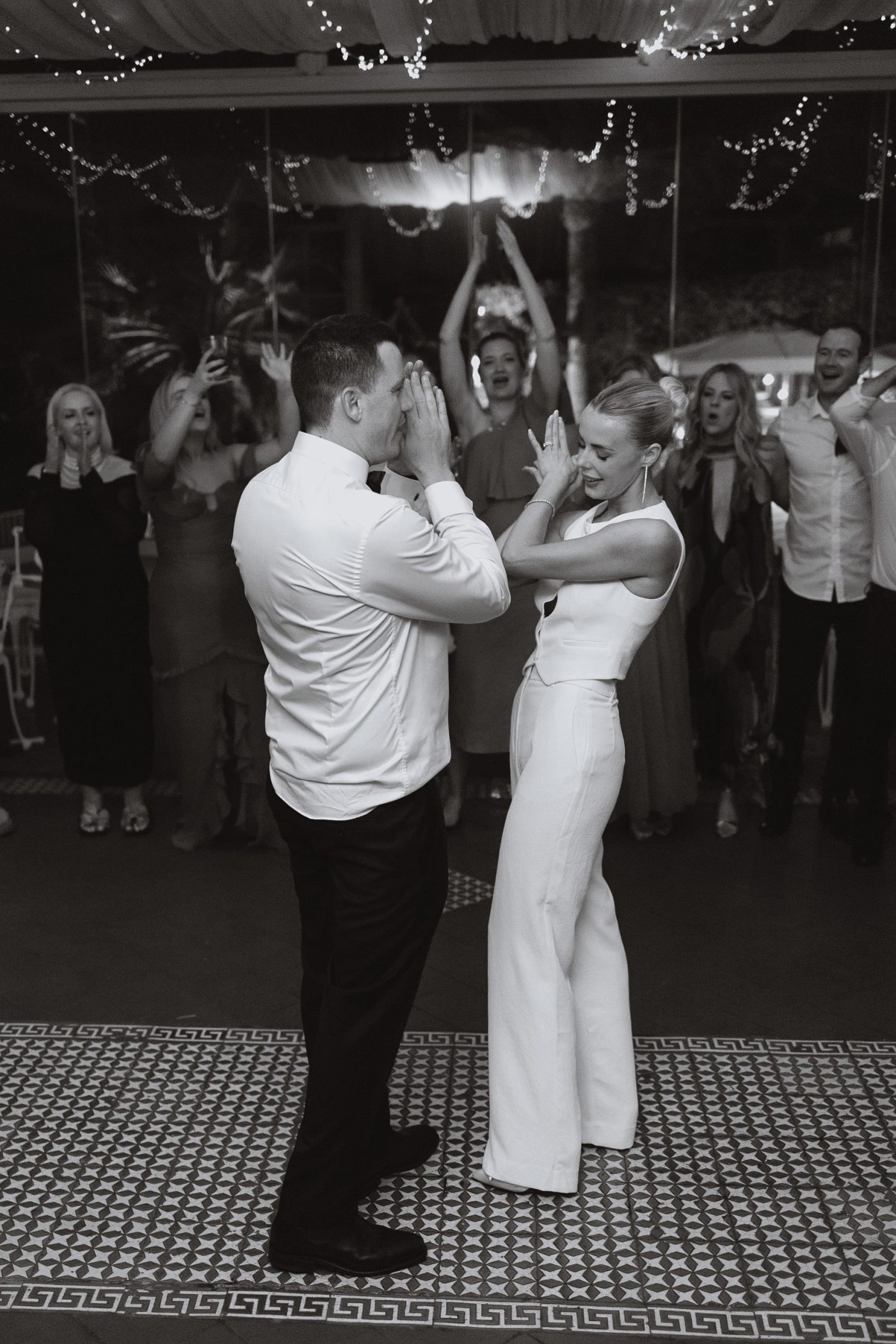 The reception was a celebration of love and joy, featuring exquisite Italian cuisine and fine wine. Set against the golden hues of a Mediterranean sunset, the evening turned into an unforgettable gathering of laughter, dancing, and heartfelt toasts.