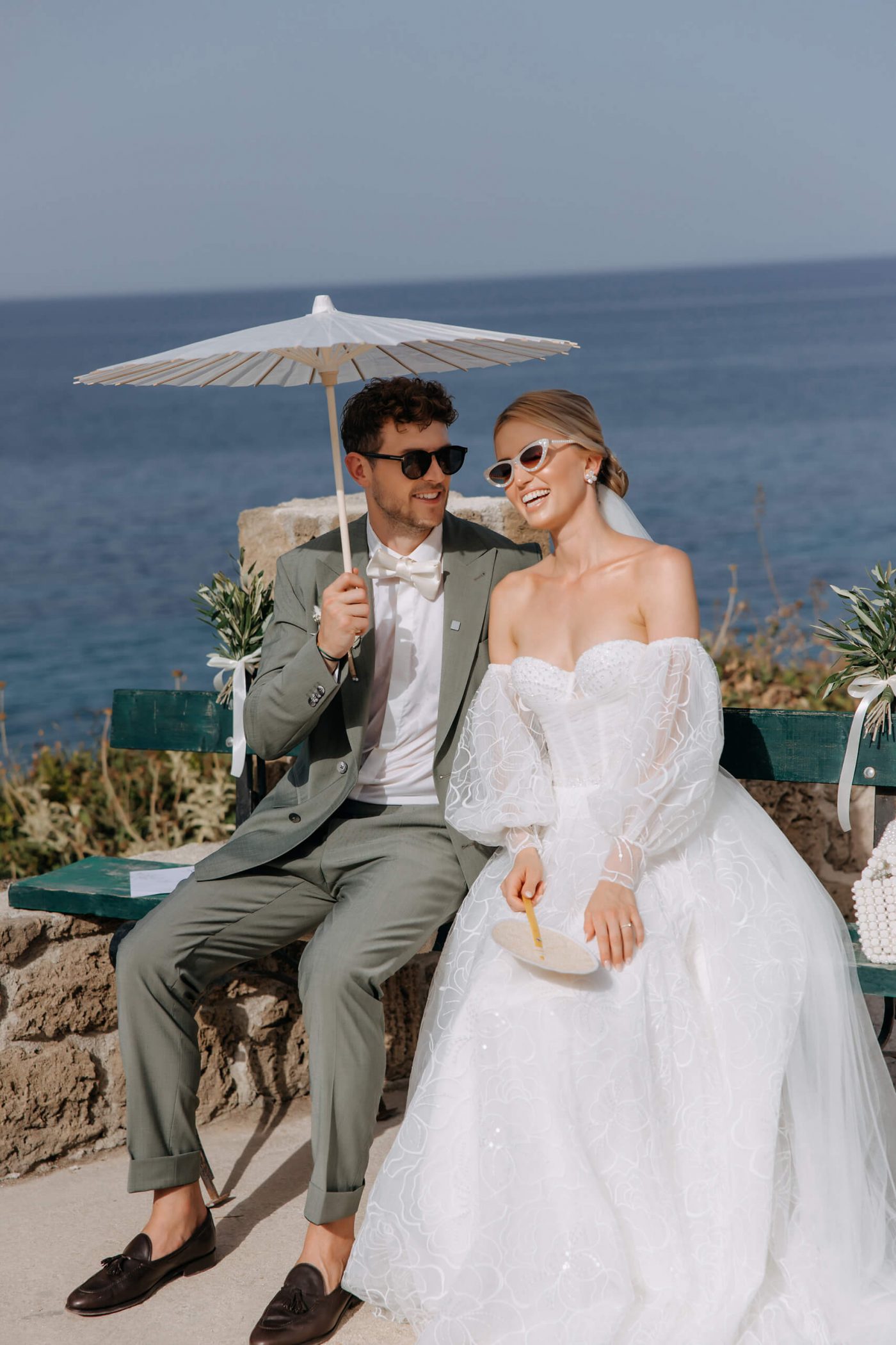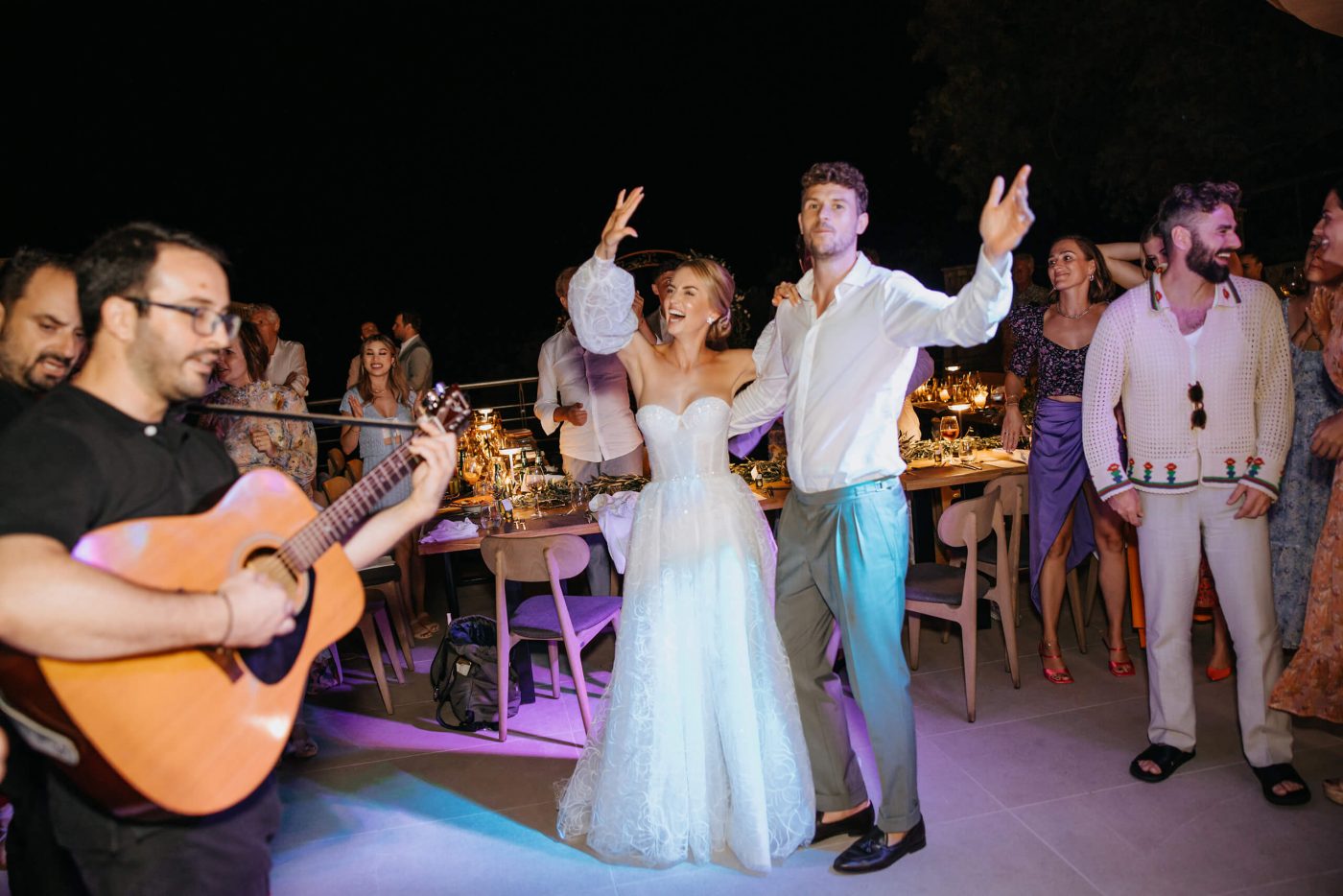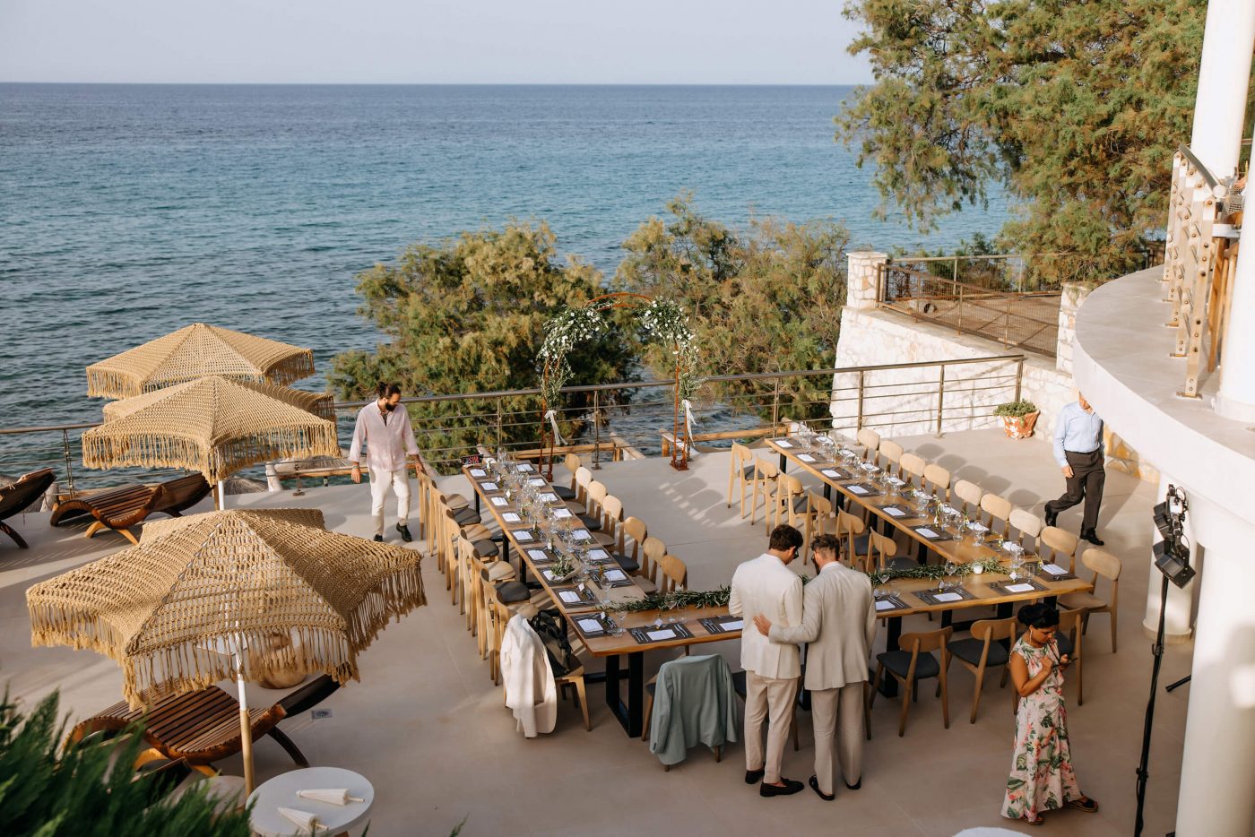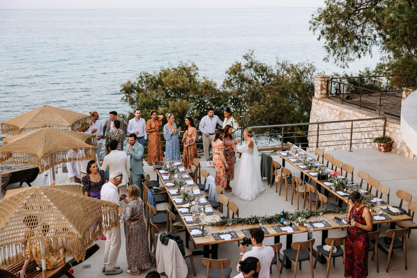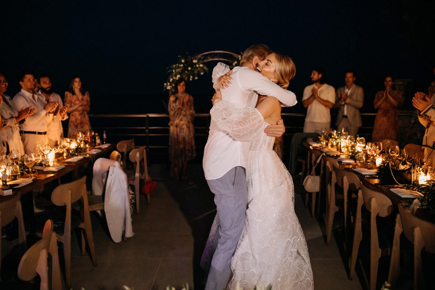 As the sun dipped below the horizon, guests enjoyed a seaside dinner, where the sound of gentle waves and Greek melodies created an unforgettable atmosphere. Laughter, heartfelt toasts, and traditional Greek dances filled the night, turning this wedding into a true celebration of love and culture.