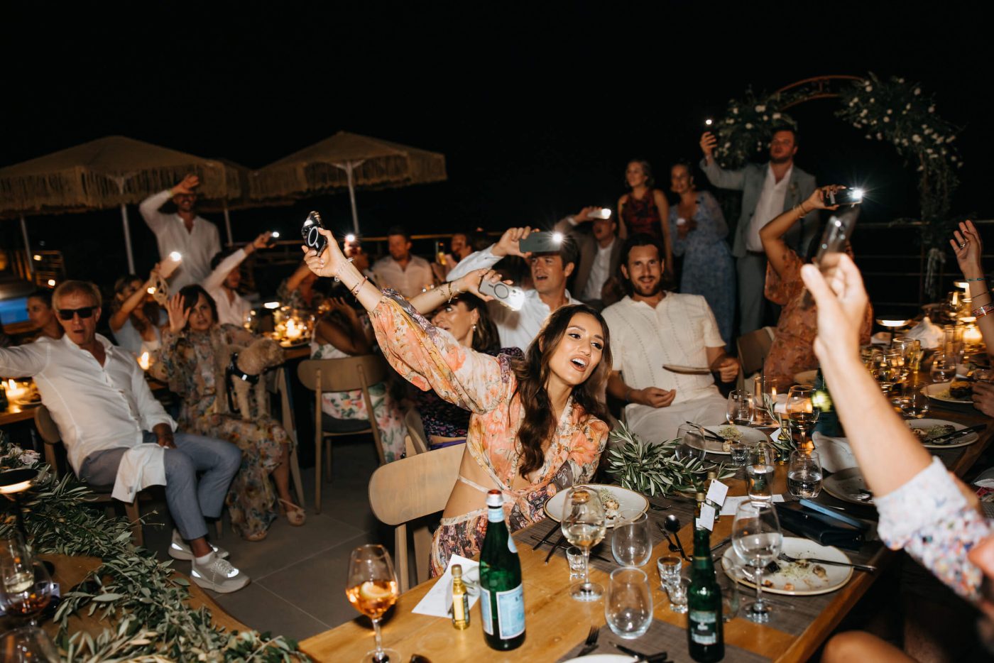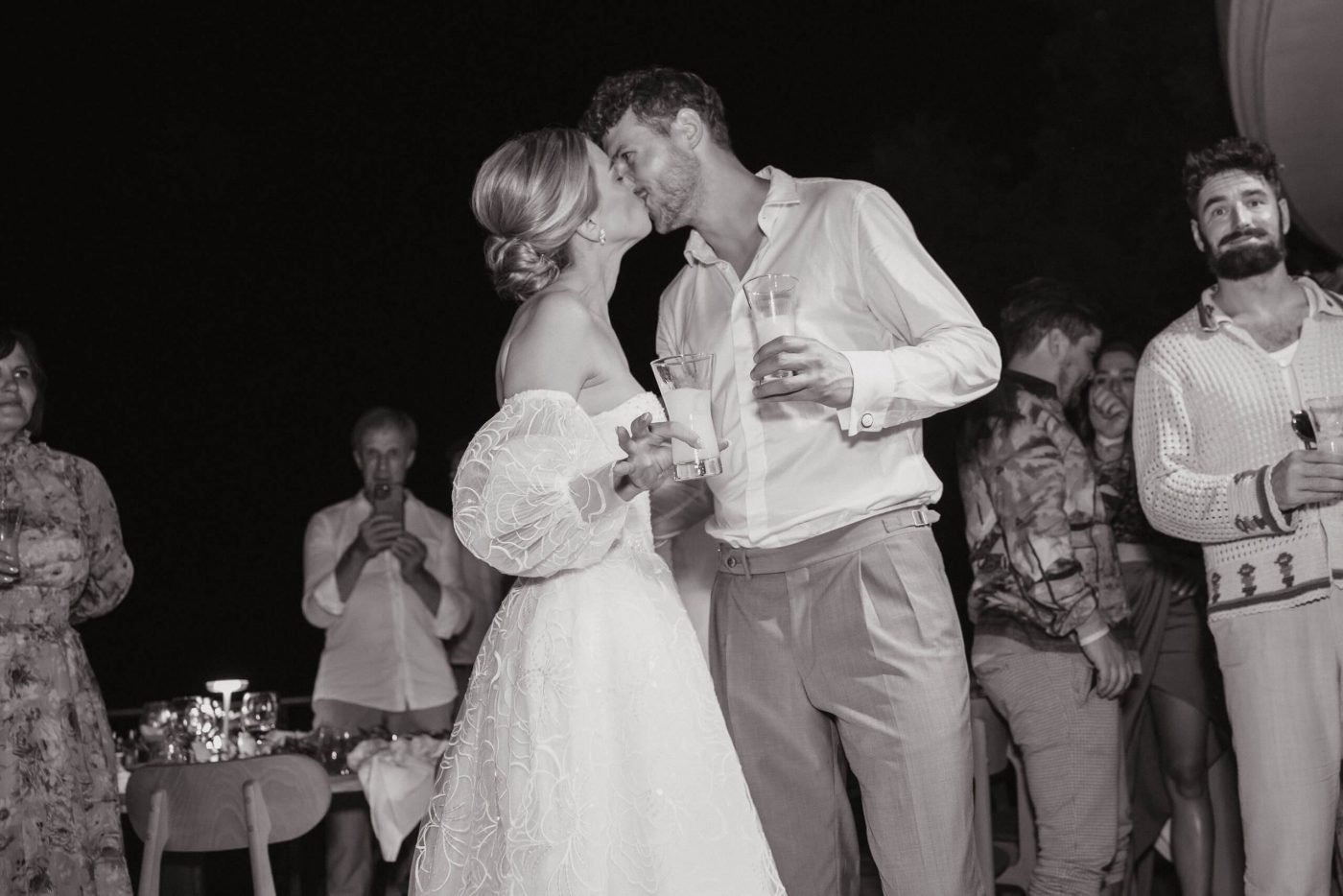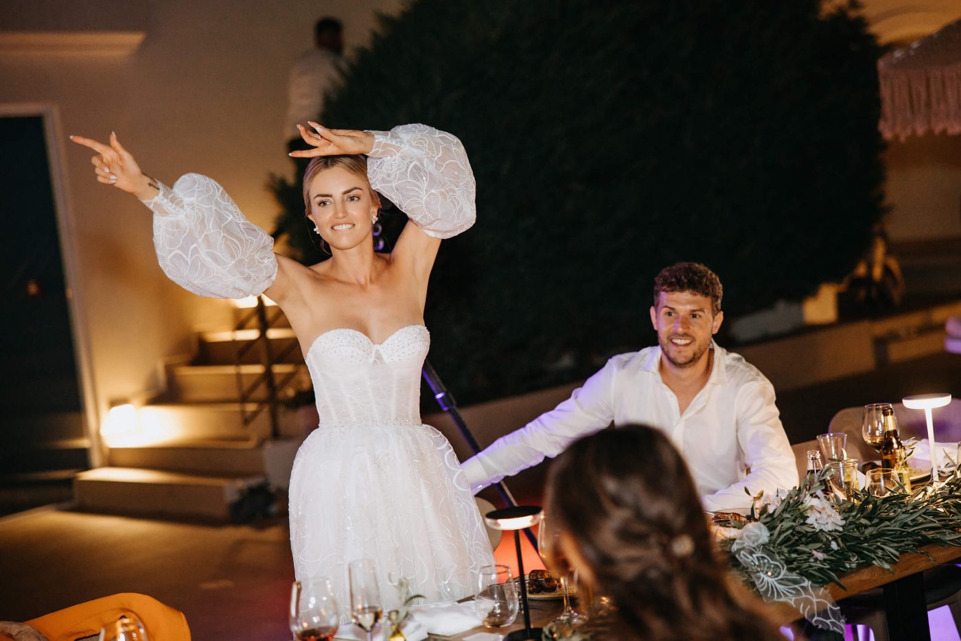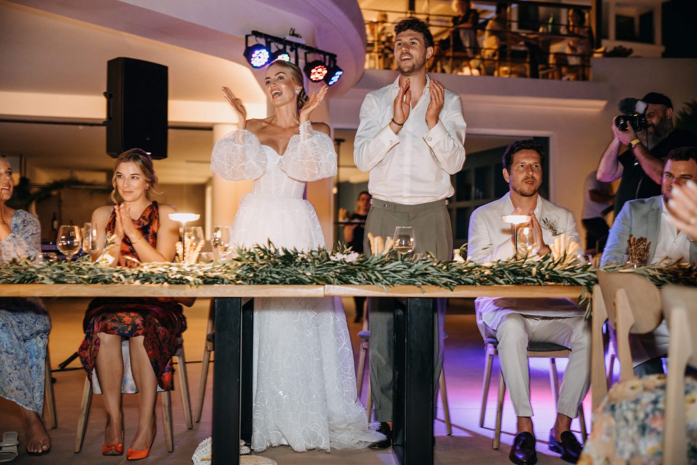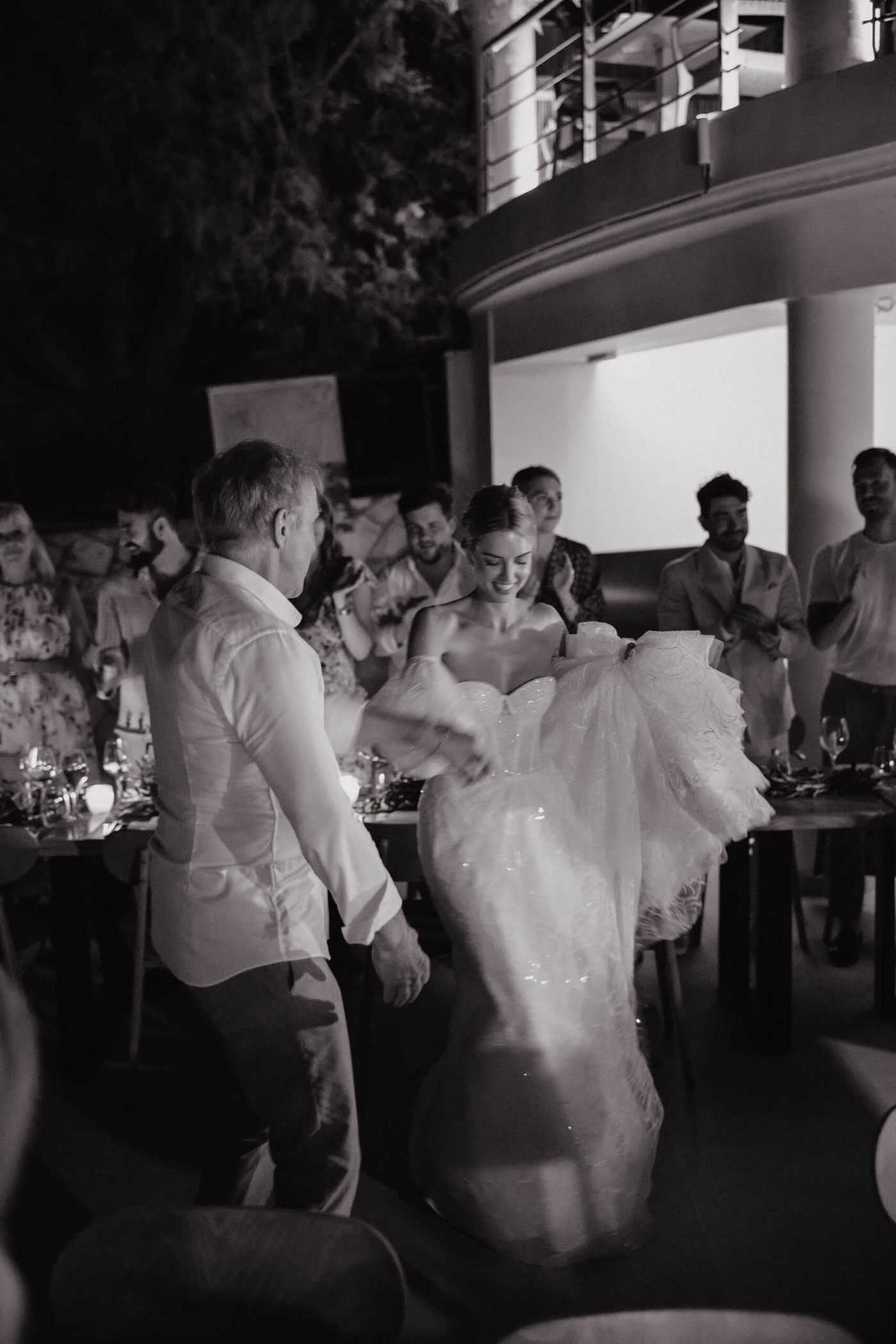 As the sun dipped below the horizon, guests enjoyed a seaside dinner, where the sound of gentle waves and Greek melodies created an unforgettable atmosphere. Laughter, heartfelt toasts, and traditional Greek dances filled the night, turning this wedding into a true celebration of love and culture.