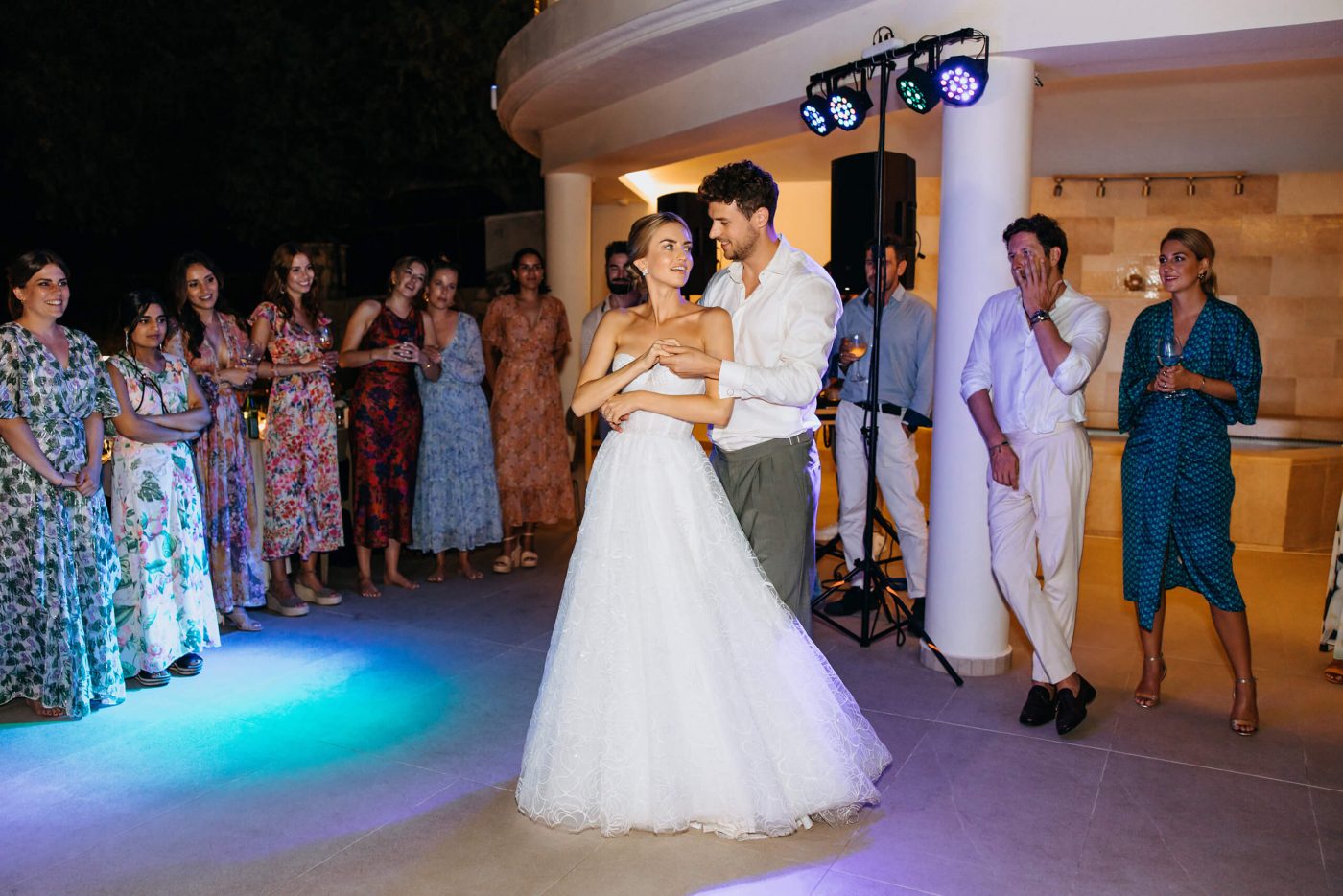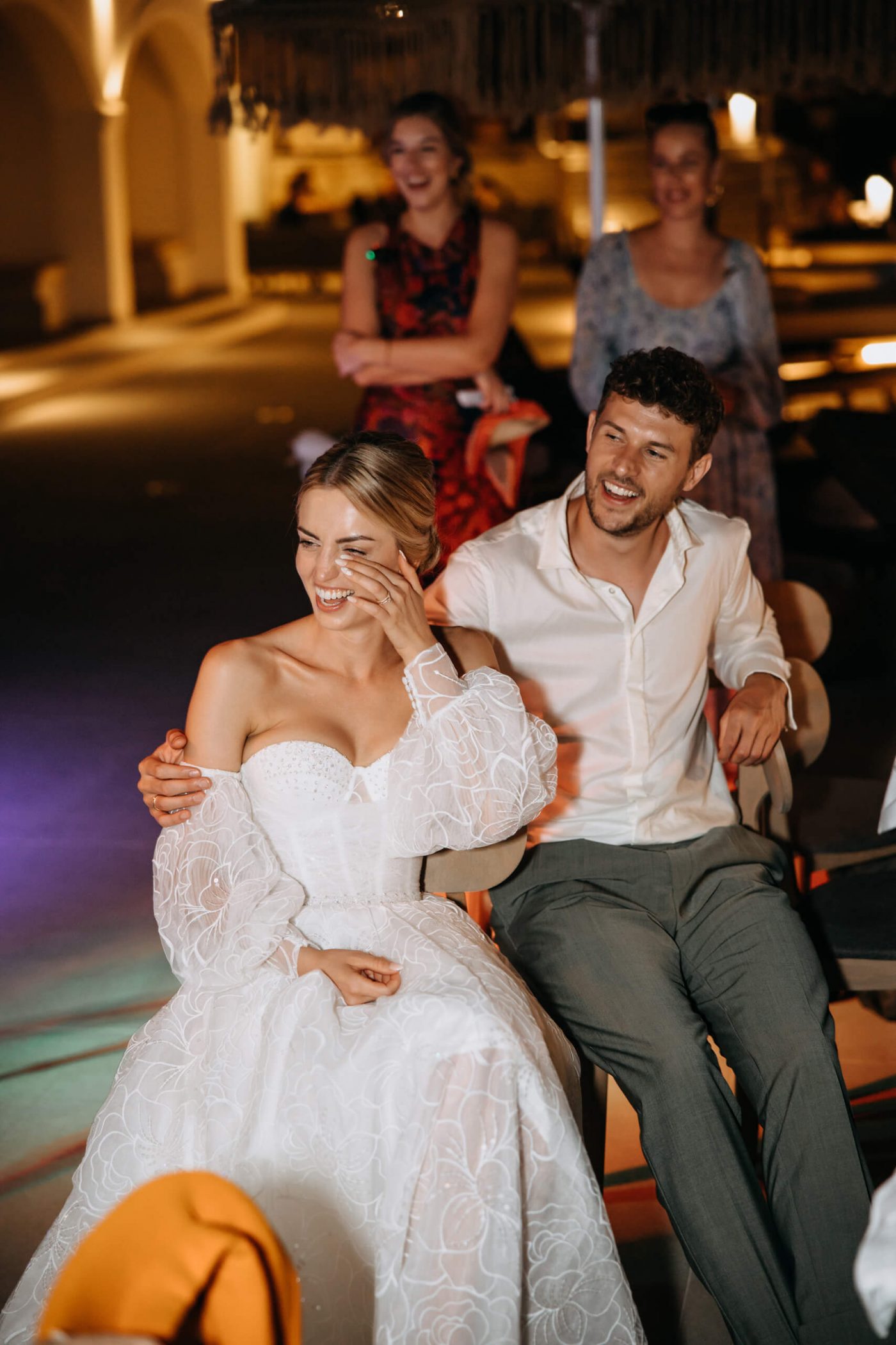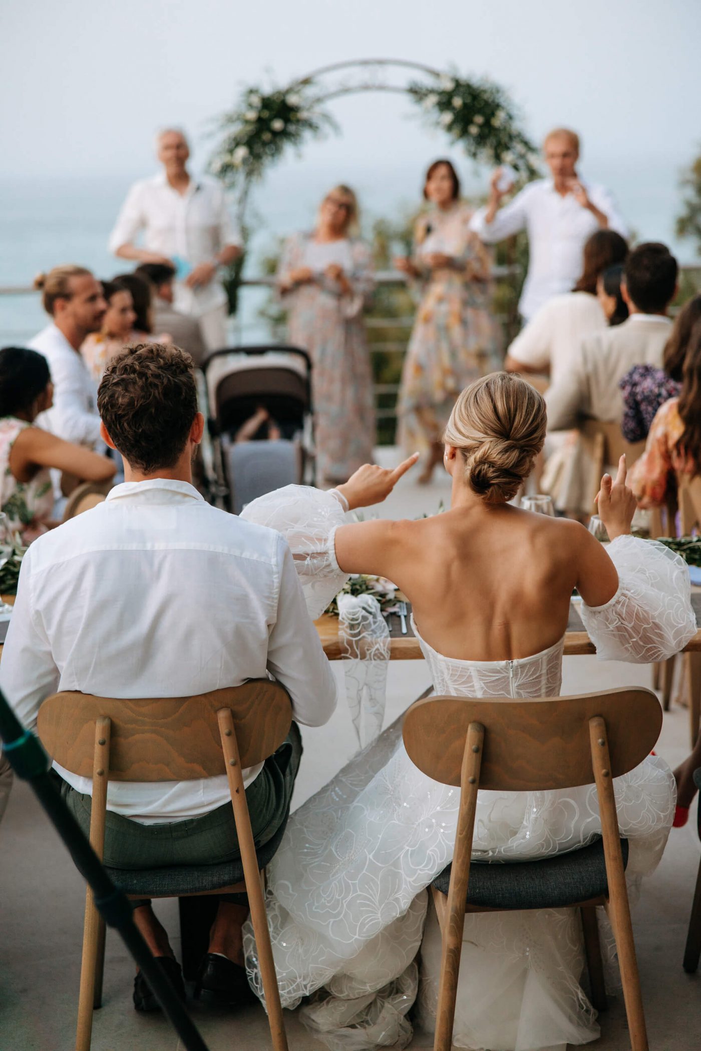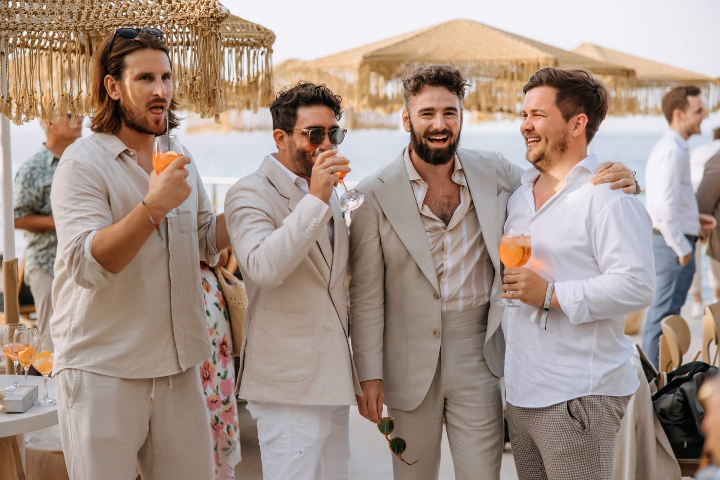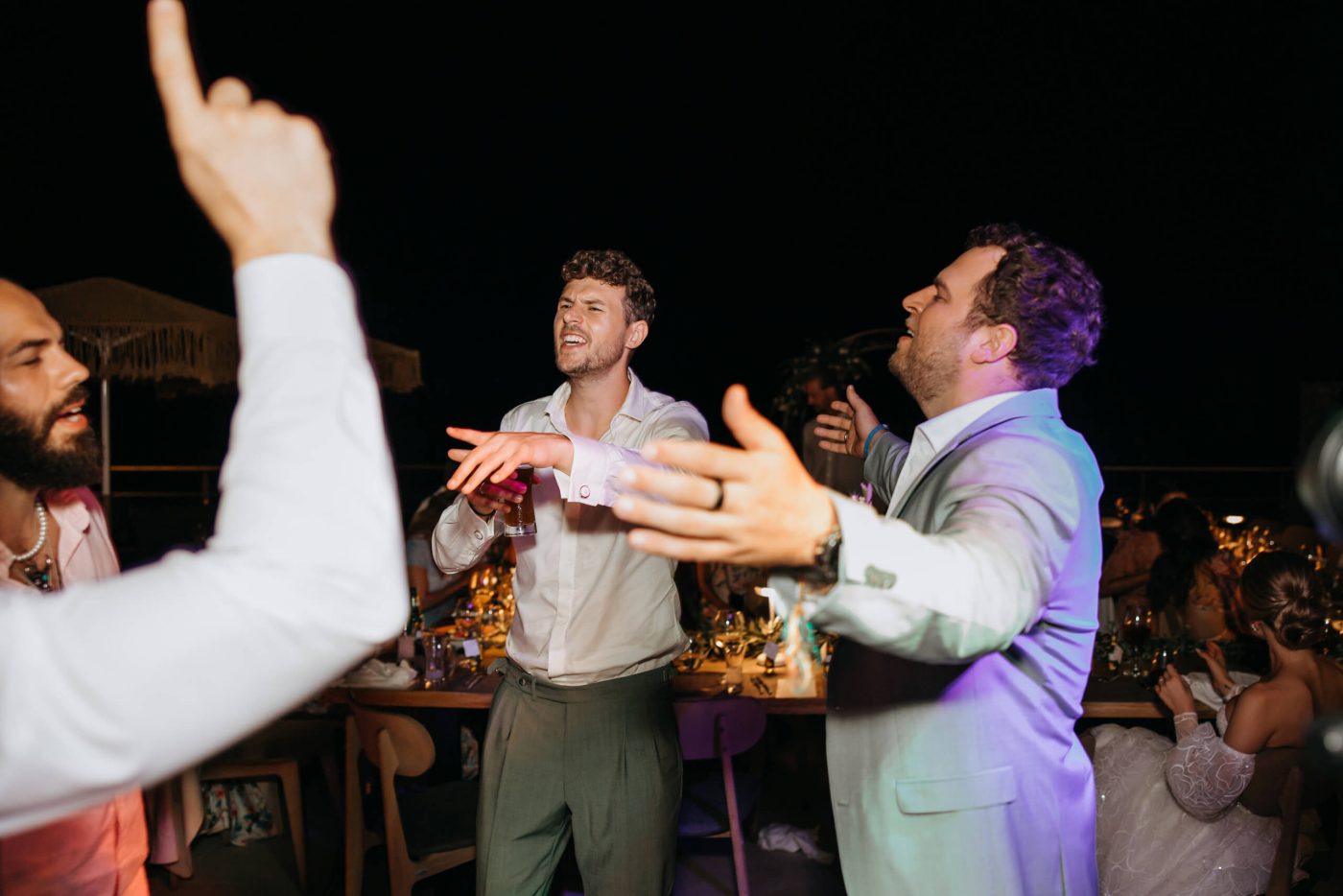 As the sun dipped below the horizon, guests enjoyed a seaside dinner, where the sound of gentle waves and Greek melodies created an unforgettable atmosphere. Laughter, heartfelt toasts, and traditional Greek dances filled the night, turning this wedding into a true celebration of love and culture.