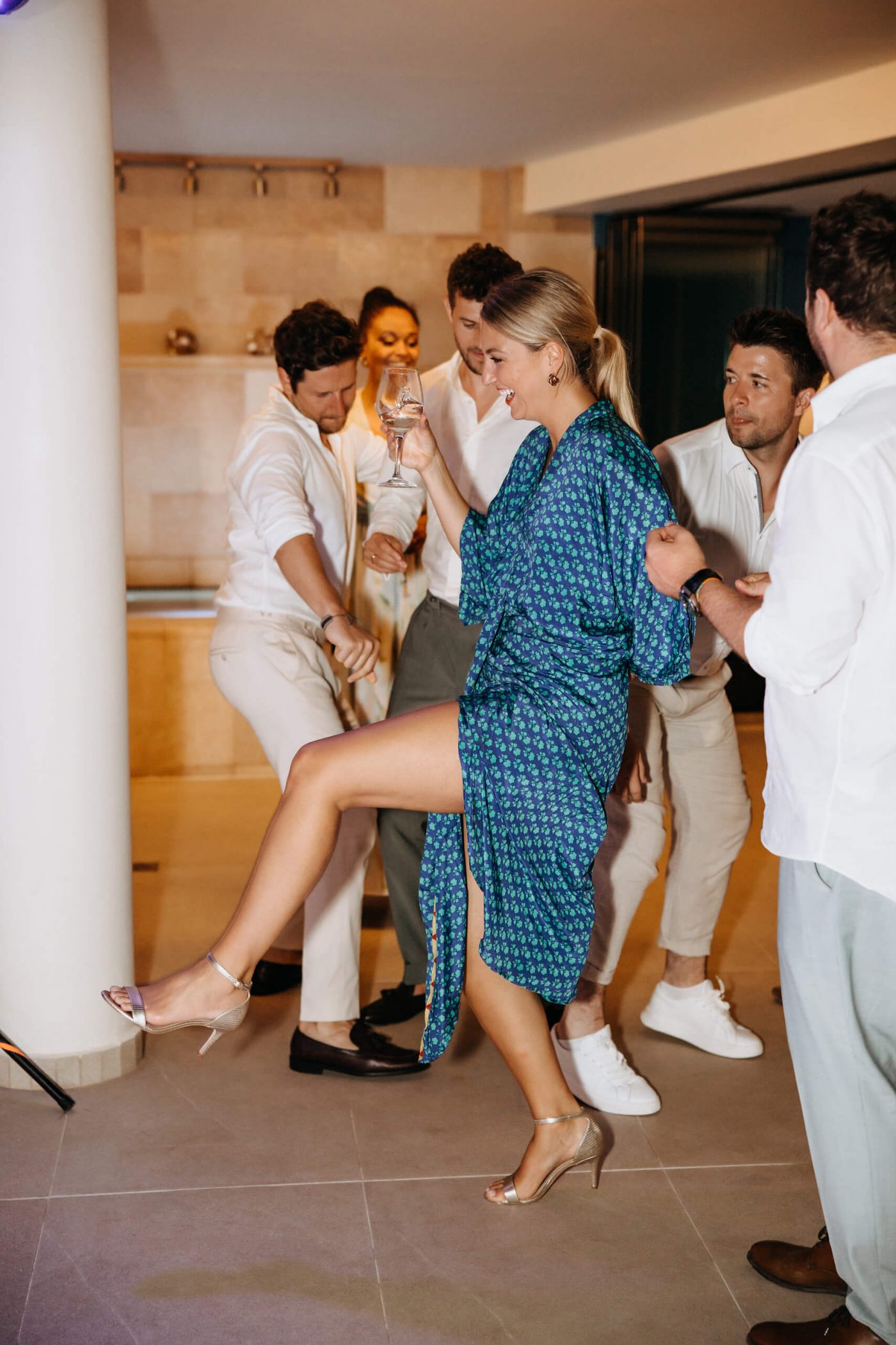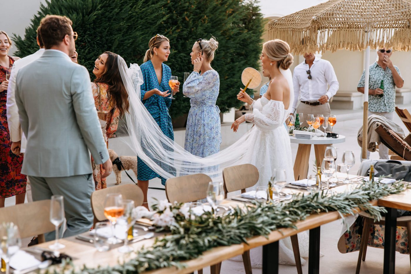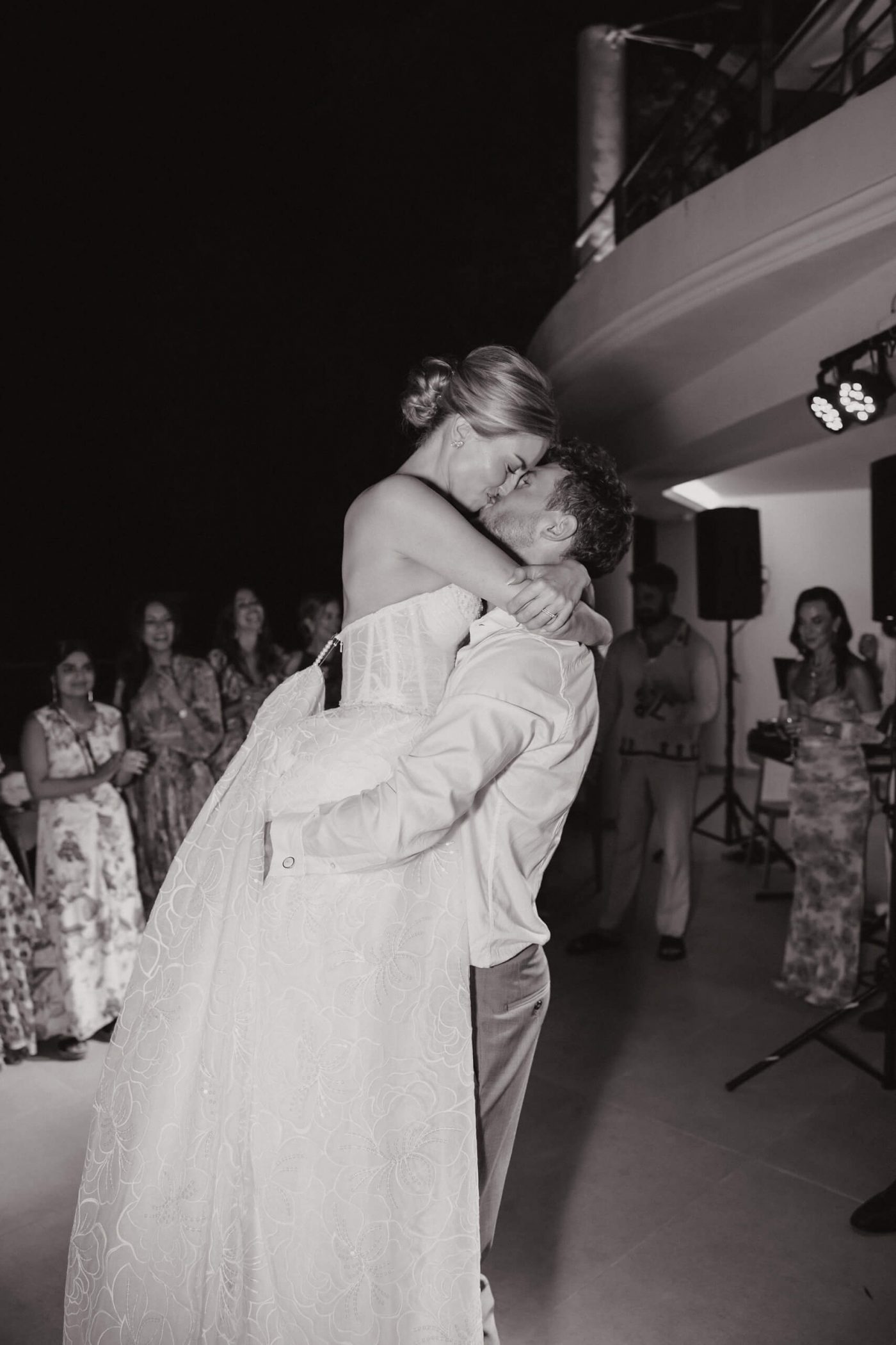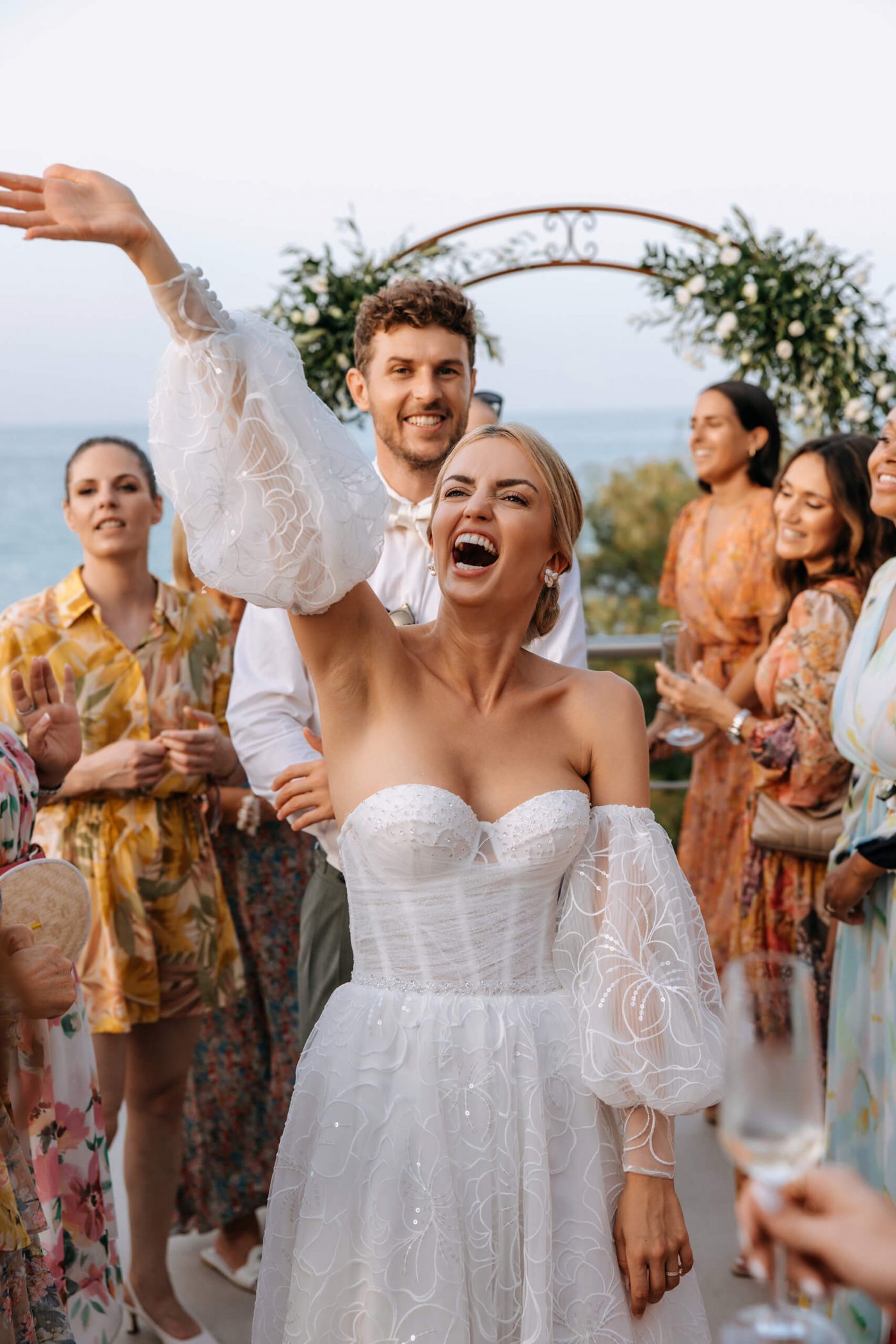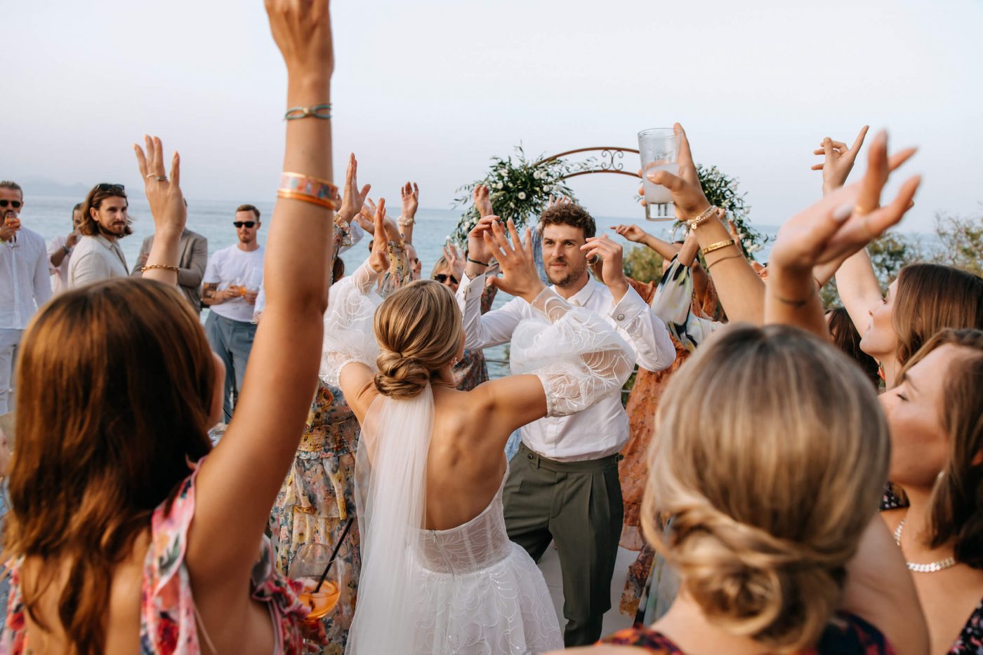 As the sun dipped below the horizon, guests enjoyed a seaside dinner, where the sound of gentle waves and Greek melodies created an unforgettable atmosphere. Laughter, heartfelt toasts, and traditional Greek dances filled the night, turning this wedding into a true celebration of love and culture.