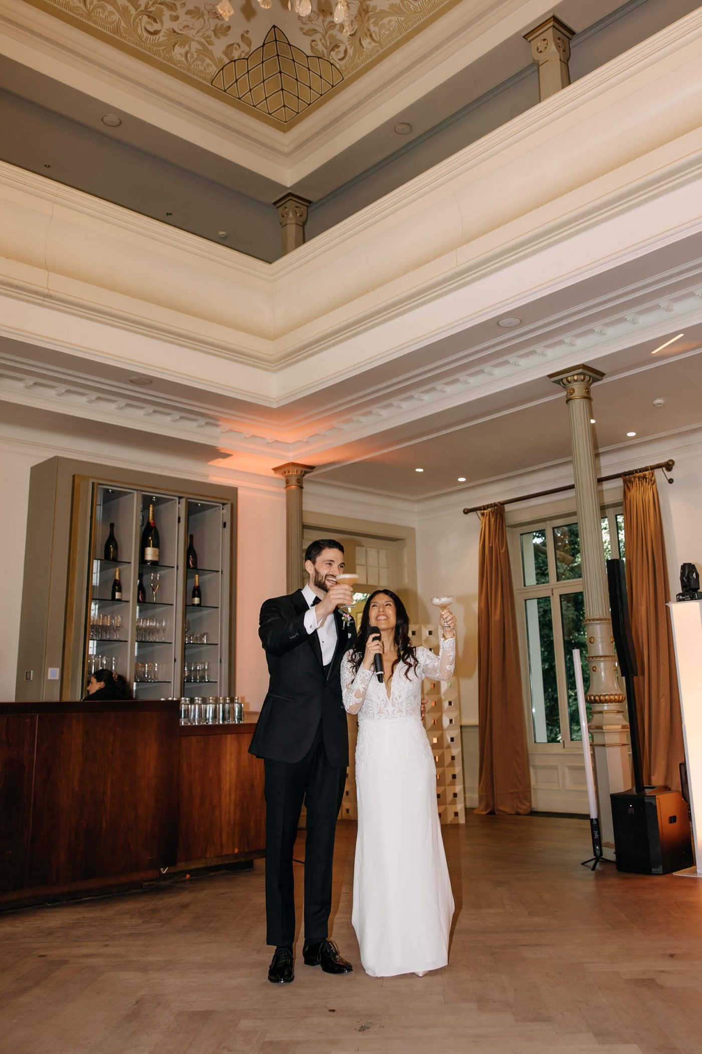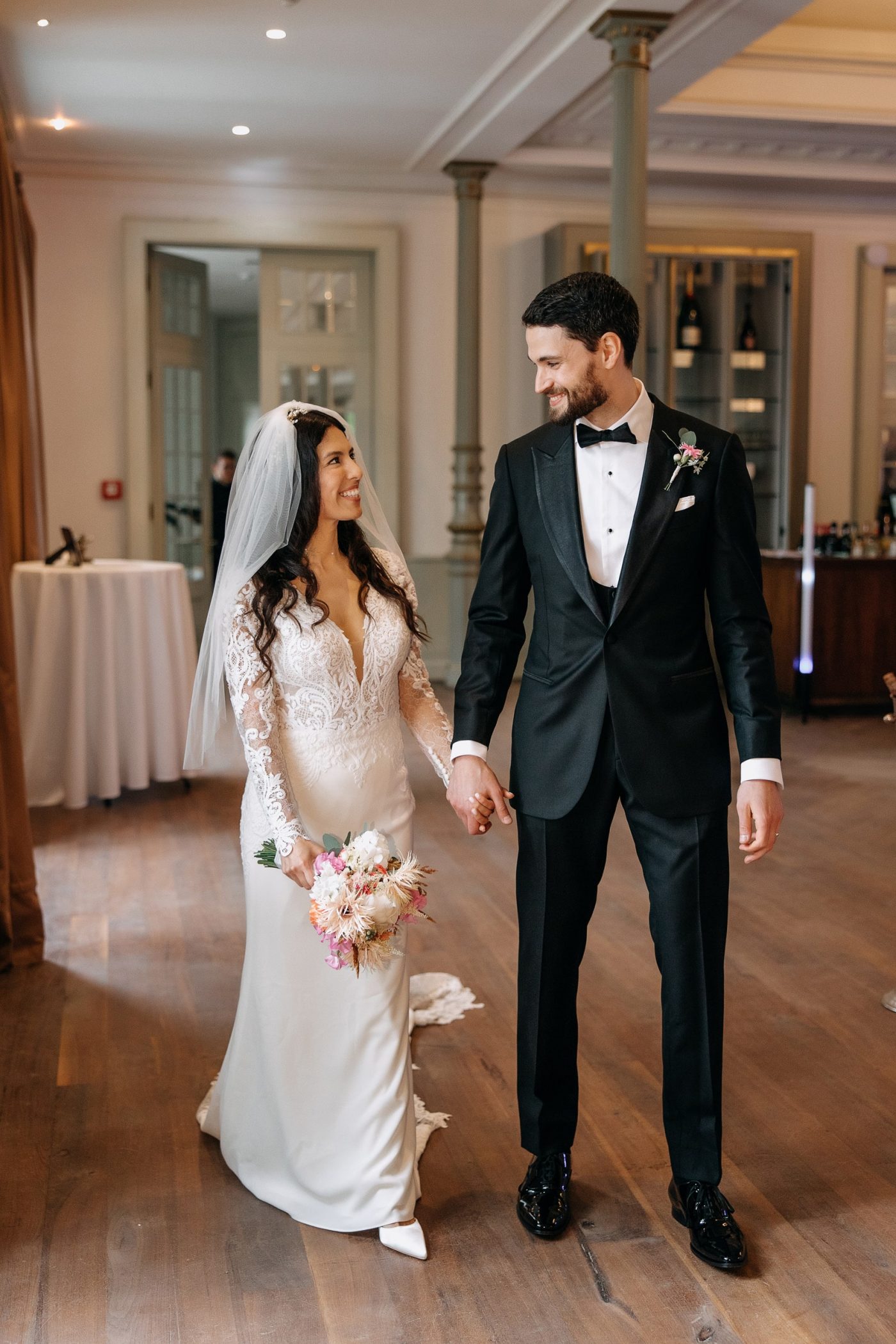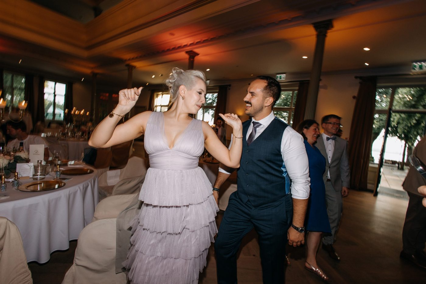 Leon and Giannina’s celebration was the epitome of effortless elegance. Their love story unfolded beautifully against the venue’s timeless charm, from the emotional walk down the aisle to the heartfelt vows exchanged with the Elbe as their witness. The reception was a harmonious blend of sophistication and warmth, with the venue’s elegant interiors creating the perfect space for laughter, dancing, and joyous toasts.