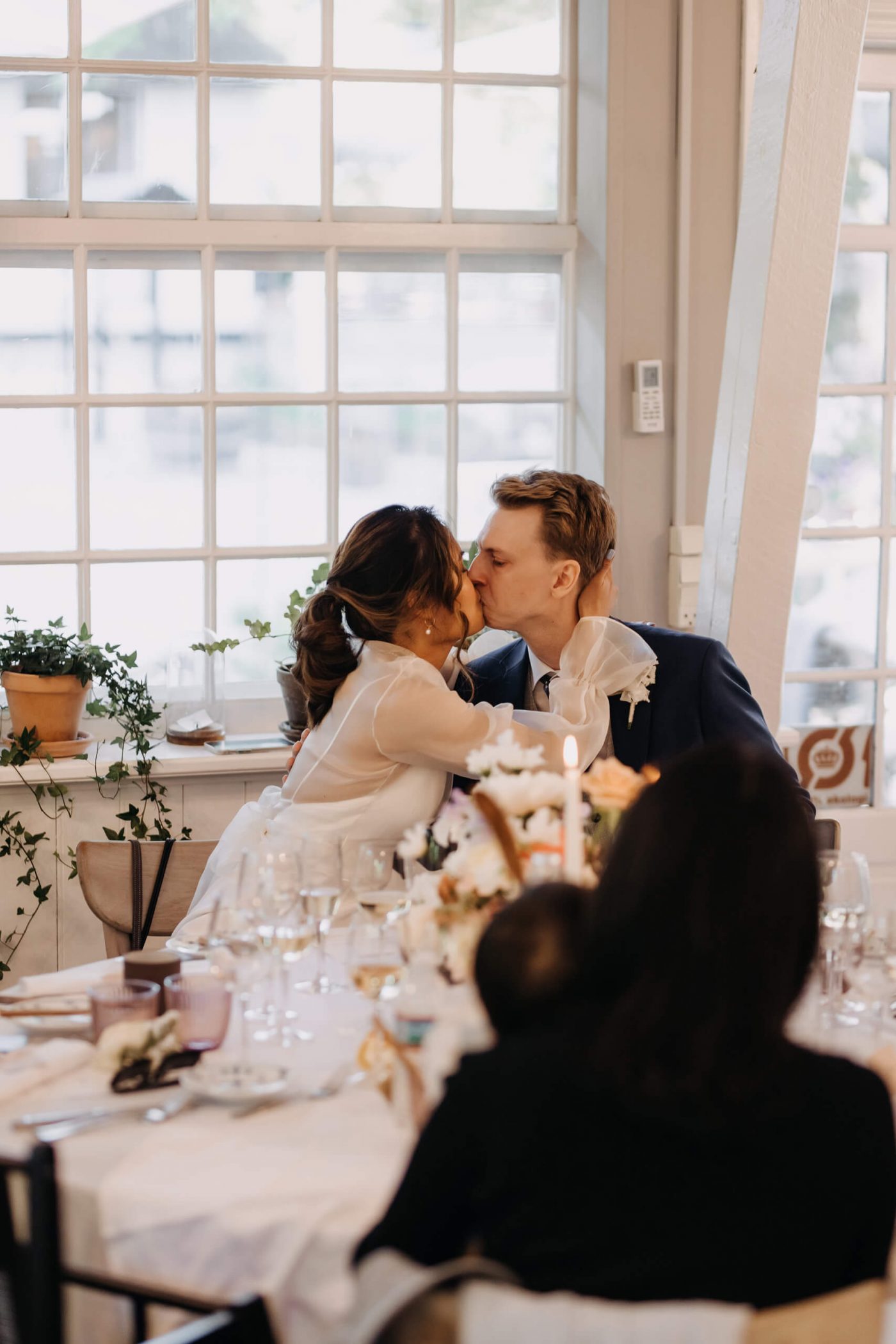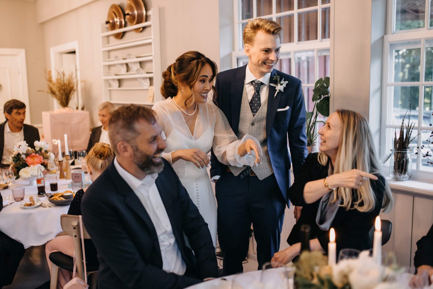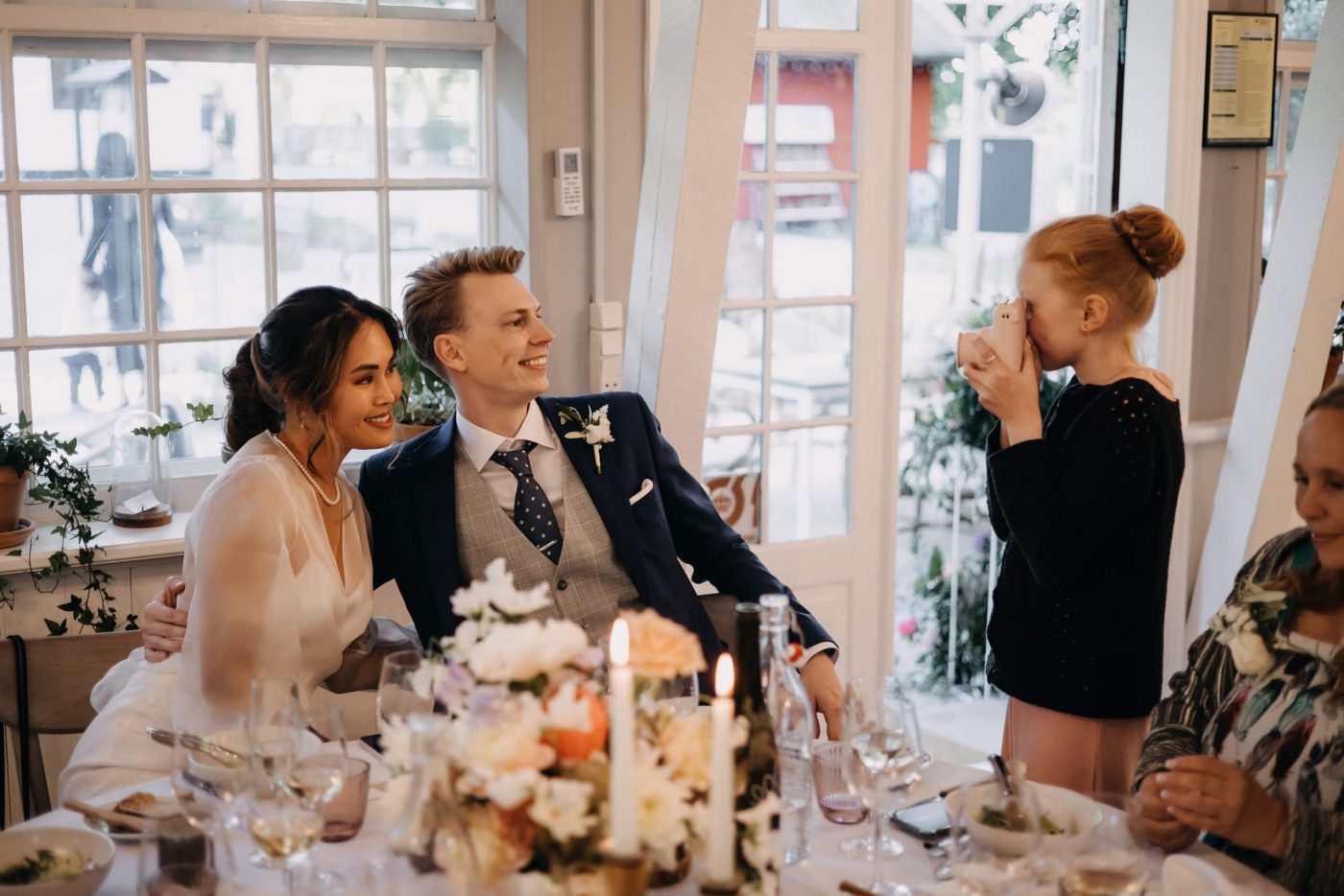 The ceremony swiftly comes to an end, and the happy couple emerges from the church, where their guests await to congratulate them. After a brief photo session, we hasten to the cozy Restaurant Herthadalen, where the reception will take place. Join us in experiencing this exceptionally romantic and emotional story.