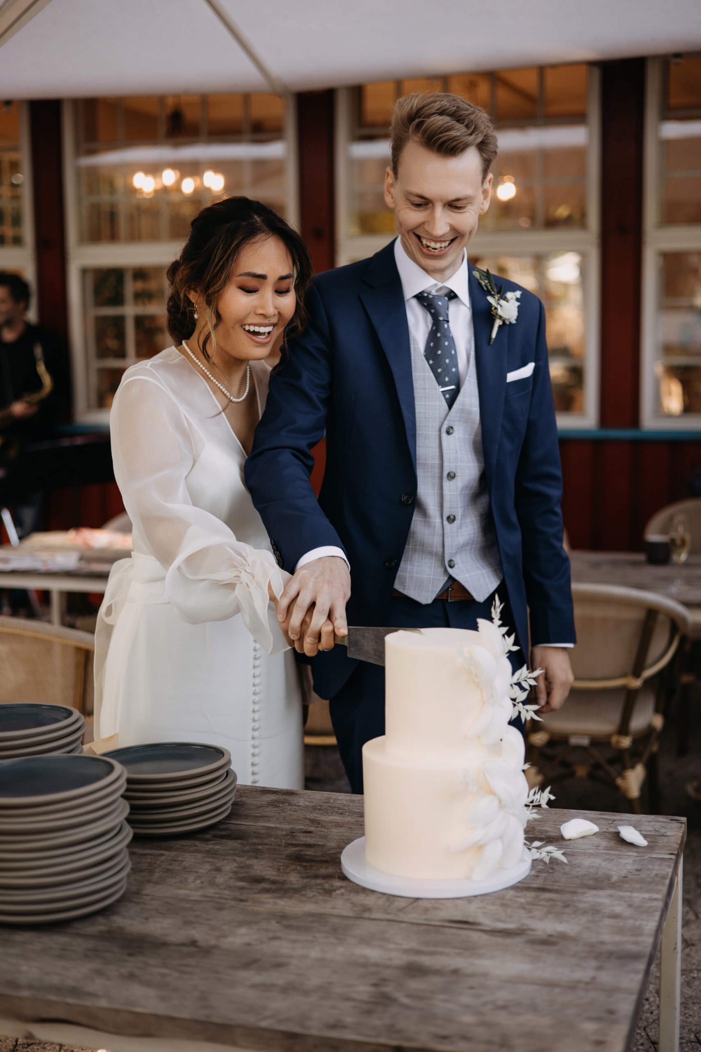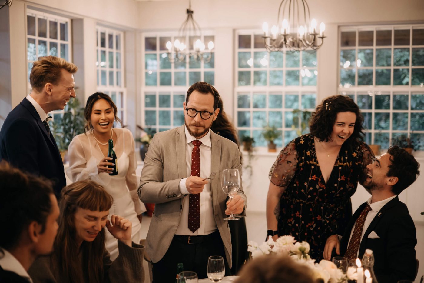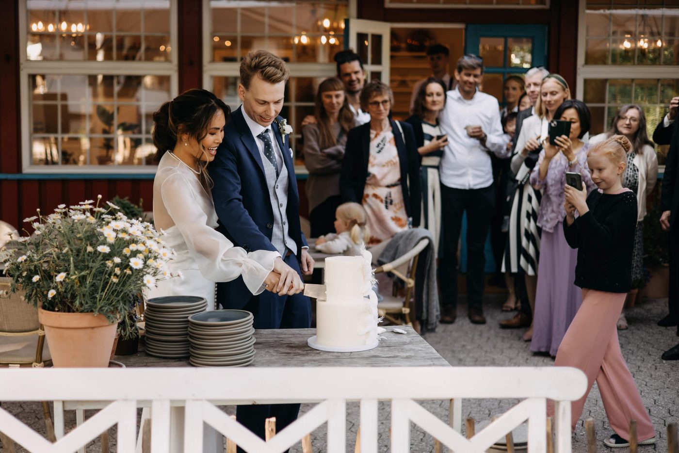 The ceremony swiftly comes to an end, and the happy couple emerges from the church, where their guests await to congratulate them. After a brief photo session, we hasten to the cozy Restaurant Herthadalen, where the reception will take place. Join us in experiencing this exceptionally romantic and emotional story.
