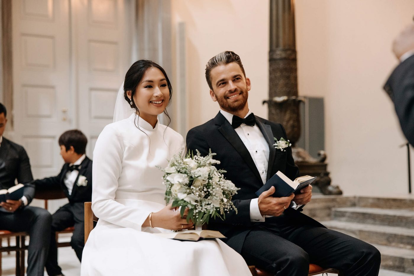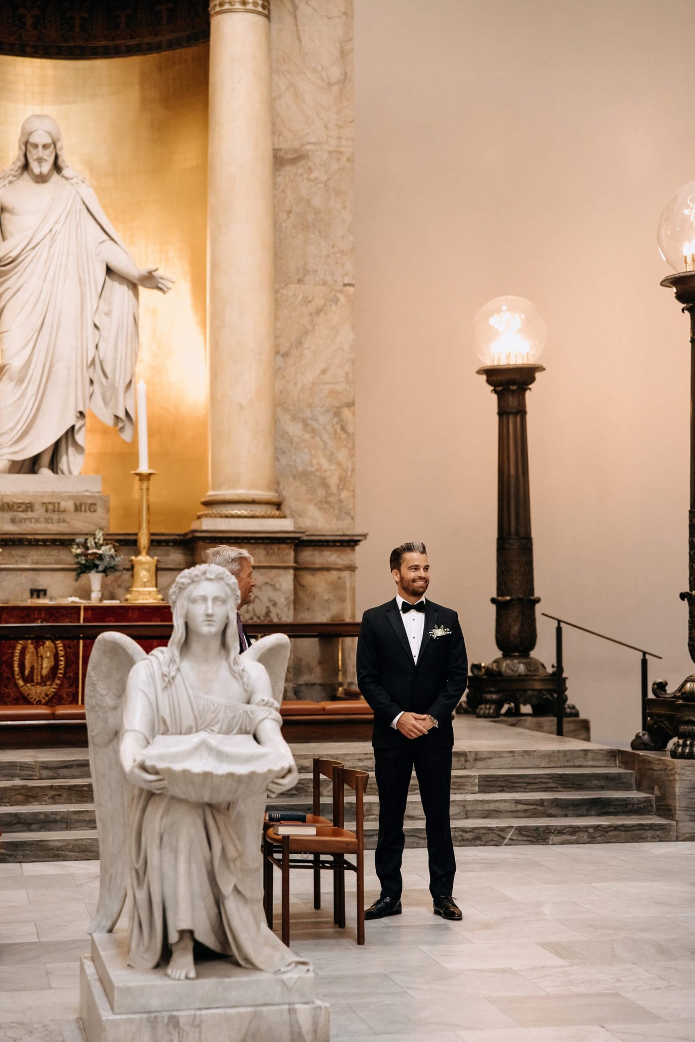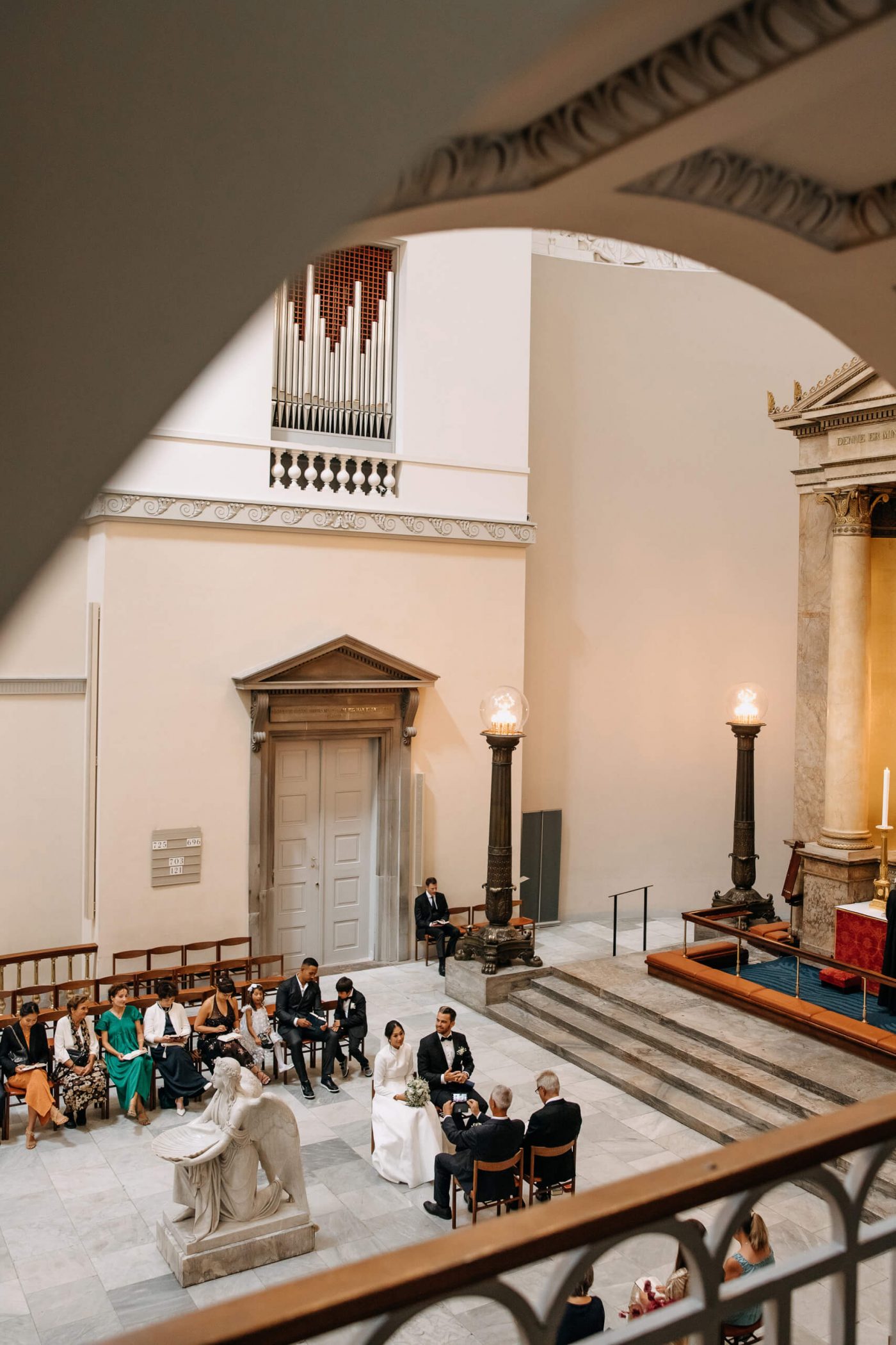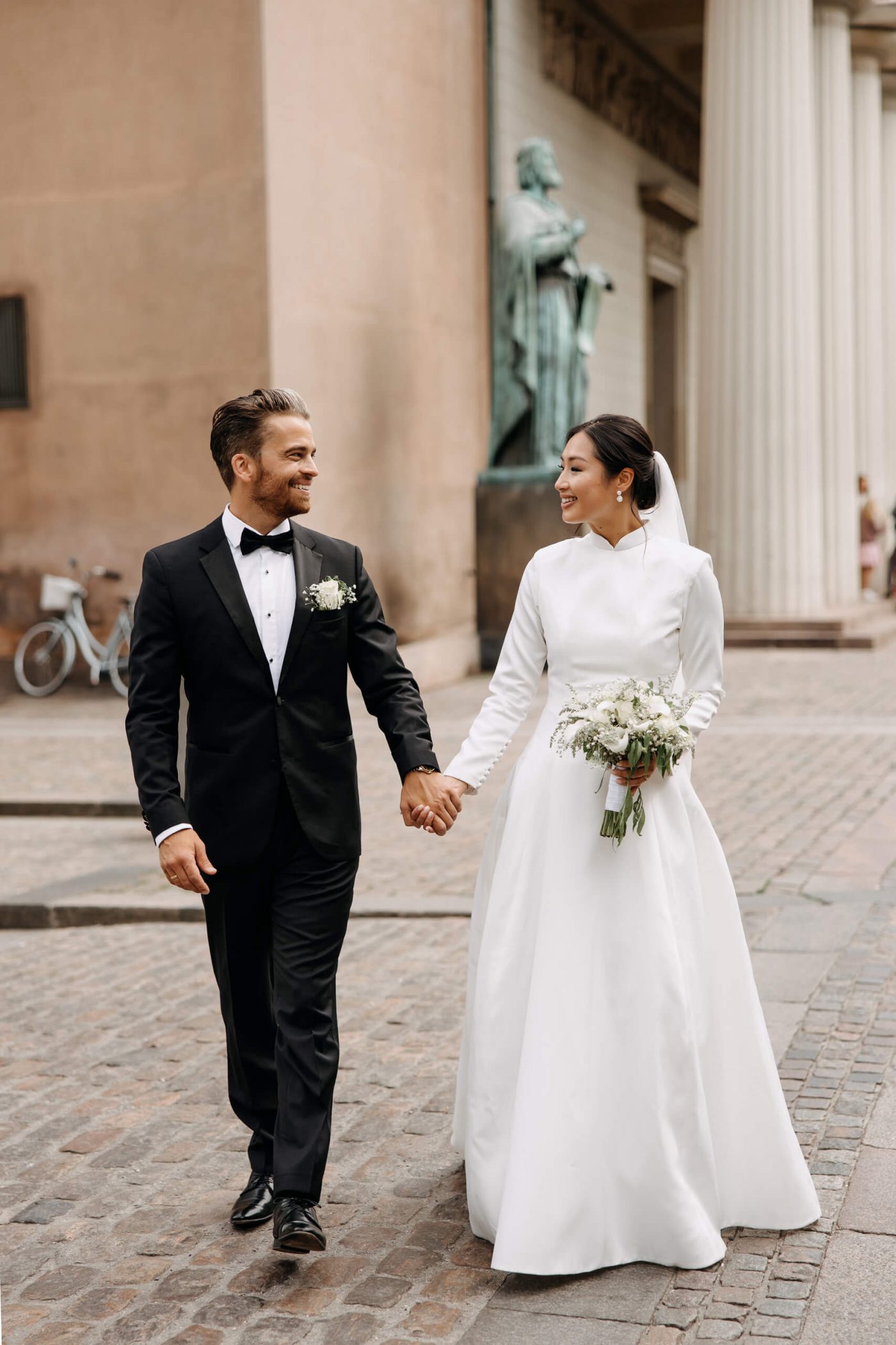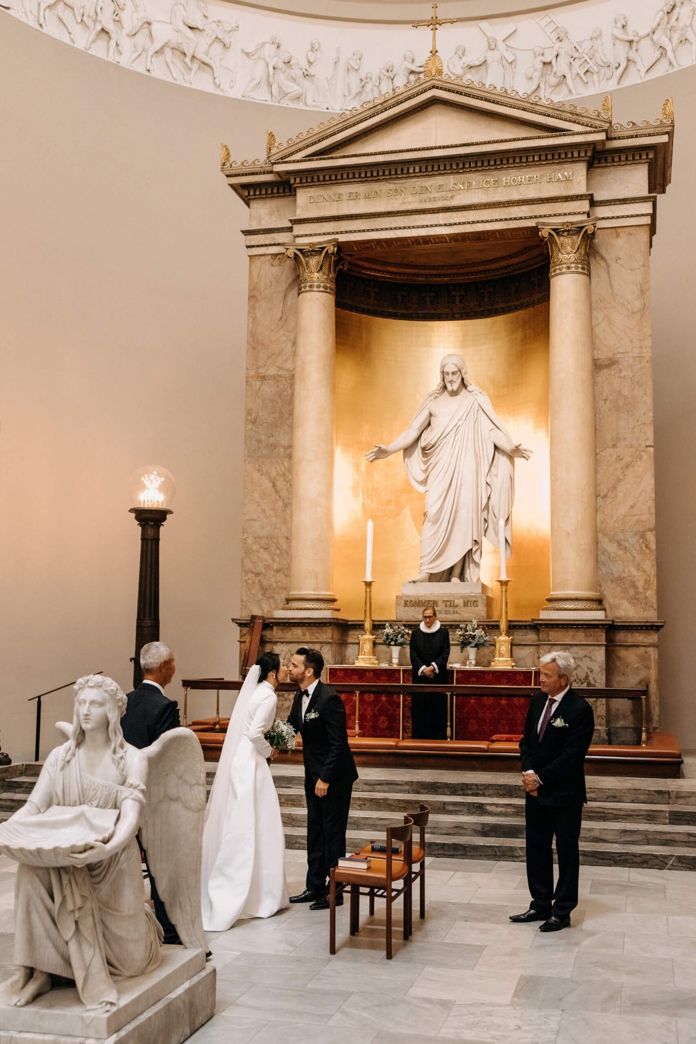 In the heart of Copenhagen, beneath the grand columns of Vor Frue Kirke, Daniel & Mi stood together, ready to begin their new chapter. There was something magical about that moment—inside the historic church, time seemed to pause, letting their love take center stage.