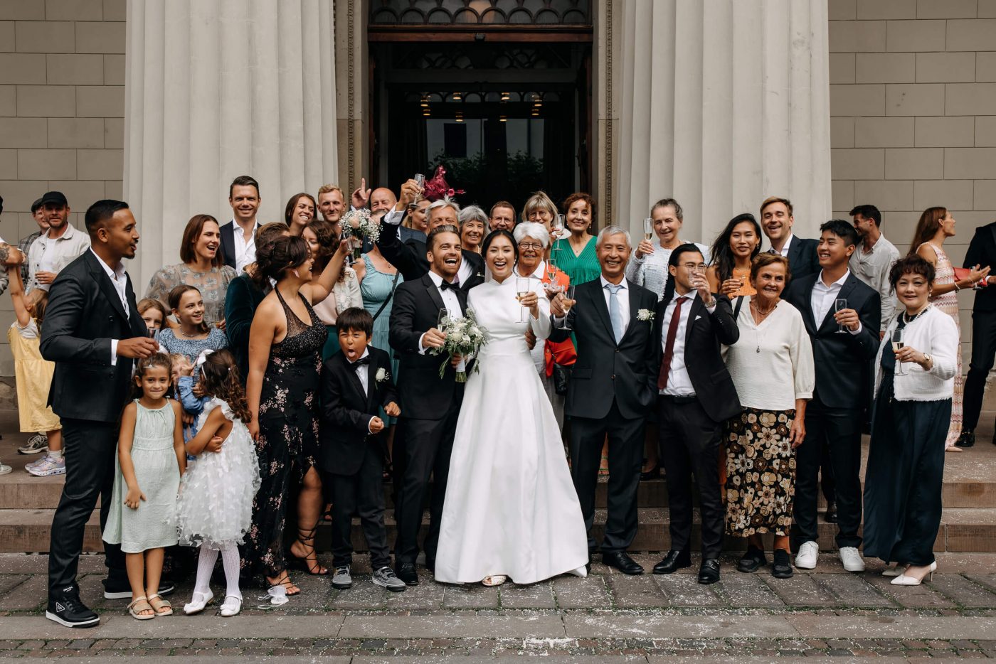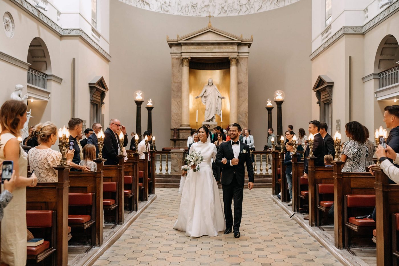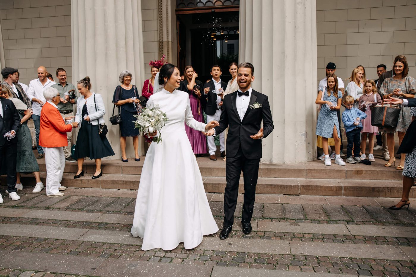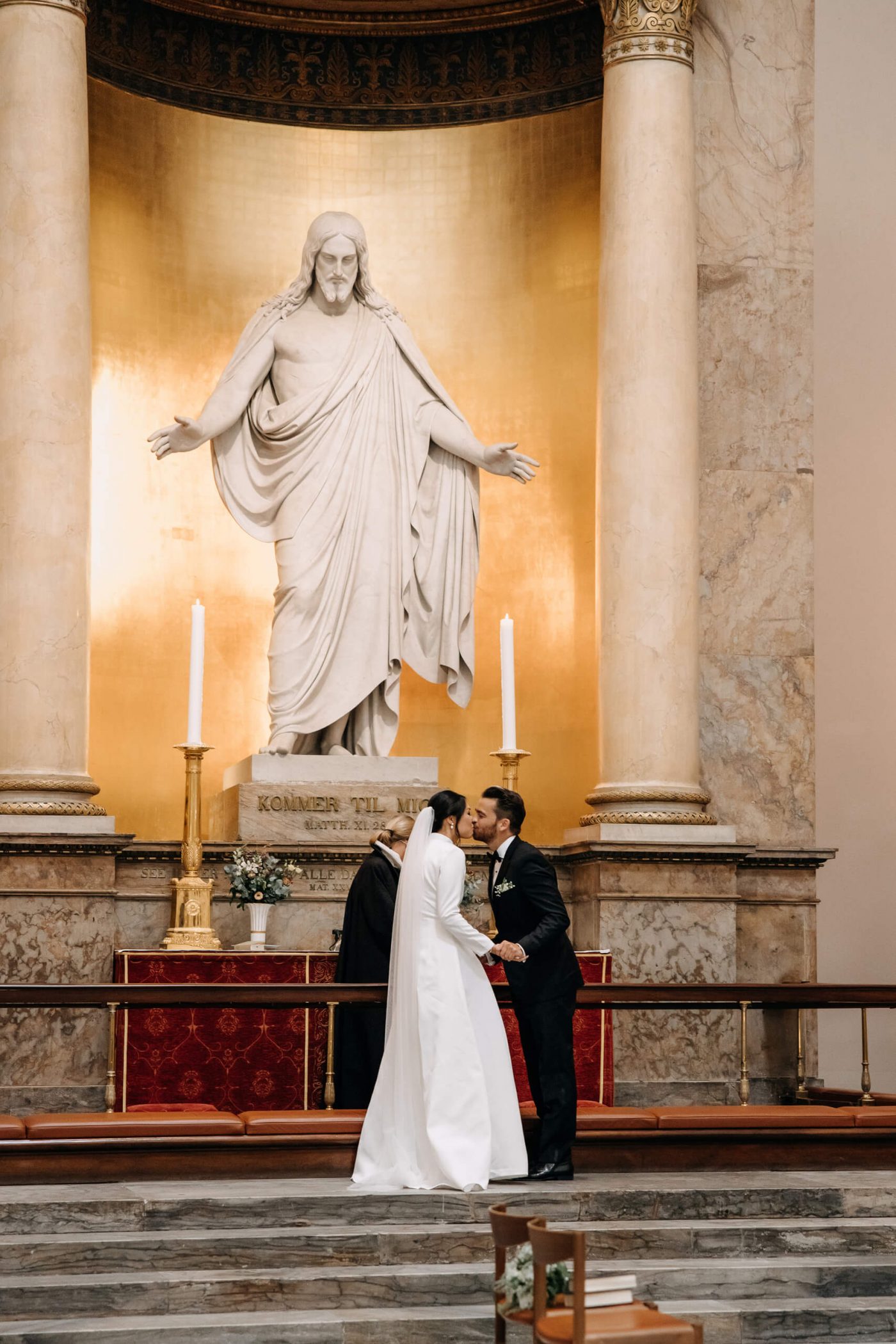 In the heart of Copenhagen, beneath the grand columns of Vor Frue Kirke, Daniel & Mi stood together, ready to begin their new chapter. There was something magical about that moment—inside the historic church, time seemed to pause, letting their love take center stage.