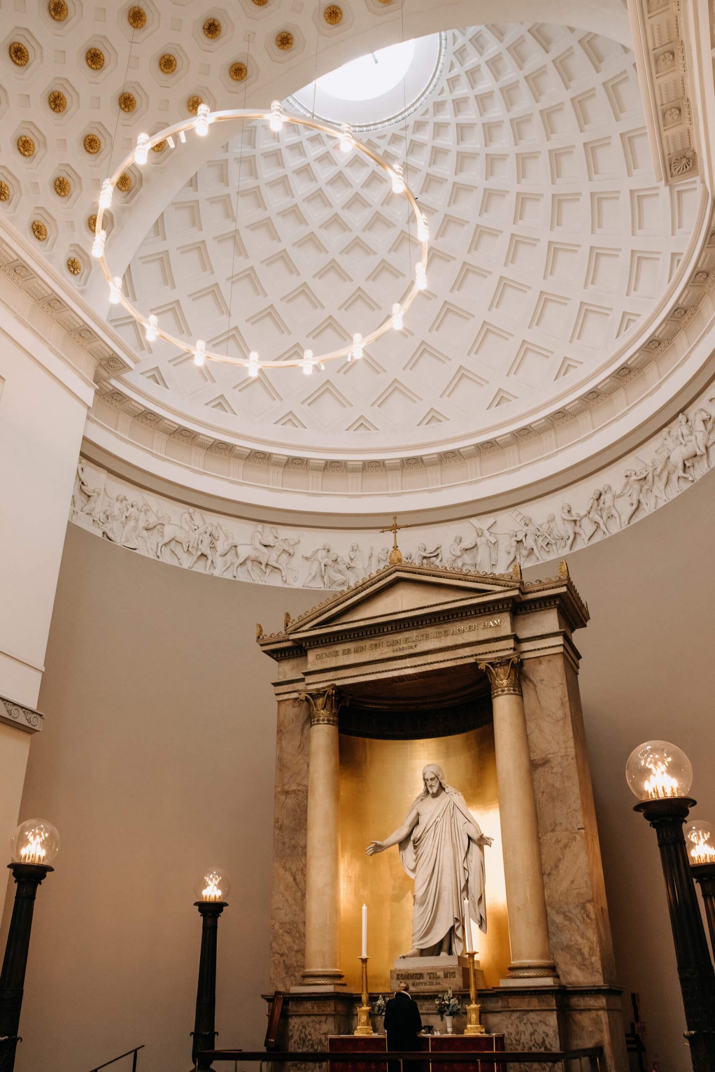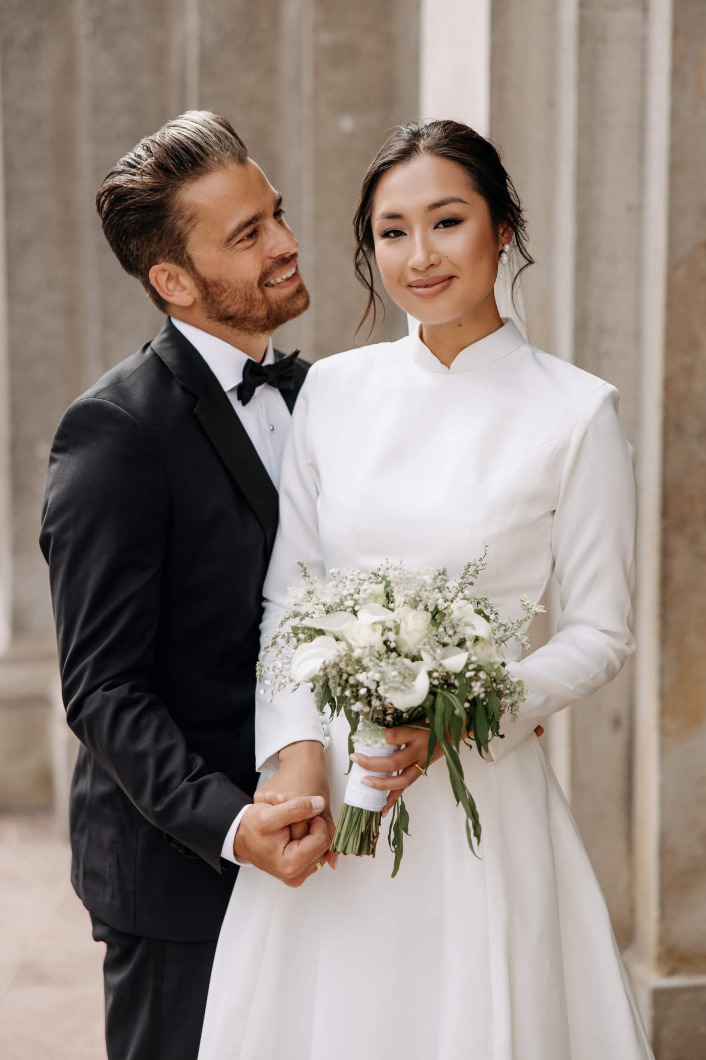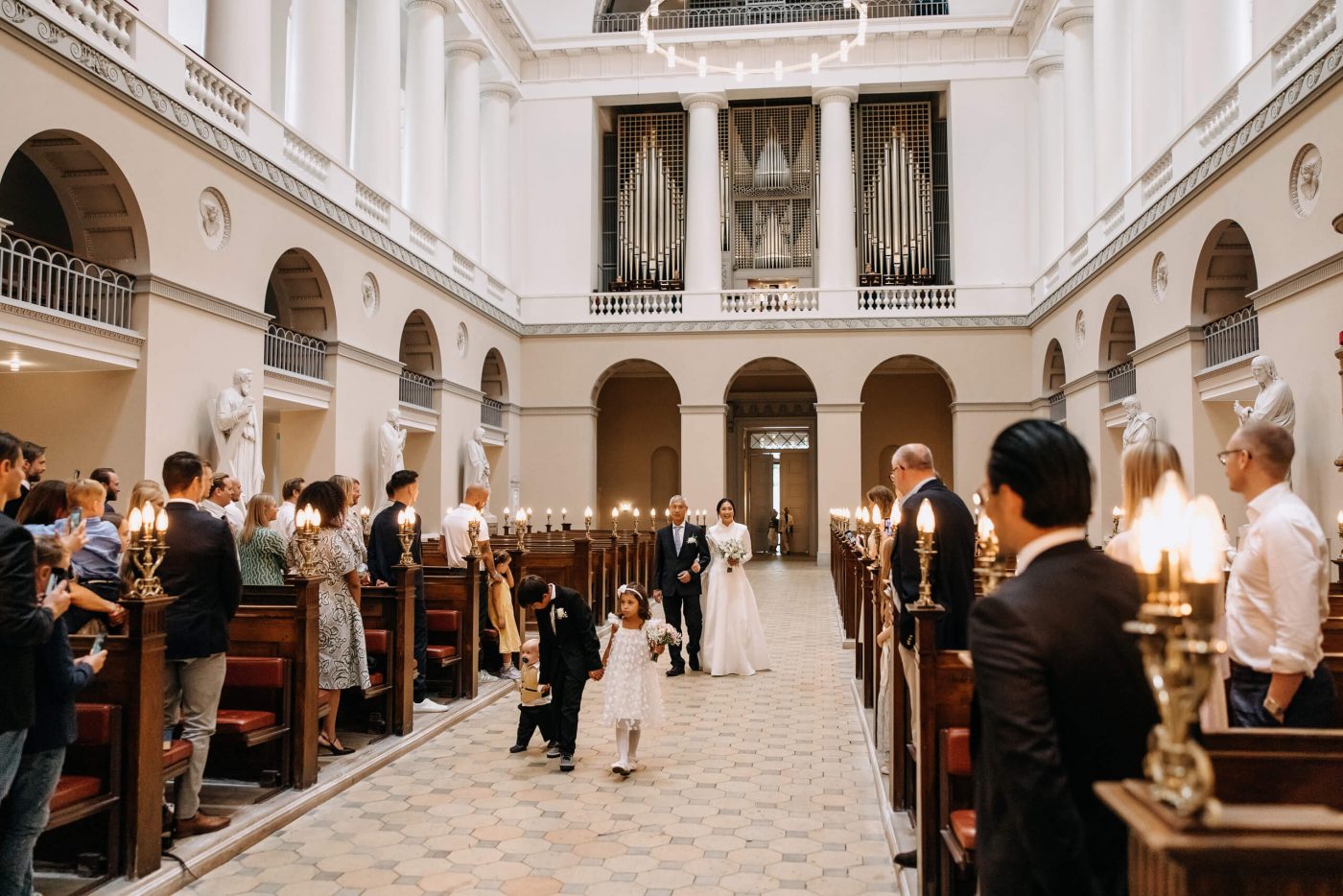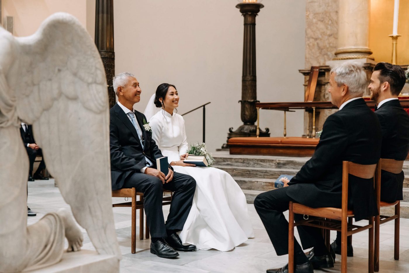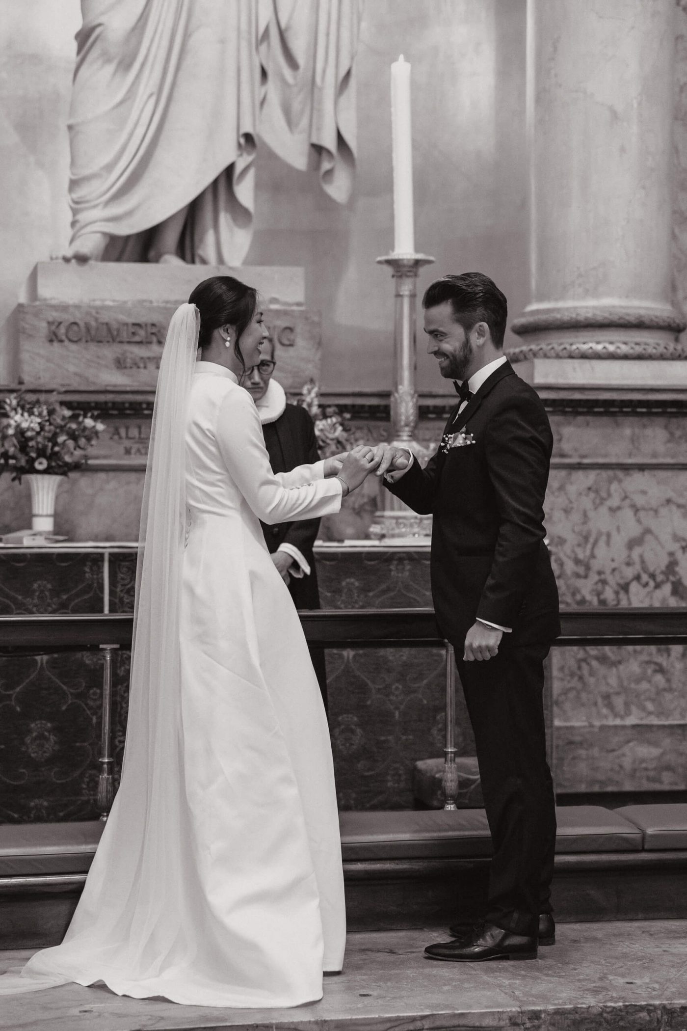 In the heart of Copenhagen, beneath the grand columns of Vor Frue Kirke, Daniel & Mi stood together, ready to begin their new chapter. There was something magical about that moment—inside the historic church, time seemed to pause, letting their love take center stage.