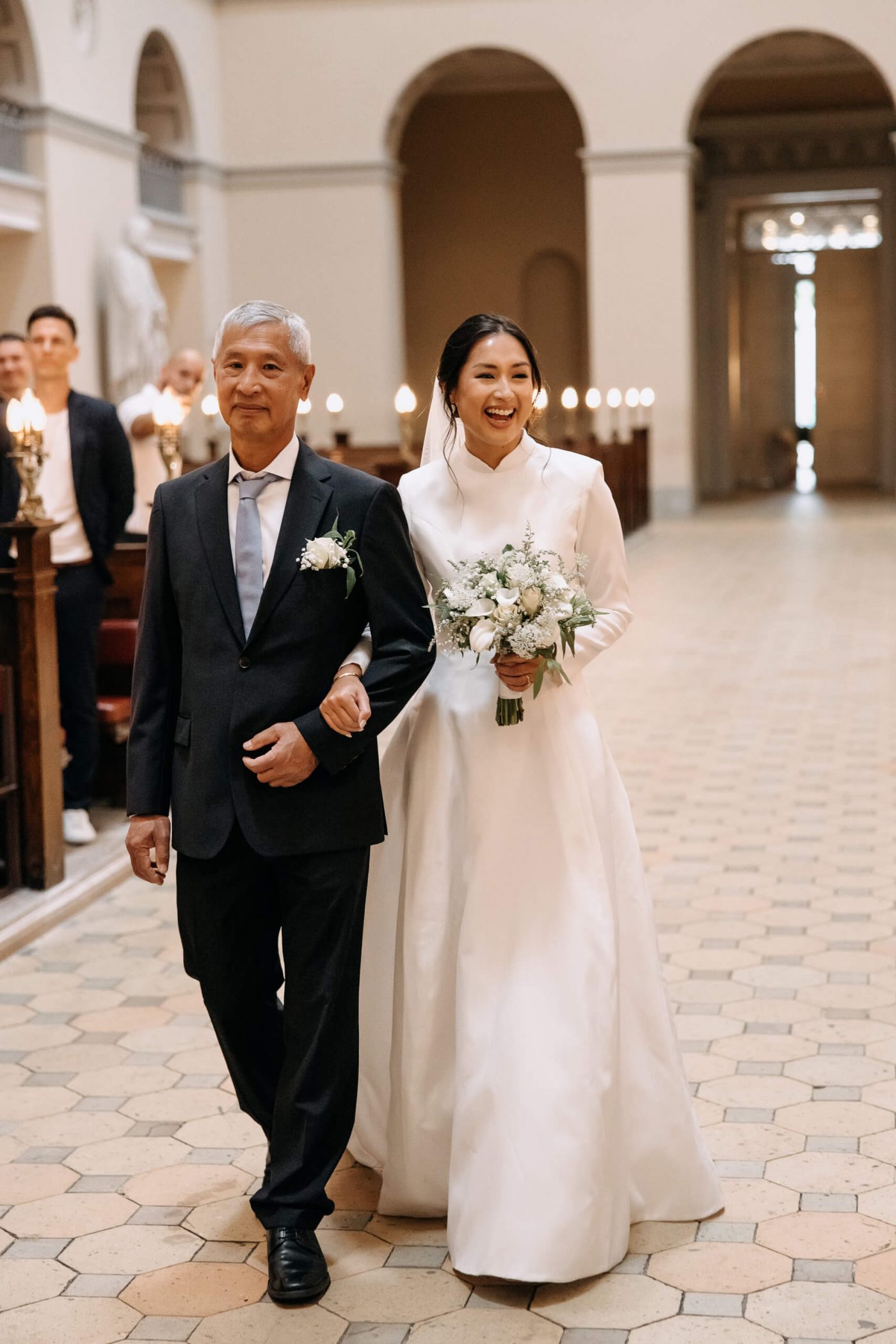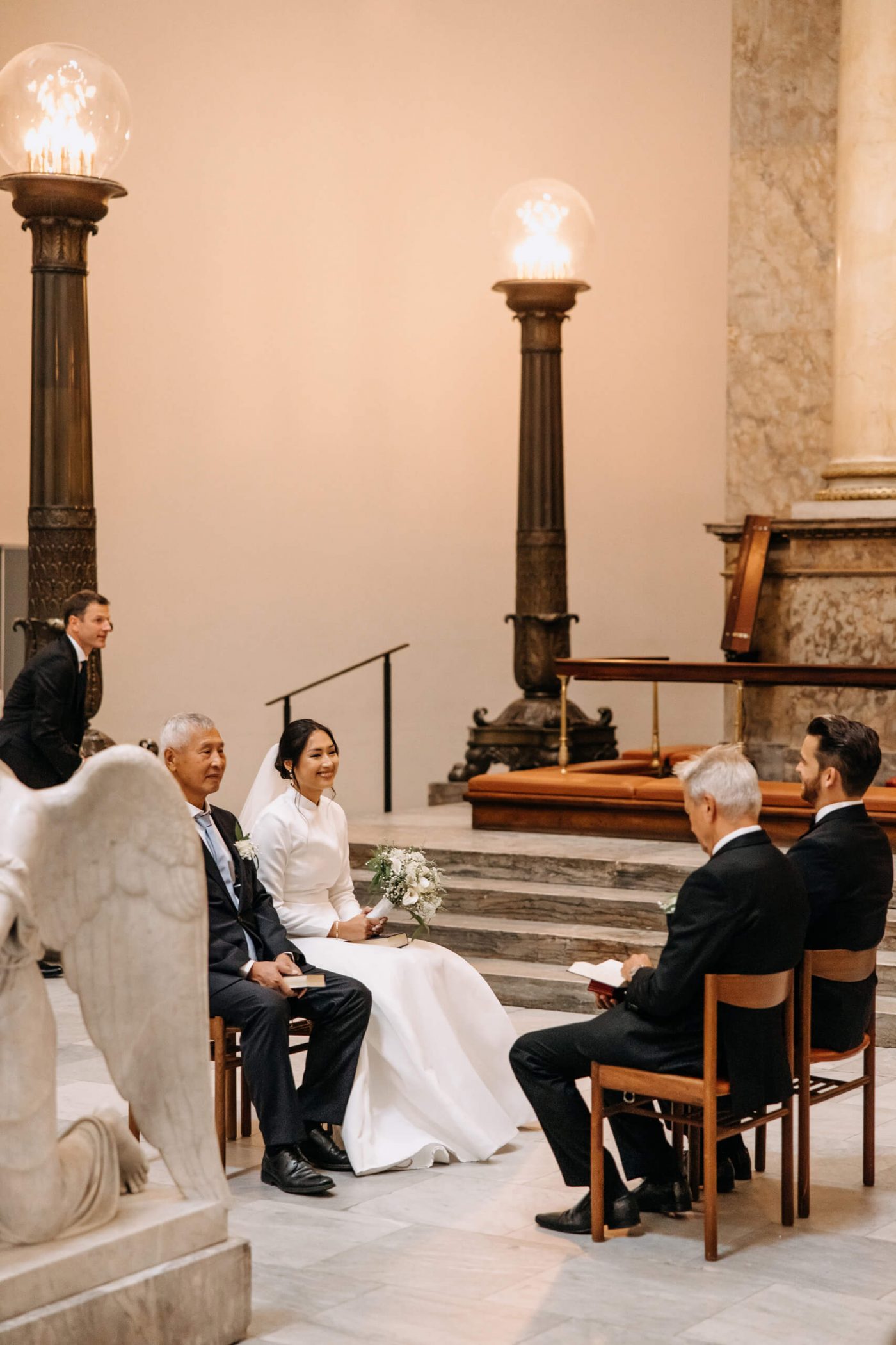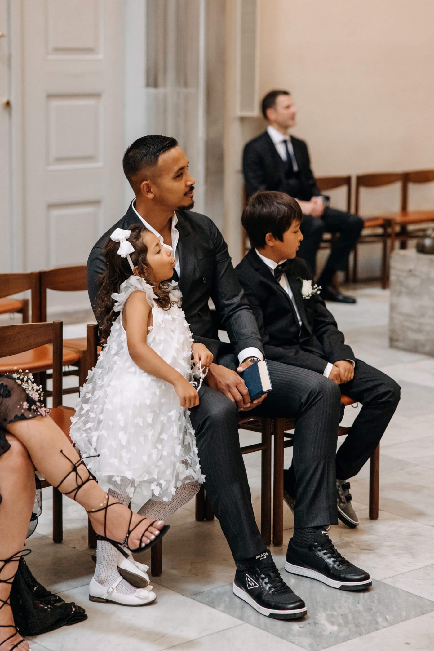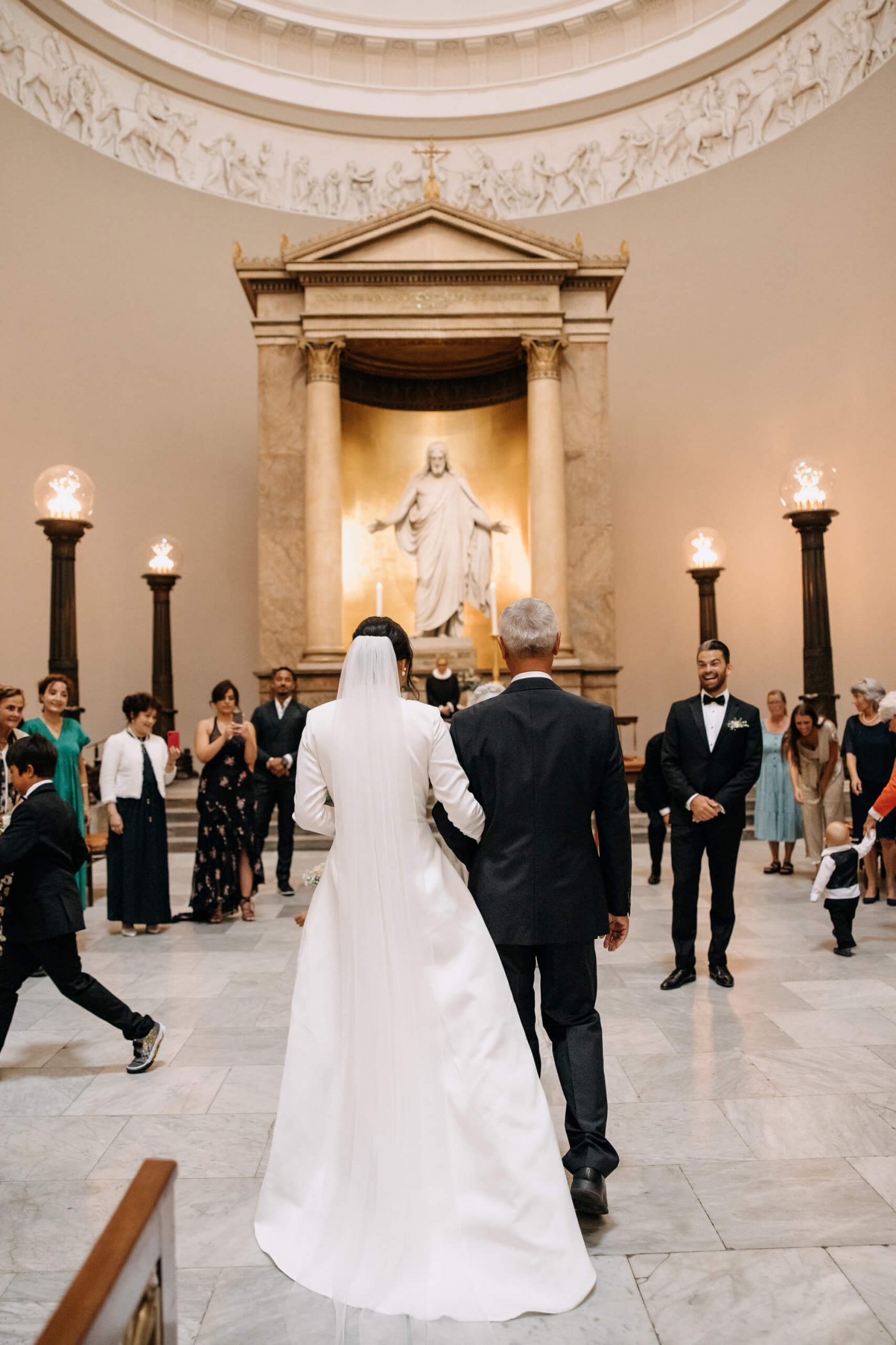 In the heart of Copenhagen, beneath the grand columns of Vor Frue Kirke, Daniel & Mi stood together, ready to begin their new chapter. There was something magical about that moment—inside the historic church, time seemed to pause, letting their love take center stage.
