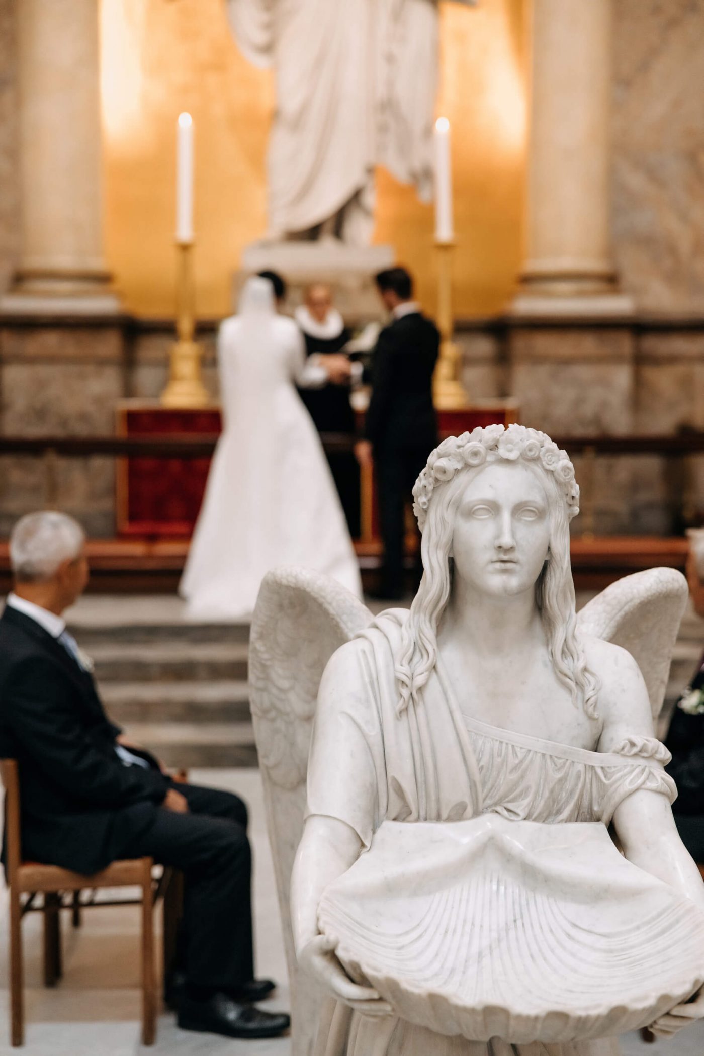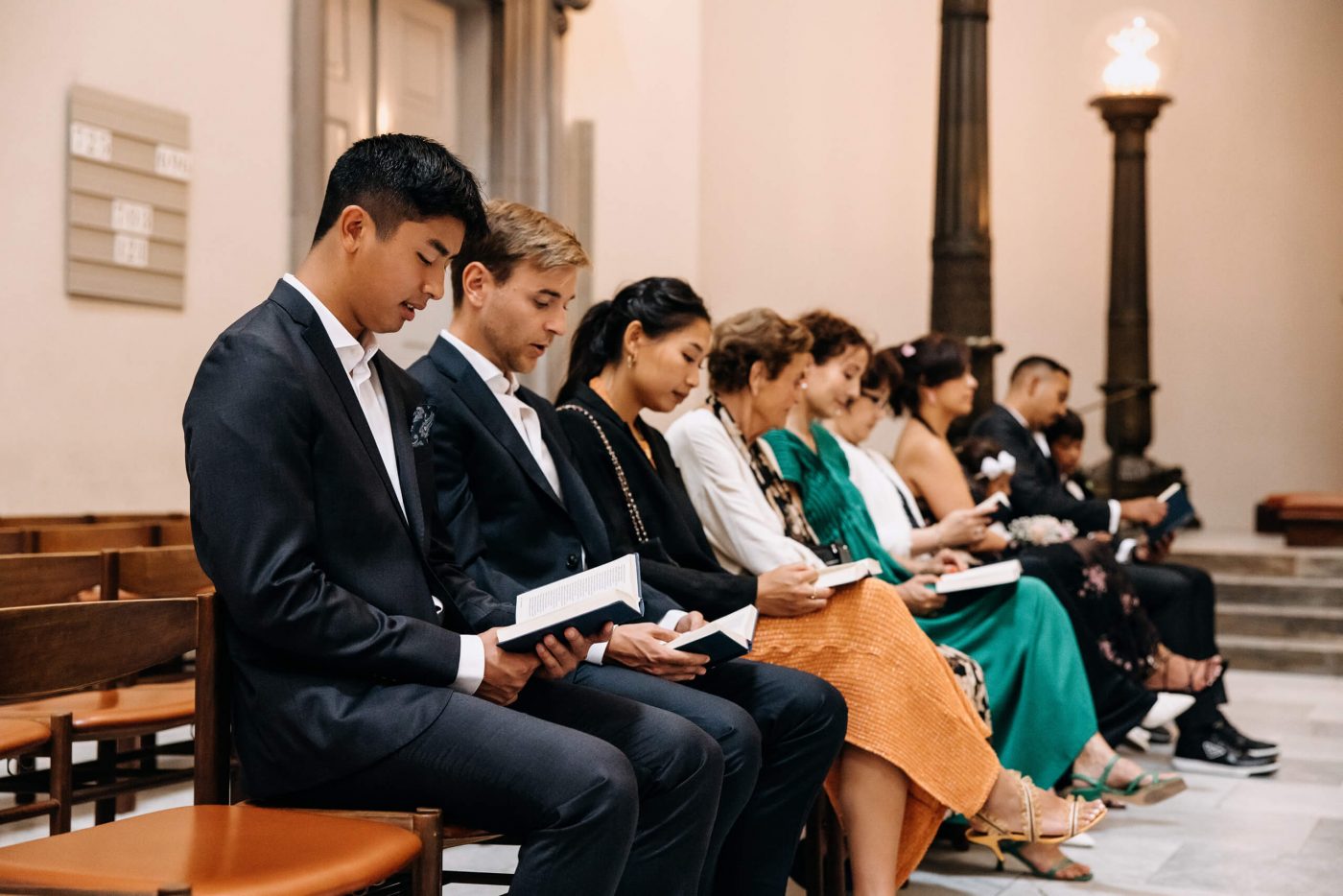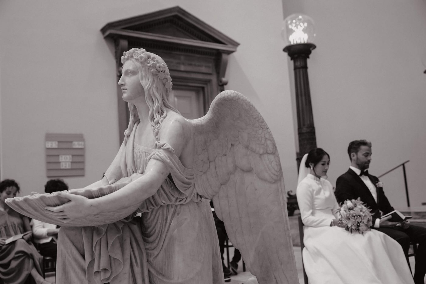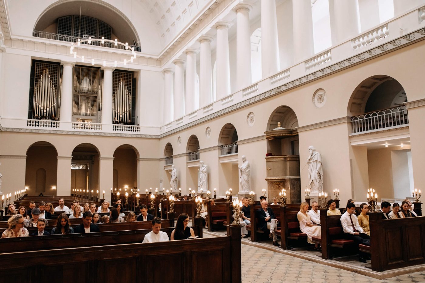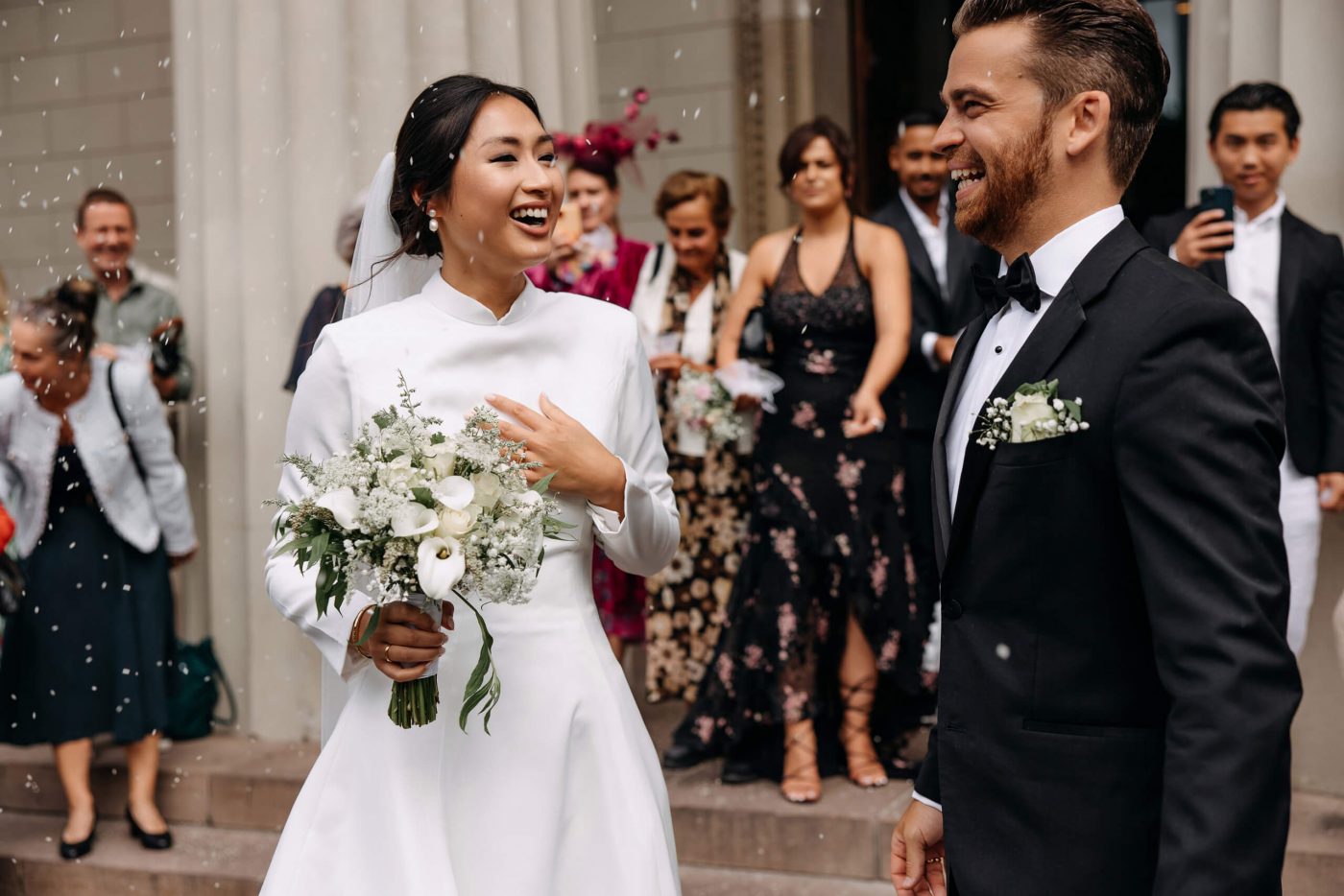 In the heart of Copenhagen, beneath the grand columns of Vor Frue Kirke, Daniel & Mi stood together, ready to begin their new chapter. There was something magical about that moment—inside the historic church, time seemed to pause, letting their love take center stage.