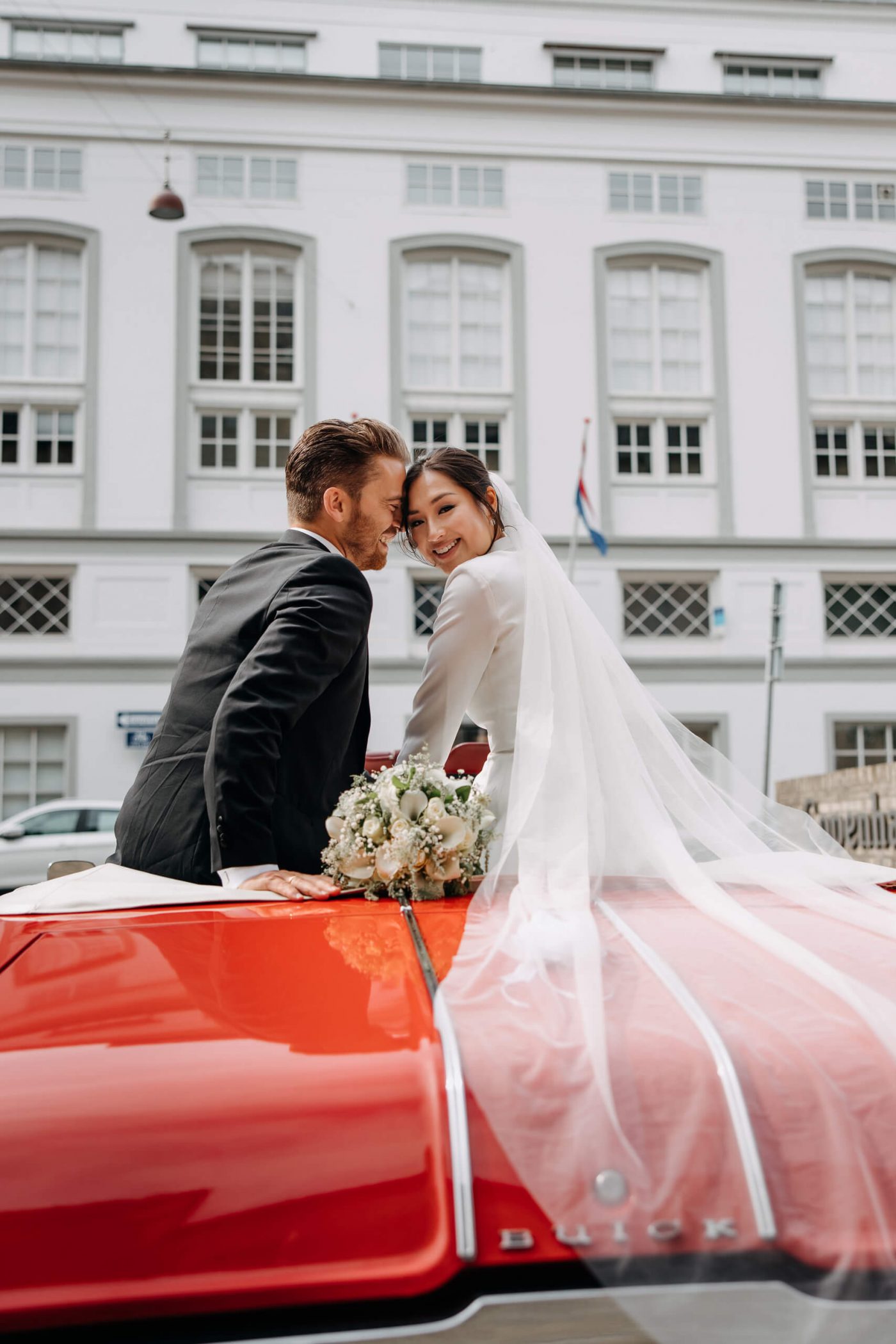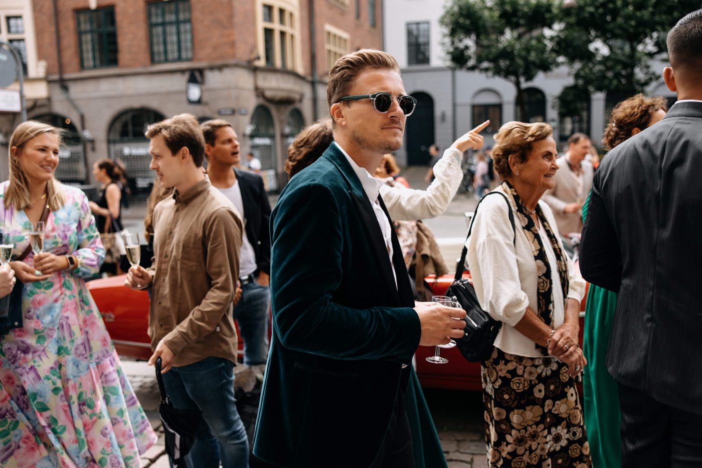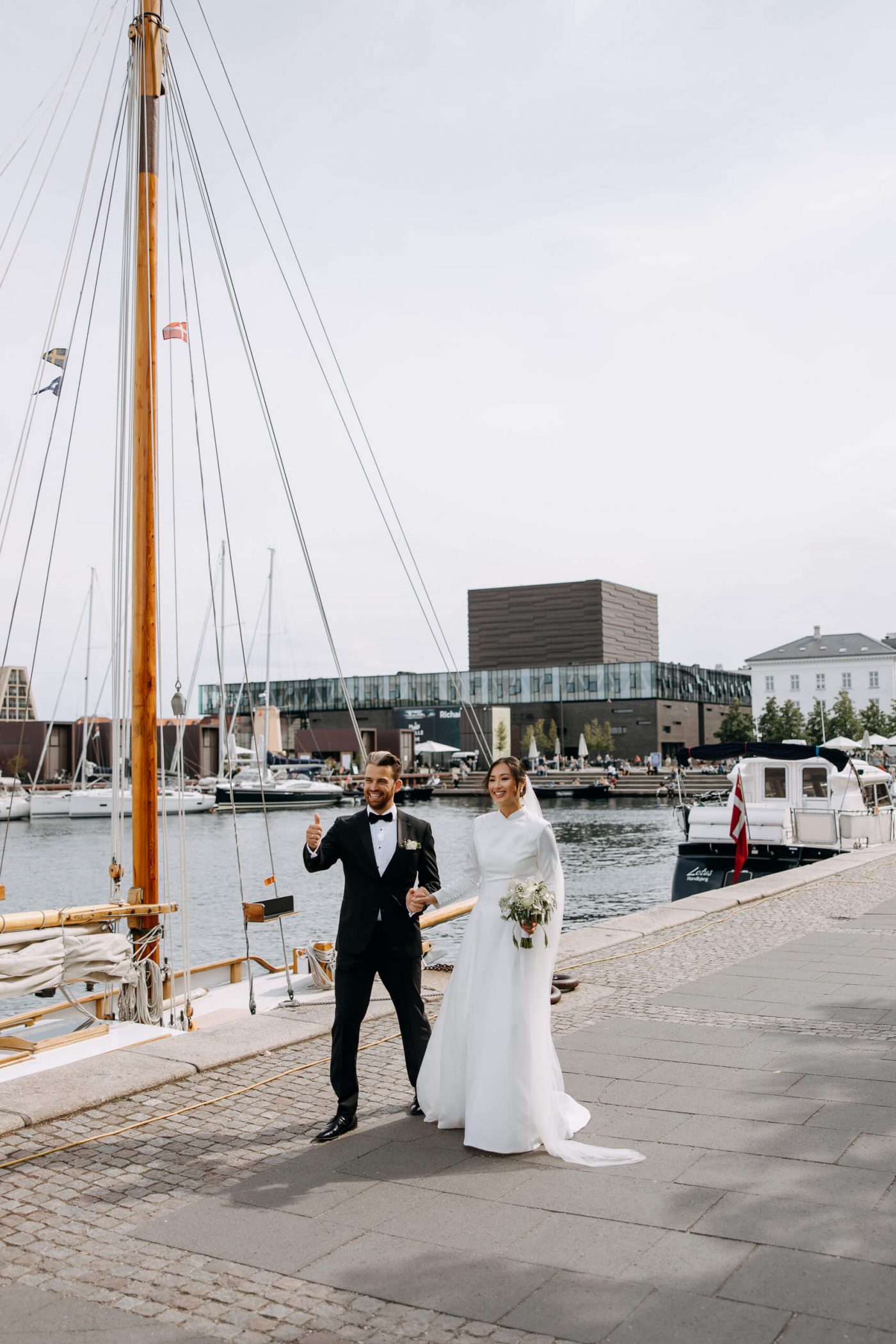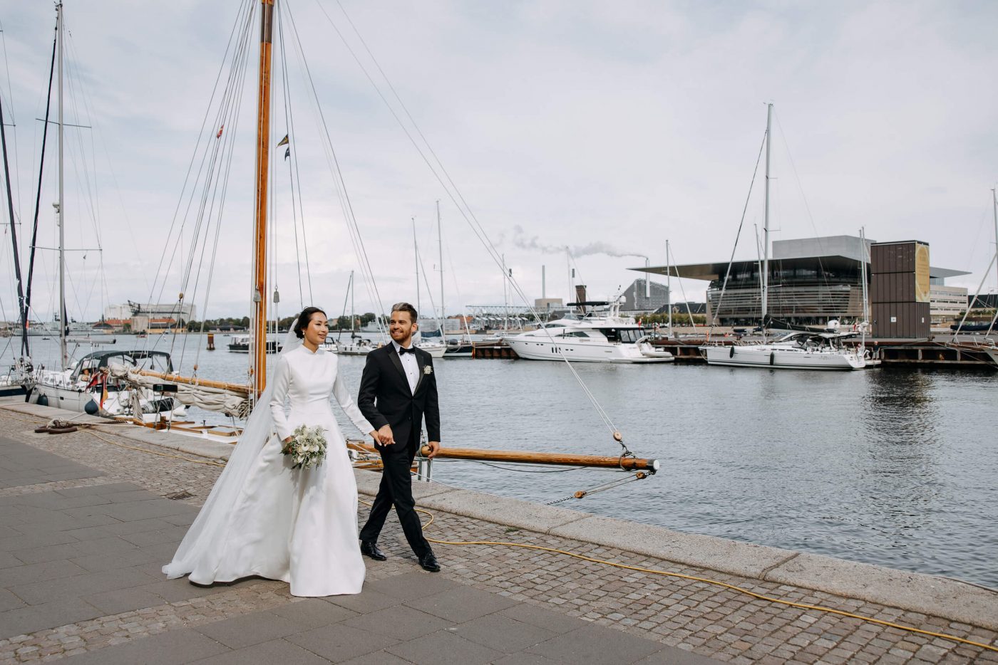 As they stepped outside, the charm of a vintage red Buick awaited them, a perfect touch of nostalgia to carry them to their reception at the Admiral Hotel. But before the celebration began, we took a little detour—a wedding photoshoot in front of the iconic Copenhagen Opera House. Against the sleek, modern architecture, their love shone effortlessly, creating timeless portraits they will cherish forever.