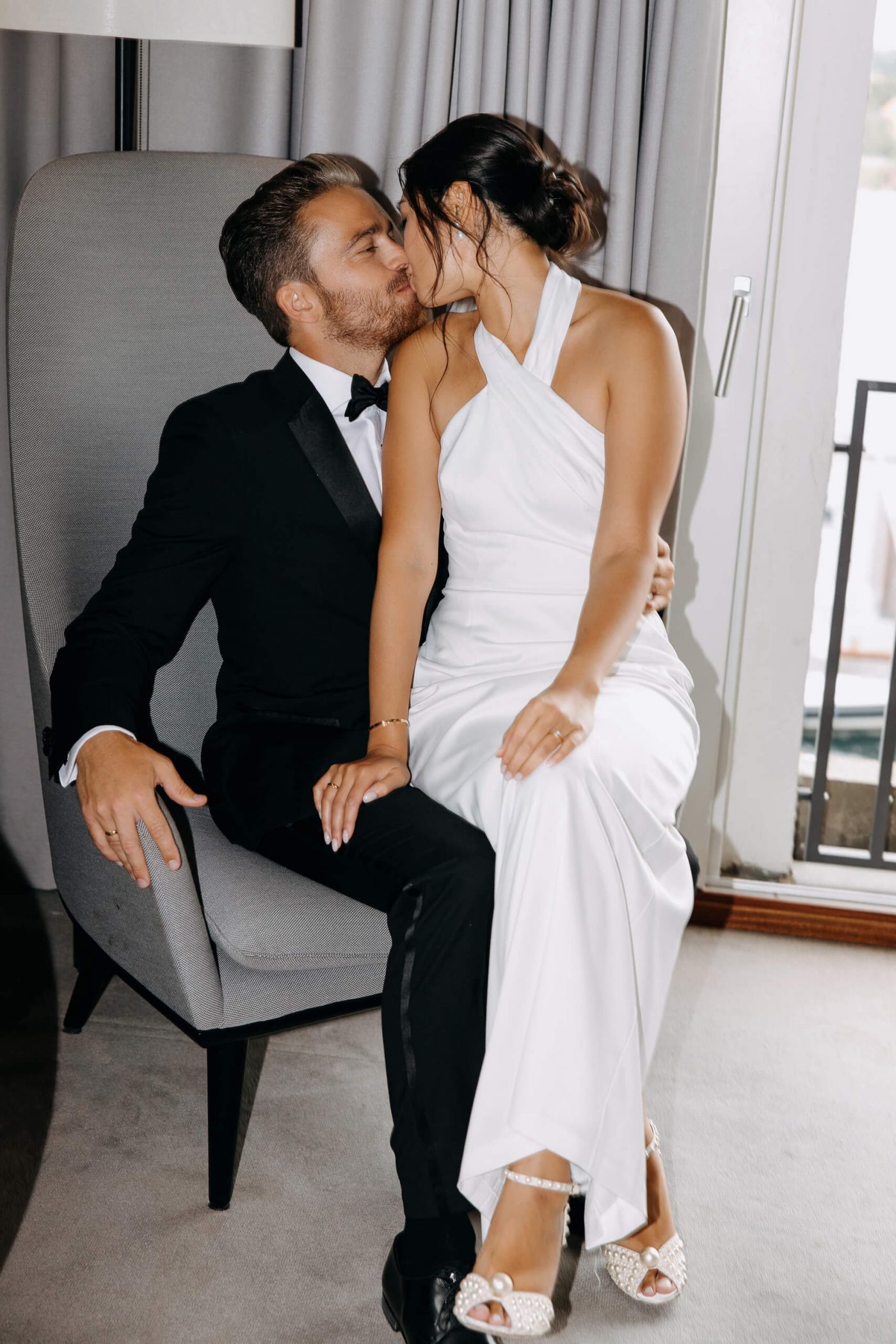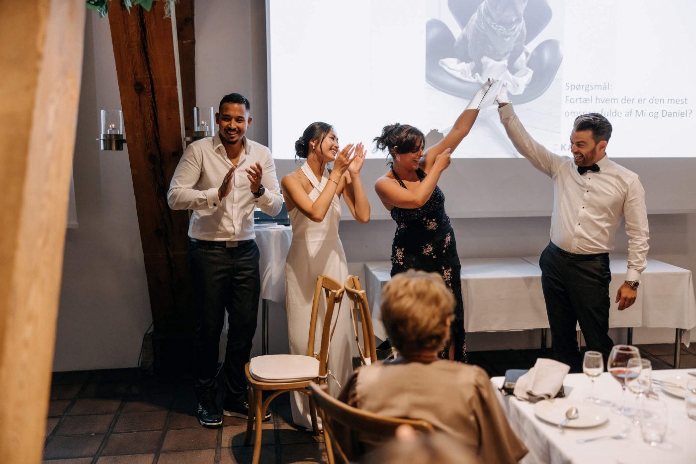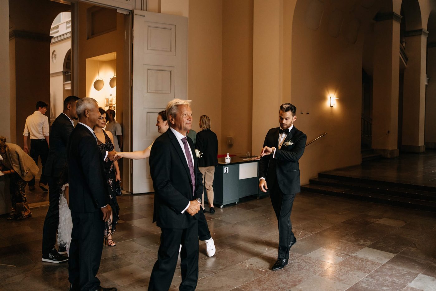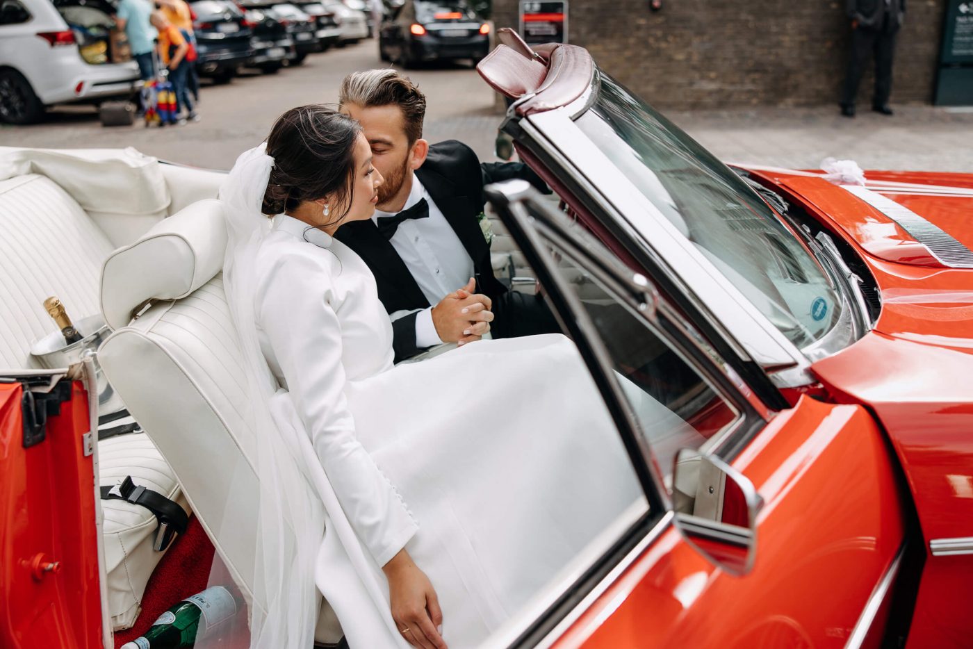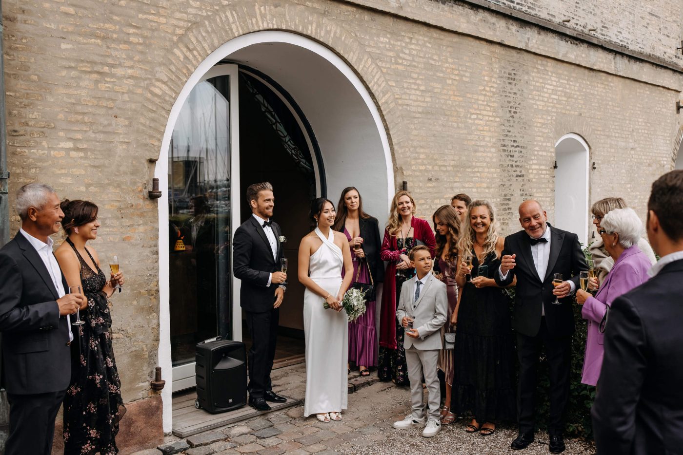 As they stepped outside, the charm of a vintage red Buick awaited them, a perfect touch of nostalgia to carry them to their reception at the Admiral Hotel. But before the celebration began, we took a little detour—a wedding photoshoot in front of the iconic Copenhagen Opera House. Against the sleek, modern architecture, their love shone effortlessly, creating timeless portraits they will cherish forever.